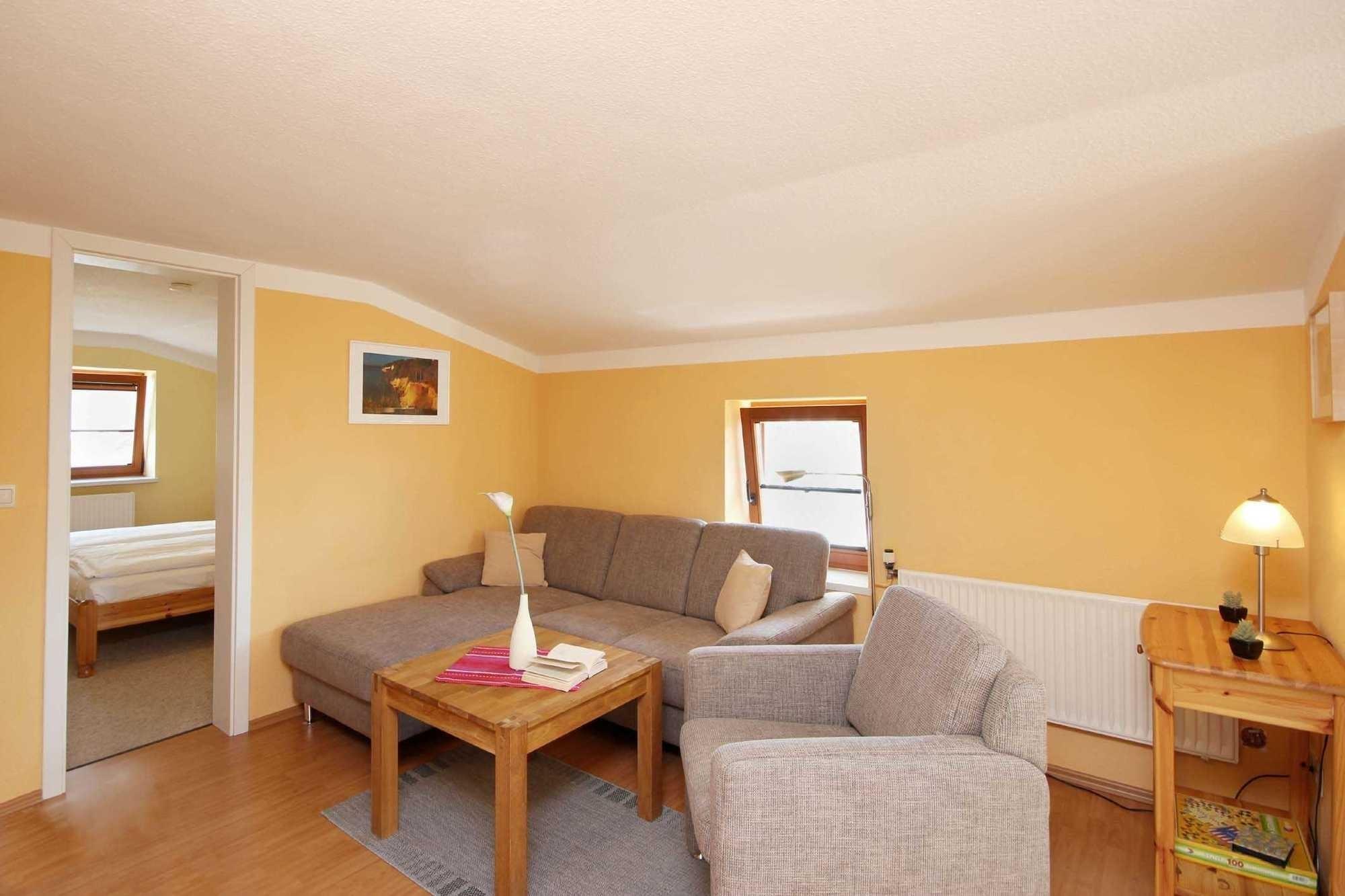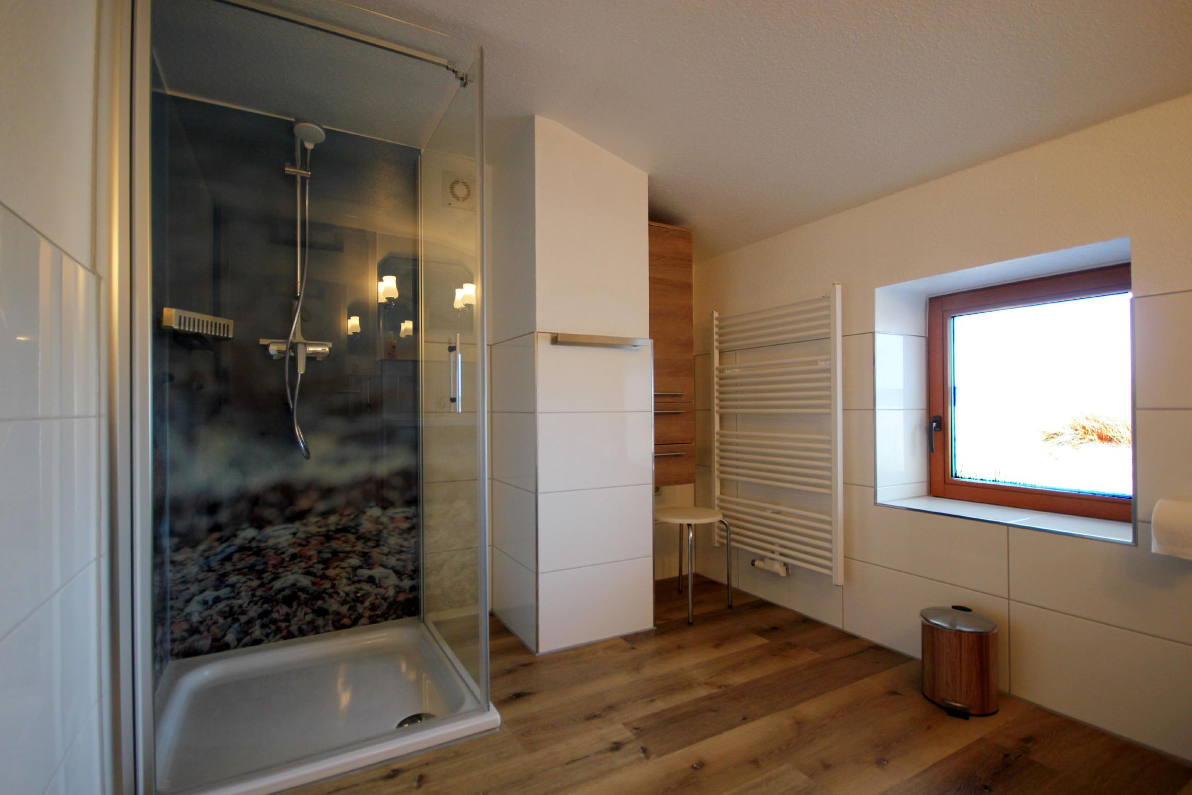 Ihre 3-Raum Nichtraucherwohnung 64RB1 befindet sich im 1. Obergeschoss des Hauses und somit in der Endetage. Sie besitzt eine Größe von ca. 55 qm und ist für max. 4 Personen belegbar sowie komplett eingerichtet. Das Appartement teilt sich auf in einen gemütlichen Wohnbereich mit bequemer Sitzecke, separate Küche mit Zugang zum sonnigen Balkon, zwei separate Schlafzimmer und ein Tageslichtbad. Neben dem schönen Wohnraum mit Flachbildfernseher, WLAN und Radio mit CD-Player sind beide Schlafräume mit je einem Doppelbett, Kleiderschrank und Verdunklungsmöglichkeit ausgestattet. Ein Schlafzimmer verfügt über ein zusätzliches TV-Gerät. Die Küche mit Essplatz für 4 Personen ist komplett mit Cerankochfeld, Dunstabzugshaube, Kühlschrank, Geschirrspüler, Kaffeemaschine, Wasserkocher, Toaster und weiteren diversen Küchenhelfern eingerichtet. Im modernen Badezimmer erwartet Sie eine Dusche, WC, fest installierter Fön und ein Waschbecken. Als weiteres Highlight steht Ihnen im gemeinschaftlichen Gartenbereich eine extra Grillecke zum Verweilen sowie ein Spielturm mit Rutsche und Schaukeln zur Verfügung. Ein wohnungseigener PKW – Stellplatz sowie Unterstellmöglichkeiten für Ihre Fahrräder sind direkt am Haus vorhanden. Eine hauseigene Waschmaschine steht Ihnen gegen Gebühr zur Verfügung.