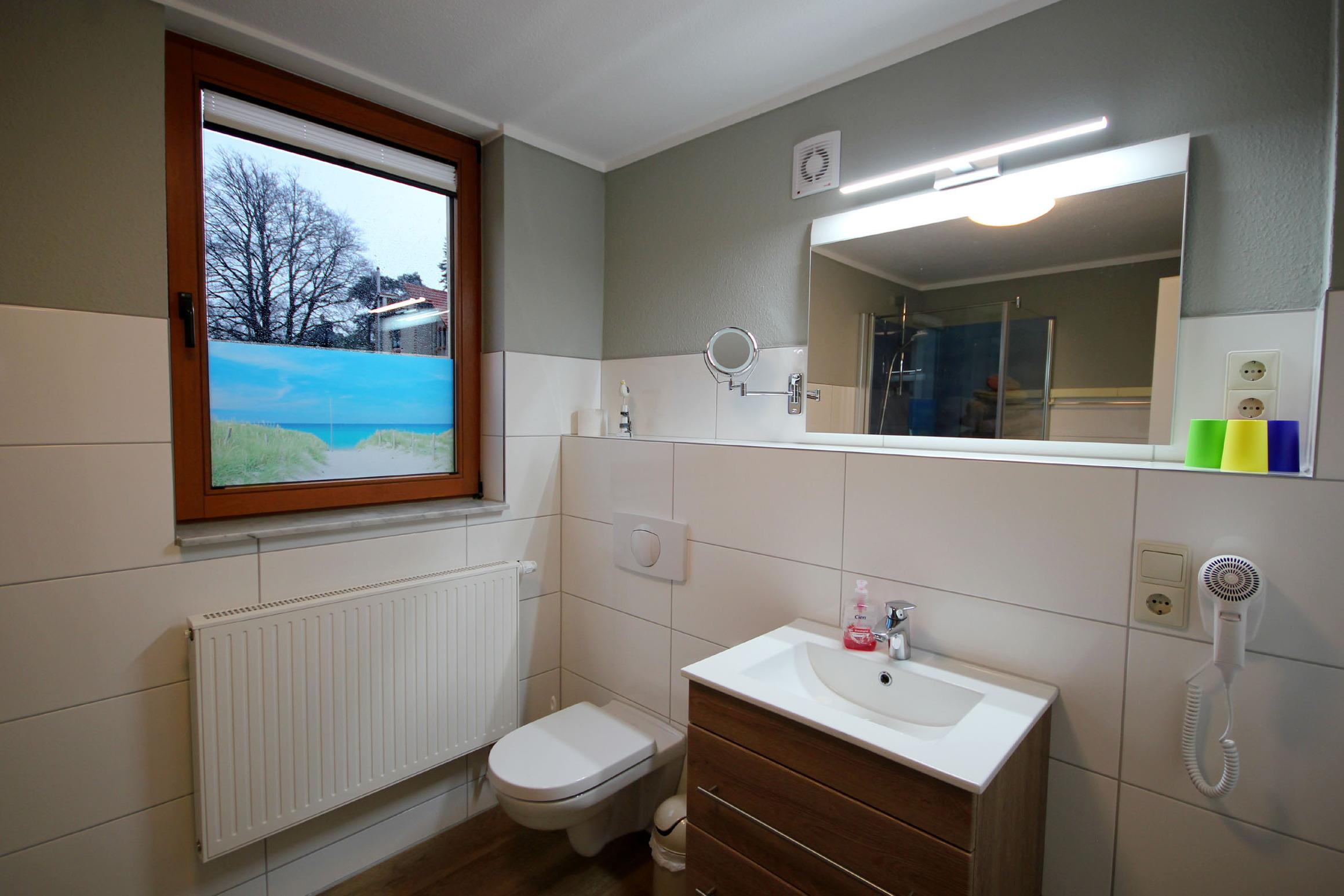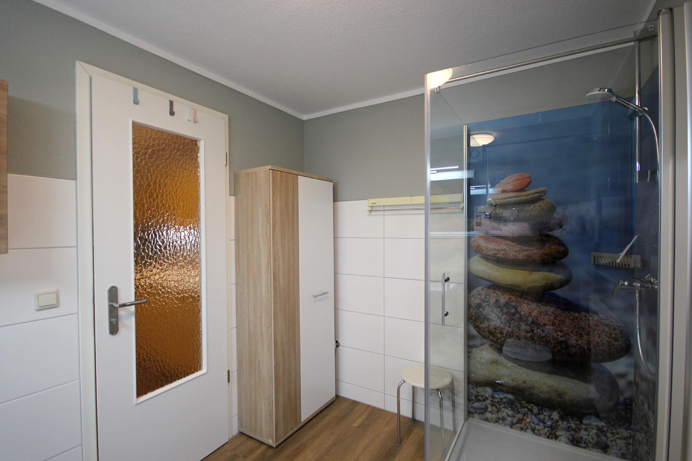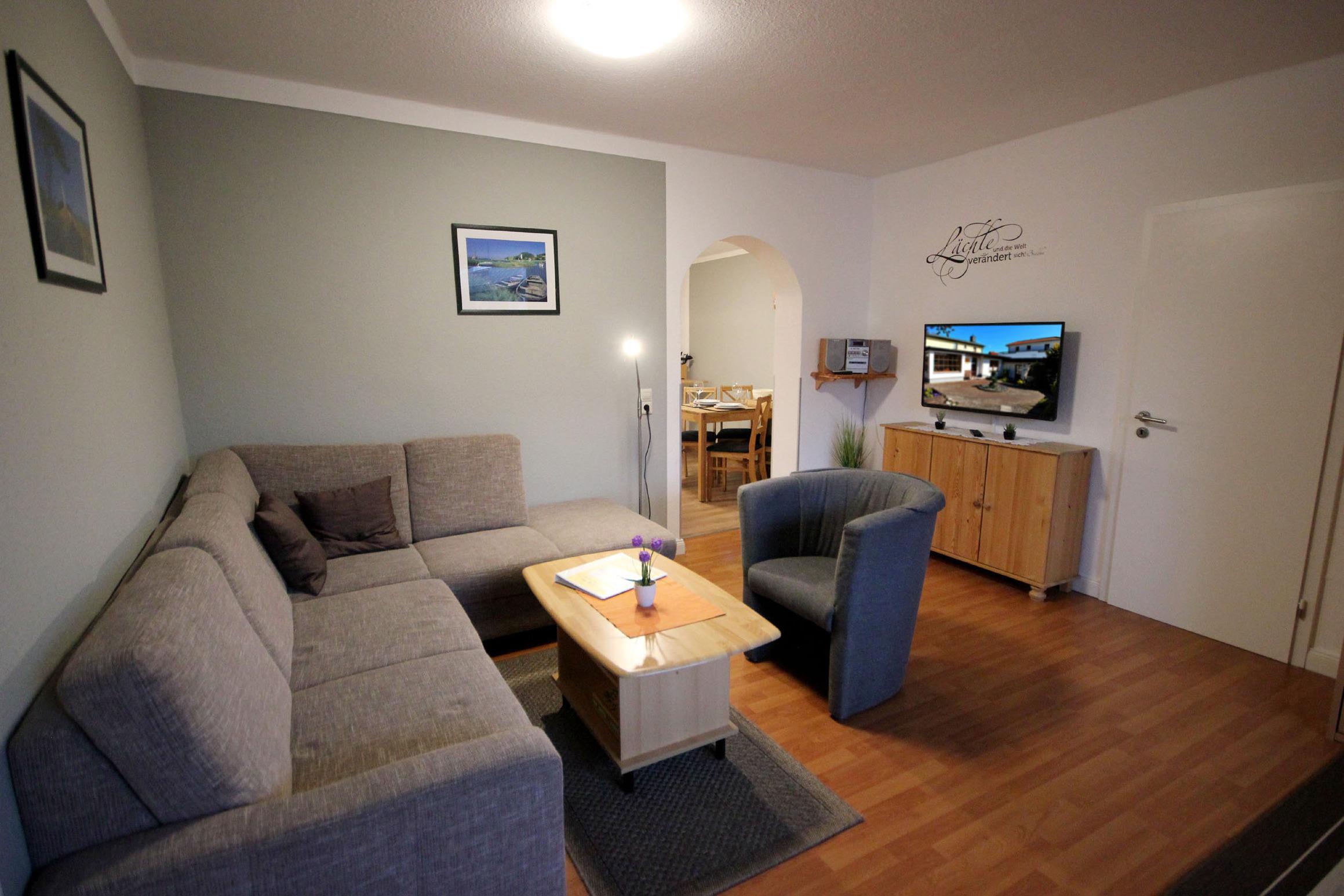 Ihre 2-Raum Nichtraucherwohnung 64RB2 befindet sich im Erdgeschoss des Hauses. Sie besitzt eine Größe von ca. 45 qm und ist für max. 4 Personen belegbar sowie komplett eingerichtet. Das Appartement teilt sich auf in einen gemütlichen Wohnbereich mit bequemer Sitzecke, separate Küche, ein Schlafzimmer und ein Tageslichtbad. Neben dem schönen Wohnraum mit Flachbildfernseher, WLAN und Radio mit CD-Player ist der Schlafraum mit einem weiteren Flachbild-TV, einem Doppelbett, Kleiderschrank und Verdunklungsmöglichkeit ausgestattet. Das komfortable Schrankbett im Wohnbereich bietet Schlafmöglichkeit für die 3. und 4. Person. Die Küche mit Essplatz für 4 Personen ist komplett mit 4-Platten-Herd, Dunstabzugshaube, Kühlschrank, Geschirrspüler, Kaffeemaschine, Wasserkocher, Toaster und weiteren diversen Küchenhelfern eingerichtet. Im Badezimmer erwartet Sie eine Dusche, WC, fest installierter Fön und ein Waschbecken. Als weiteres Highlight steht Ihnen im gemeinschaftlichen Gartenbereich eine extra Grillecke zum Verweilen sowie ein Spielturm mit Rutsche und Schaukeln zur Verfügung. Ein wohnungseigener PKW – Stellplatz sowie Unterstellmöglichkeiten für Ihre Fahrräder sind direkt am Haus vorhanden. Eine hauseigene Waschmaschine steht Ihnen gegen Gebühr zur Verfügung.
