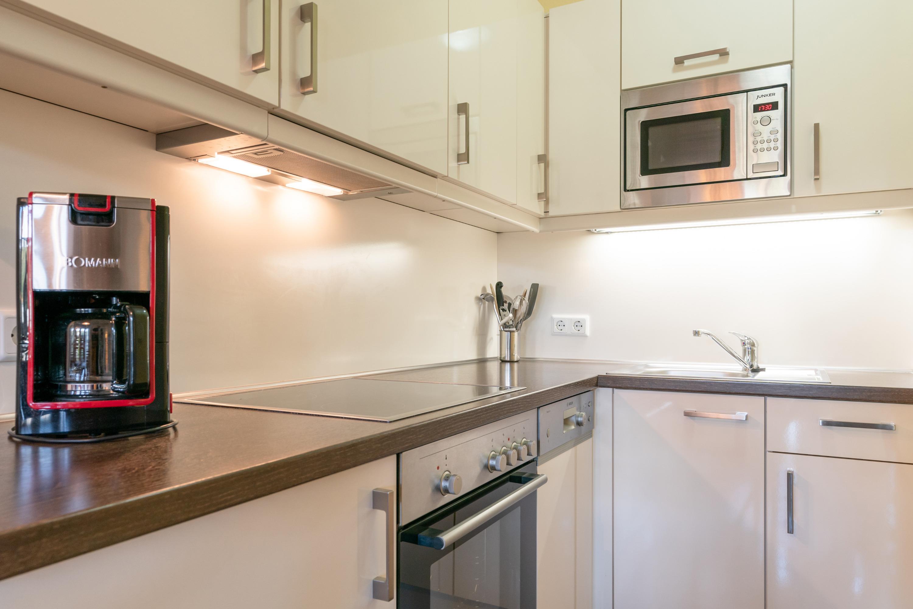 Die Ausstattung umfasst unter anderem einen Flachbildfernseher, eine Kaffeemaschine (Filter), eine Mikrowelle und einen Geschirrspüler. Die Bettwäsche ist bereits im Preis inbegriffen und auch Haustiere sind herzlich willkommen. Auf dem Balkon können Sie entspannen und die offene Wohnküche lädt zum gemeinsamen Kochen ein. Für Fahrräder steht ein Keller zur Verfügung und dank WLAN Anschluss und TV mit Sky-Sendern bleiben Sie auch im Urlaub immer up-to-date. Auch ein Tiefgaragenstellplatz ist vorhanden und auf Wunsch erhalten Sie einen Brötchenservice.