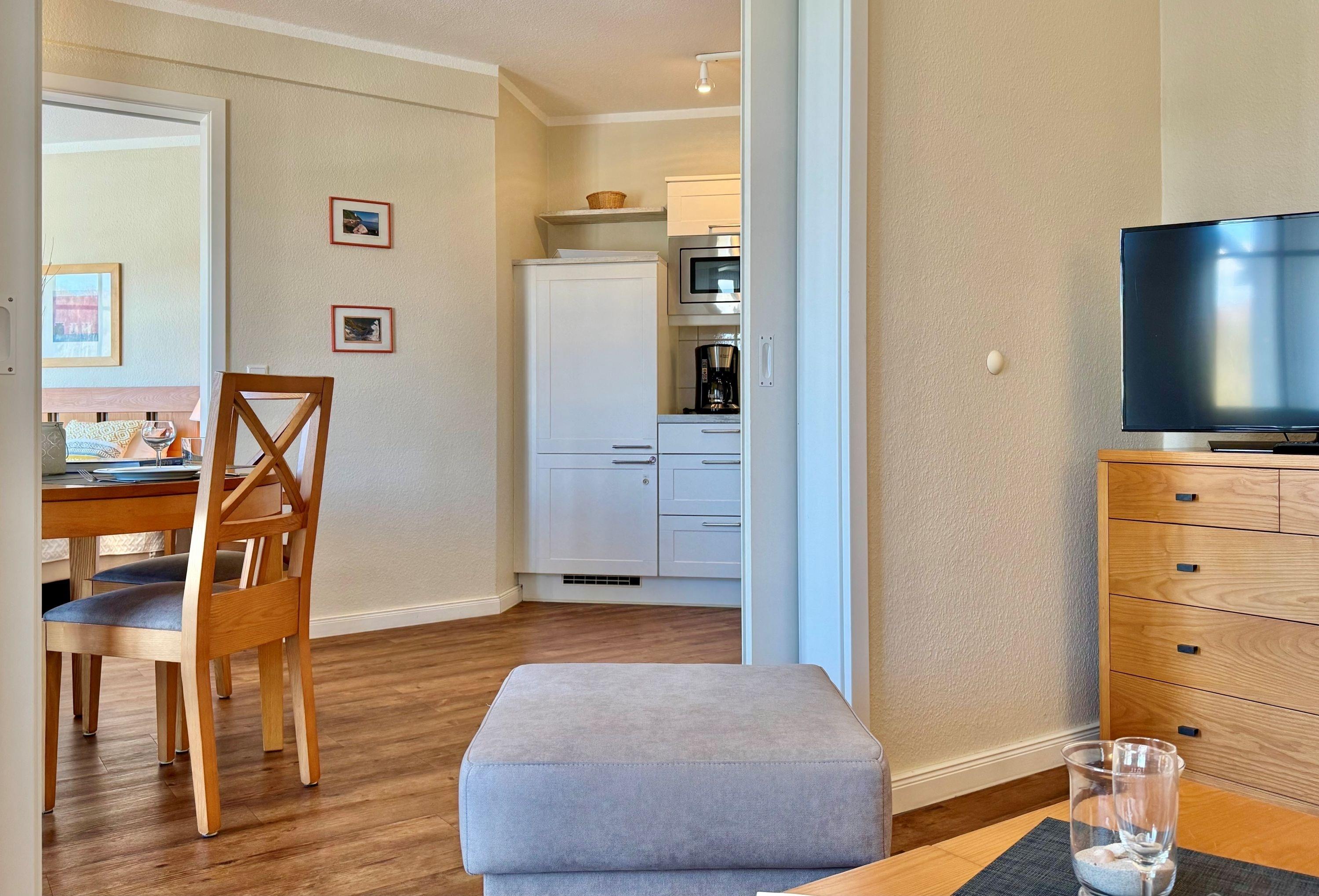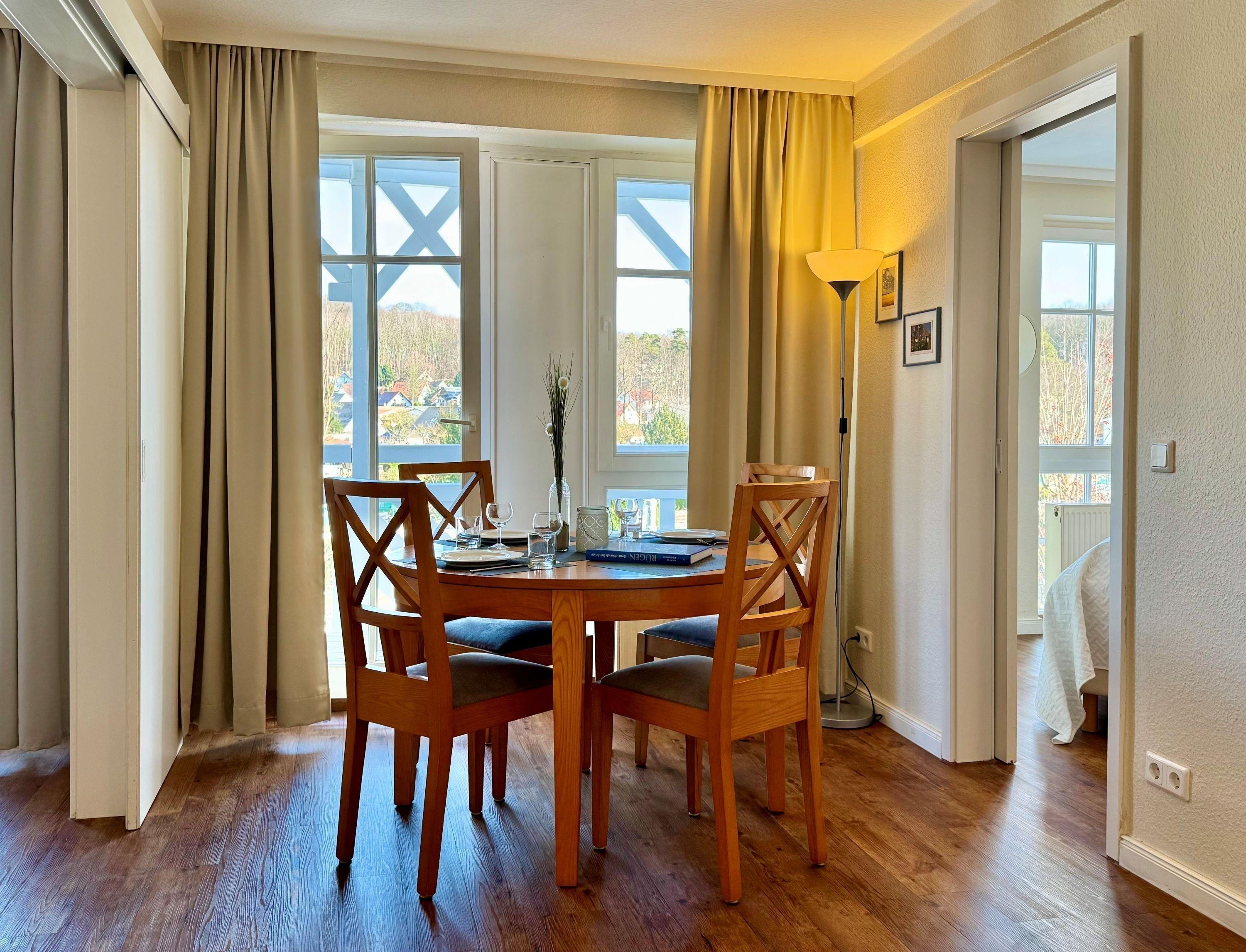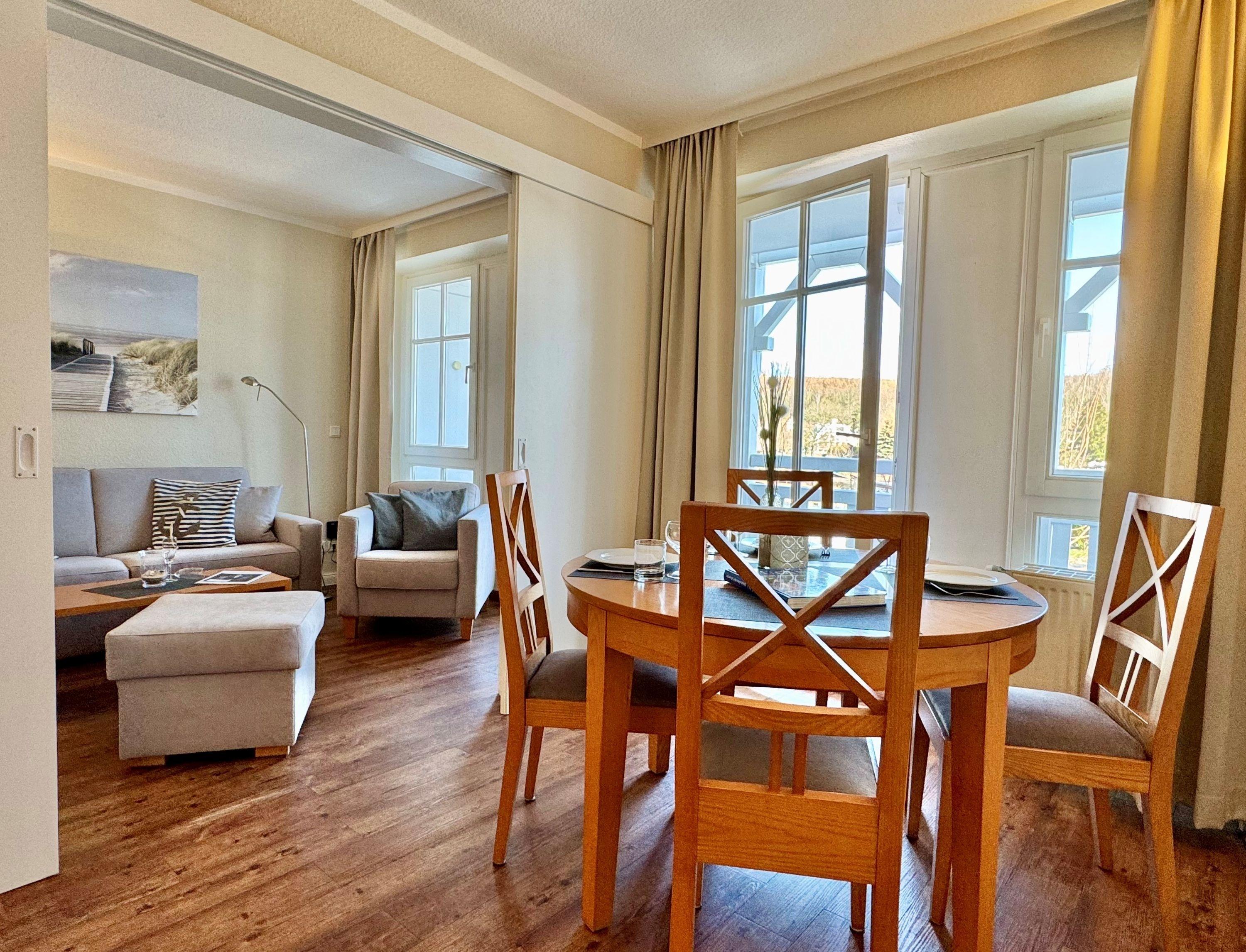 Die Ferienwohnung mit dem Namen "Fewo 303, im Seepark Sellin" bietet auf 52 m² Platz für maximal 4 Personen. Sie befindet sich im Haus "Haus Having" in der 1. Etage und ist bequem über einen Fahrstuhl erreichbar. Die Ausstattung umfasst unter anderem einen Flachbild-TV, eine Kaffeemaschine (Filter), eine Mikrowelle und einen Geschirrspüler. Bettwäsche ist inklusive und ein Haustier ist willkommen. Von Ihrem eigenen Balkon aus können Sie die schöne Umgebung genießen. Die offene Wohnküche lädt zum gemeinsamen Kochen und Verweilen ein. Für die Aufbewahrung Ihrer Fahrräder steht Ihnen ein Fahrradkeller zur Verfügung. Ein WLAN Anschluss sowie ein TV mit Sky-Sendern sind ebenfalls vorhanden. Ihr Auto können Sie bequem auf dem Tiefgaragenstellplatz abstellen. Für einen entspannten Start in den Tag können Sie den Brötchenservice in Anspruch nehmen. Die Einkaufsmöglichkeit ist nur 50 m entfernt, der Strand 900 m. Auch ein Bäcker, Minigolf, ein Restaurant sowie die AHOI! Bade- [&] Erlebniswelt sind in unmittelbarer Nähe. Die Seebrücke erreichen Sie nach 900 m und den Schiffsanleger nach ca. 500 m. Eine Bushaltestelle befindet sich nur 100 m entfernt.