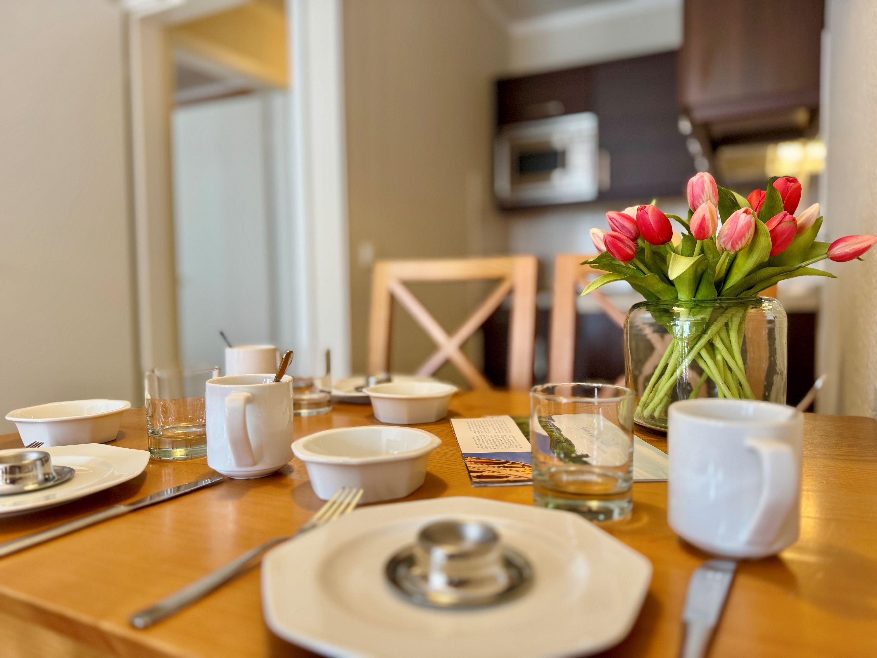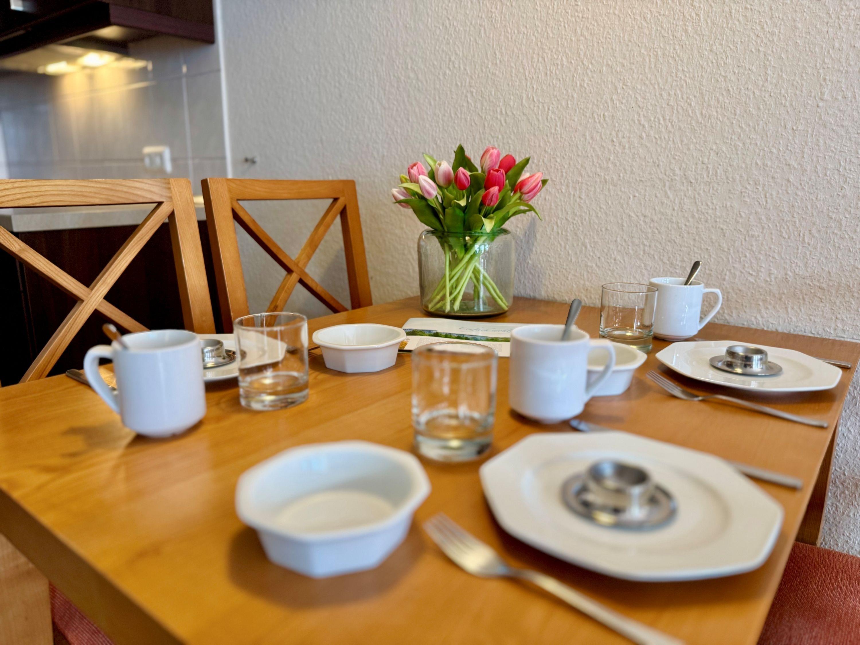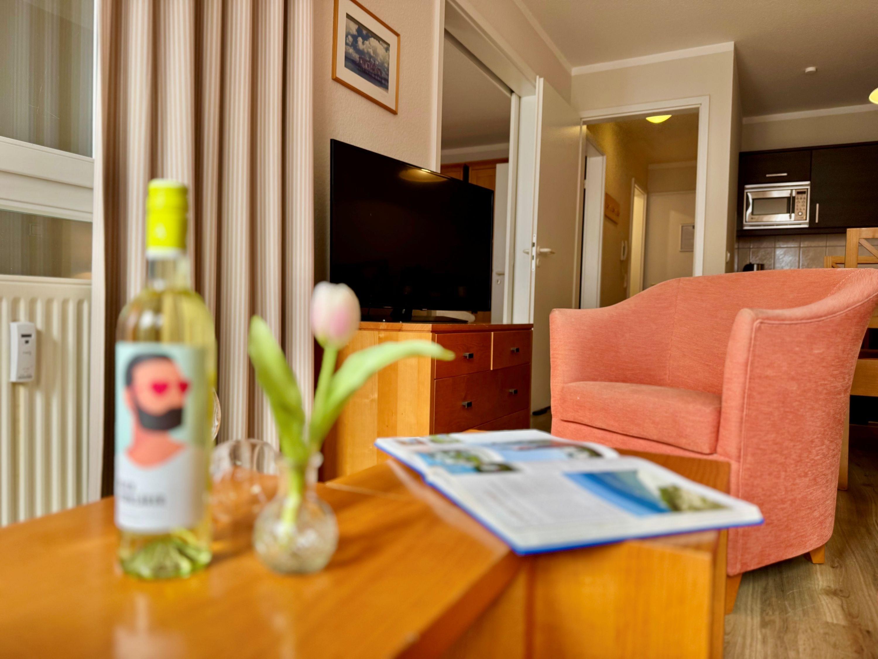 Zu den weiteren Annehmlichkeiten zählen ein Balkon, ein Fahrradkeller und ein Tiefgaragenstellplatz. Auch ein WLAN Anschluss sowie ein TV mit Sky-Sendern stehen den Gästen zur Verfügung. Für den morgendlichen Brötchenservice ist ebenfalls gesorgt.