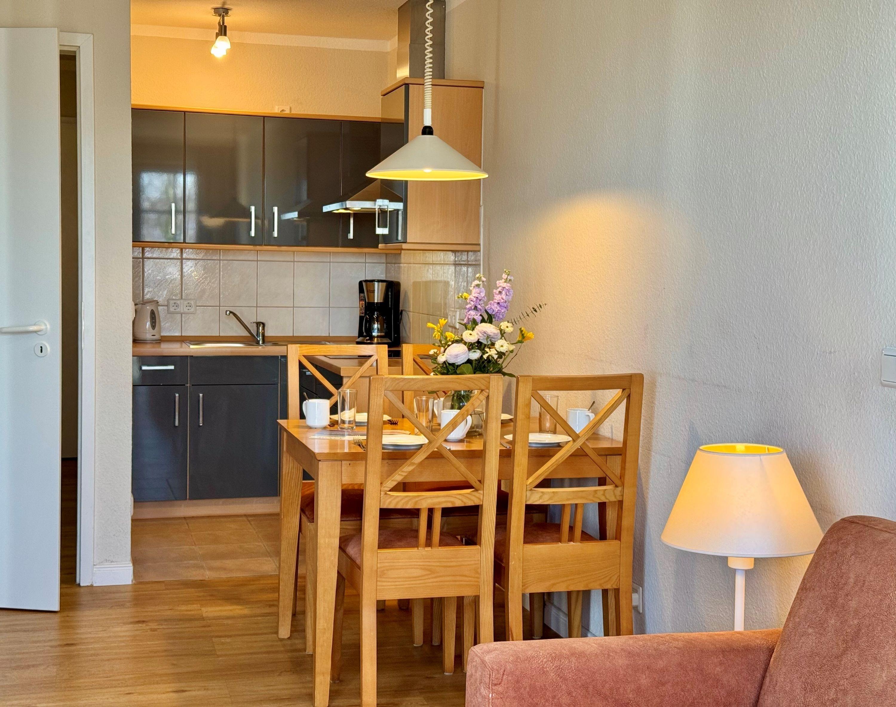 Die Ferienunterkunft Fewo 316 befindet sich im Seepark Sellin und bietet Platz für maximal 4 Personen. Die 44 m² große Wohnung befindet sich im Haus Having in der 1. Etage und über einen Aufzug gut zu erreichen. Das Schlafzimmer bietet ausreichend Platz für erholsame Nächte und das Badezimmer ist mit allen nötigen Utensilien ausgestattet.