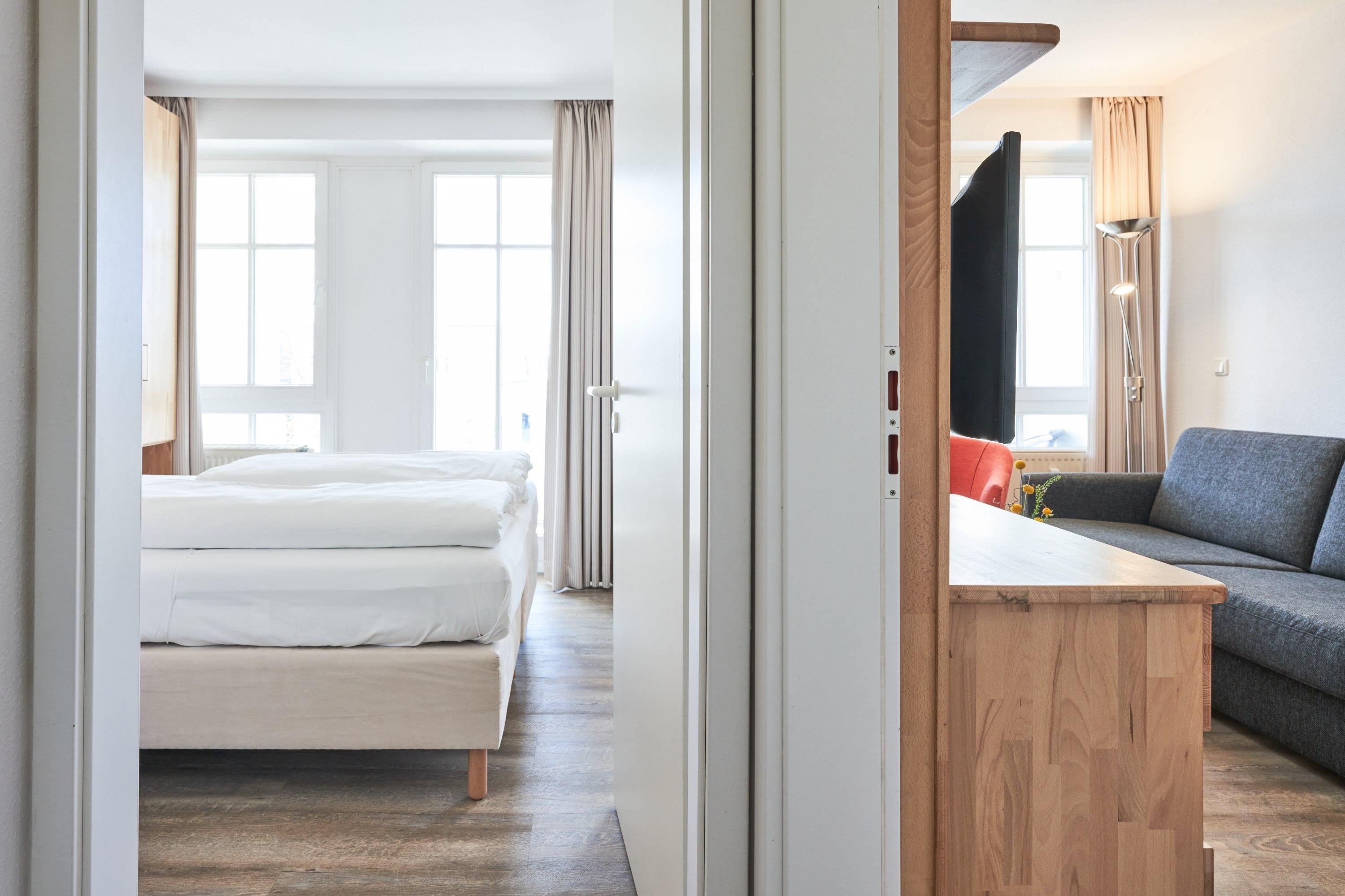 Nach einem erlebnisreichen Urlaubstag können Sie auf dem Balkon in Südwestlage Platz nehmen. Der Ausblick und die Sitzgruppe sorgen hier für ein wunderbares Urlaubsgefühl. Im Nichtraucher-Apartment sind Haustiere nicht gestattet.