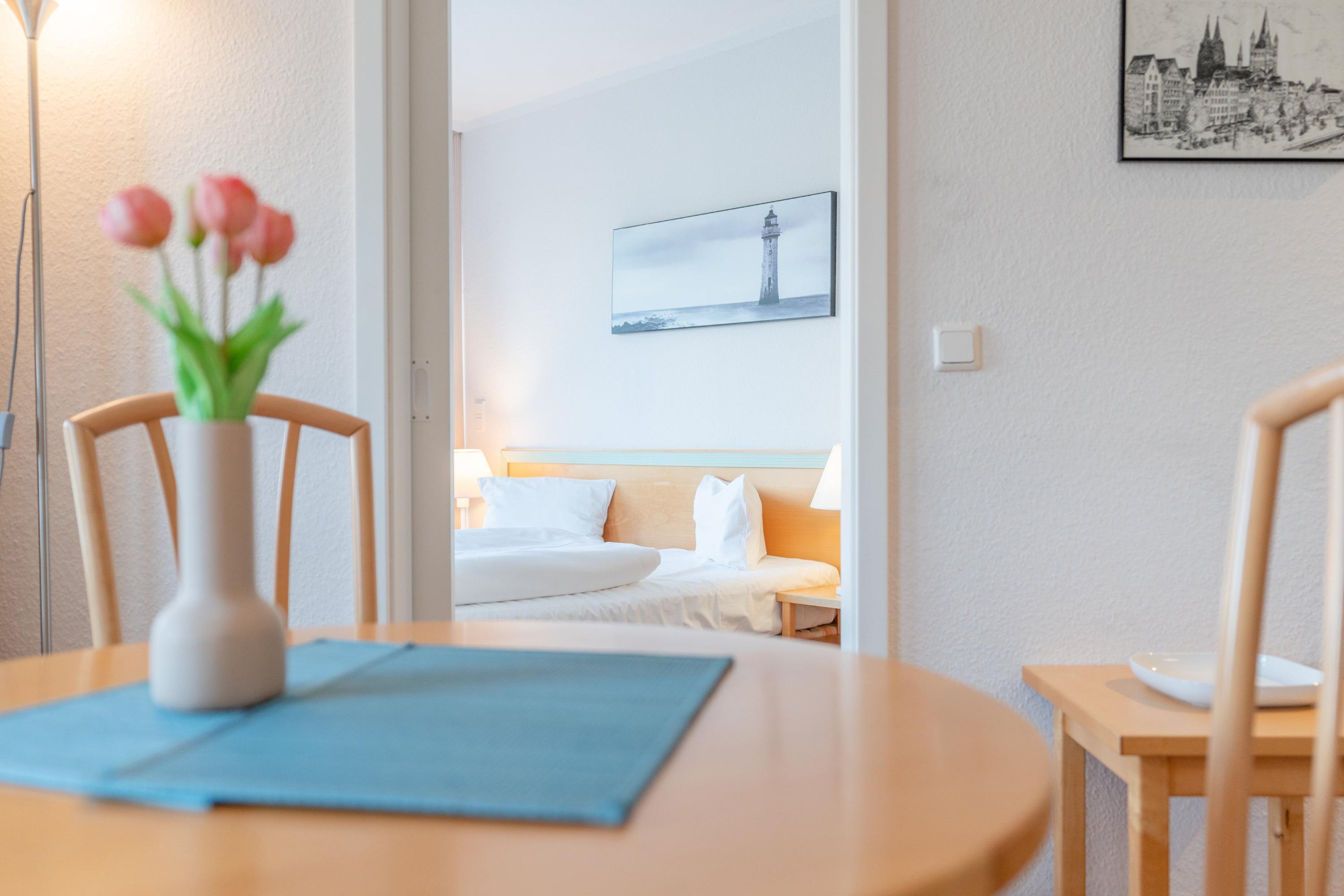 Für Ihren PKW steht ein Tiefgaragenstellplatz zur Verfügung. Für zusätzlichen Komfort können Sie den Brötchenservice nutzen und direkt vor Ort frische Brötchen bestellen.