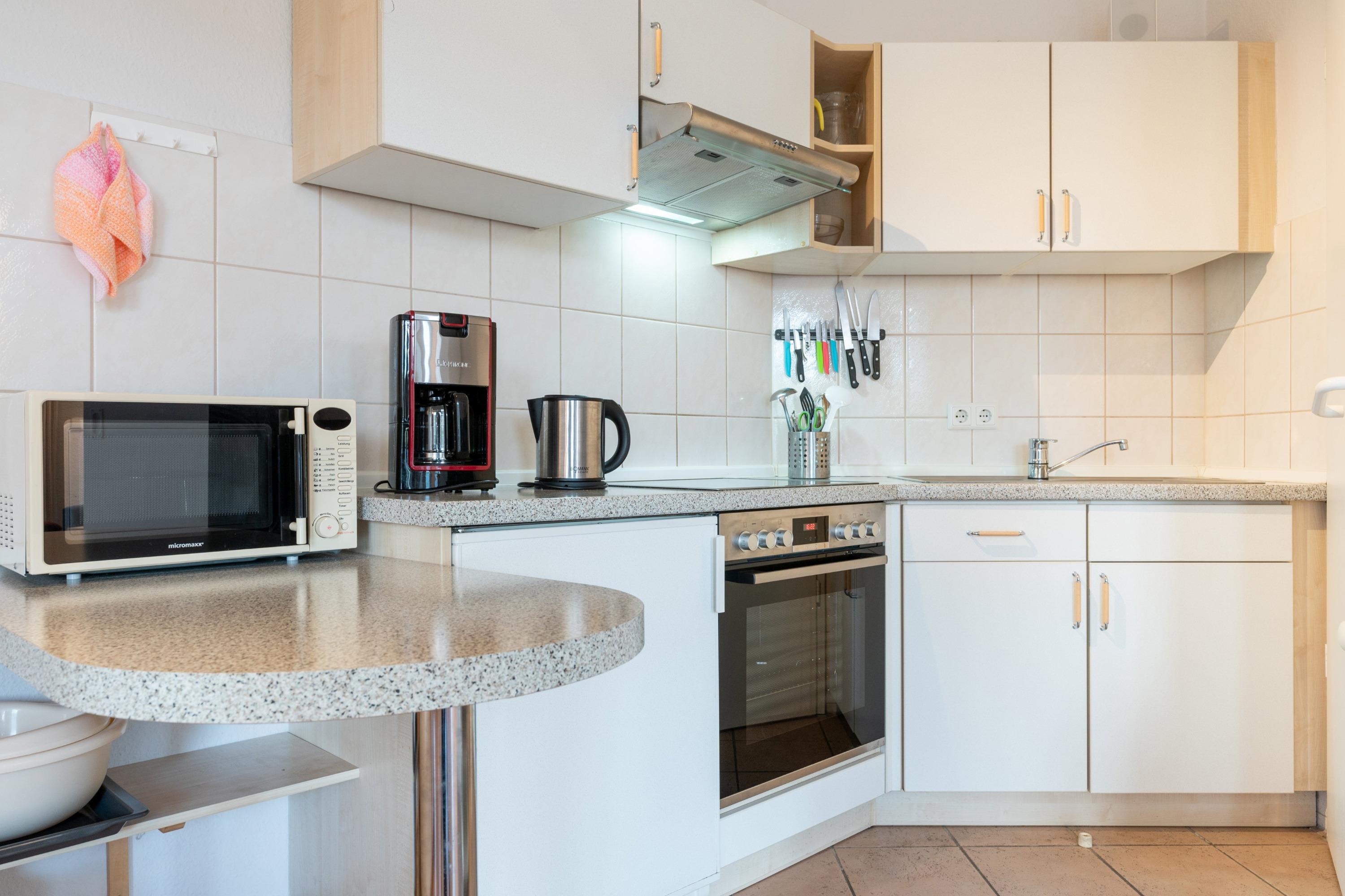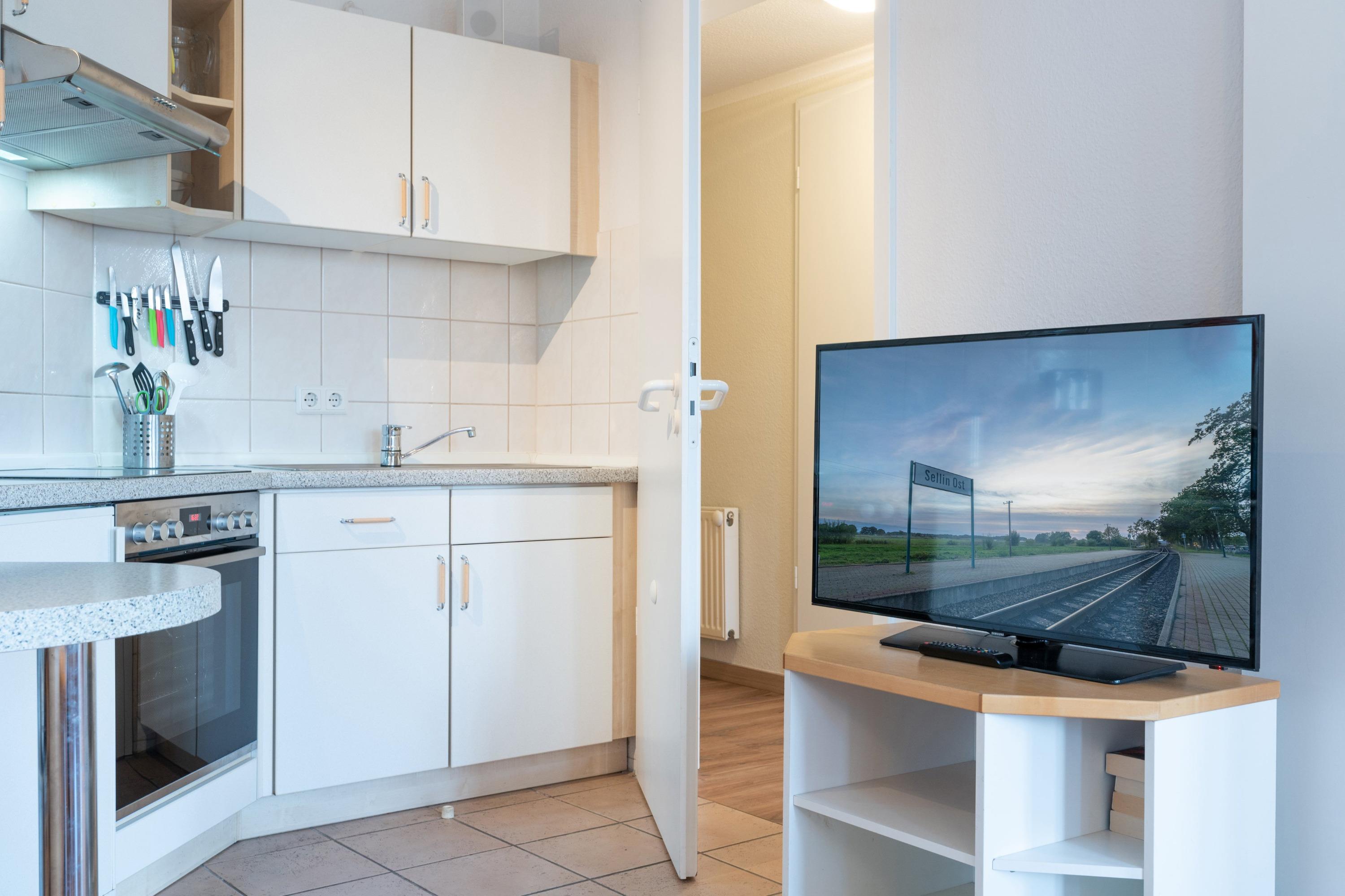 Die Wohnung verfügt über ein gemütliches Schlafzimmer sowie ein Badezimmer mit Badewanne. In der offenen Wohnküche können Sie gemeinsam kochen und entspannen. Zur Ausstattung gehören ein Flachbild-TV mit Sky-Sendern, eine Kaffeemaschine (Filter), eine Mikrowelle und kostenfreies WLAN.