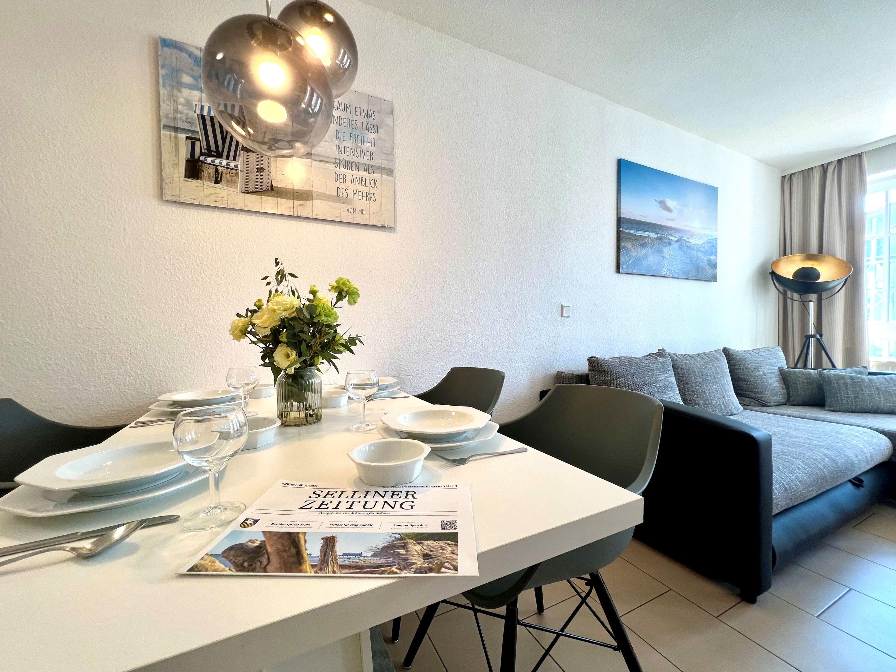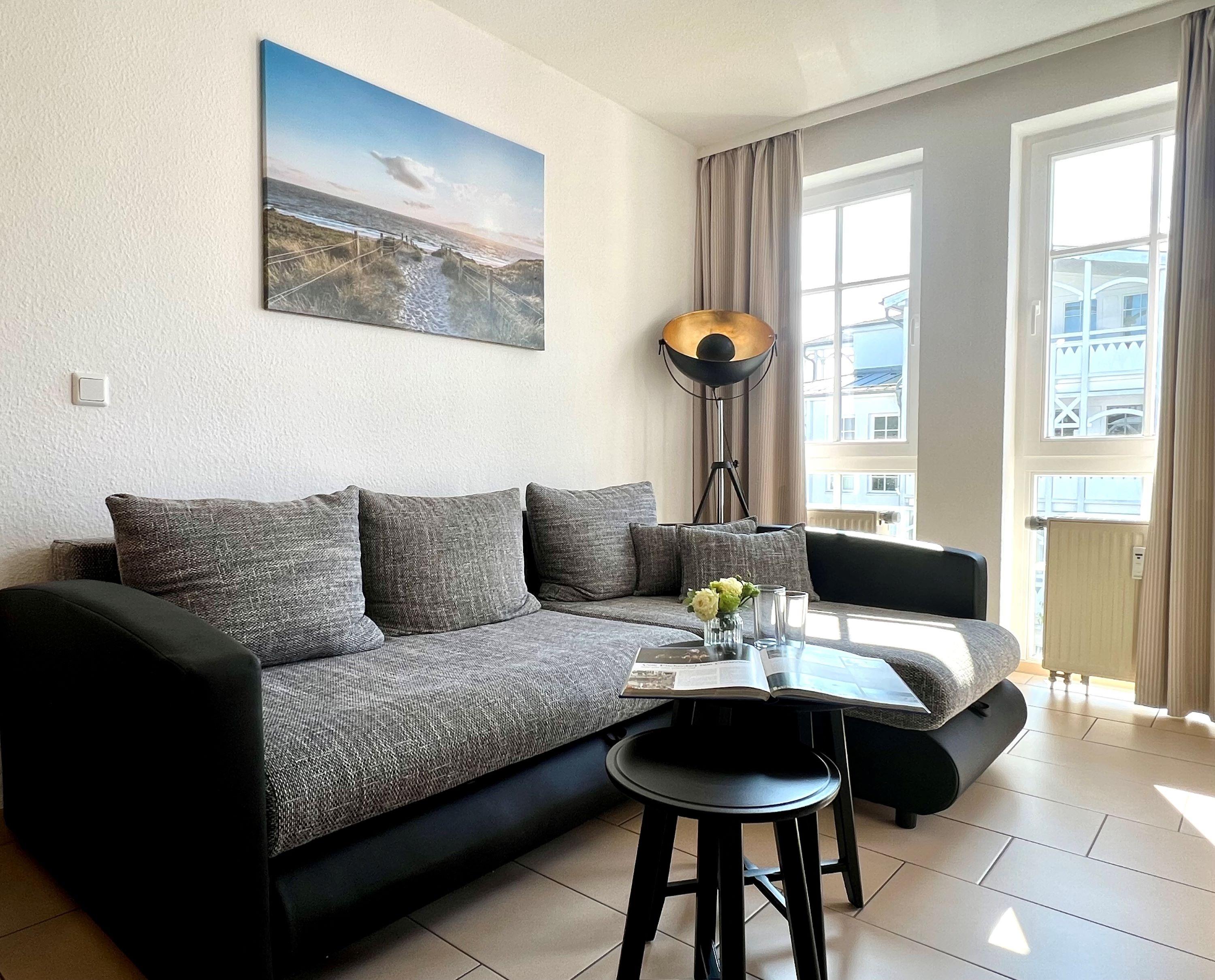 Die Ferienwohnung 345 befindet sich in Sellin, einem beliebten Ostseebad. Sie bietet Platz für bis zu 4 Gäste und hat eine Wohnfläche von 44 m². Das Apartment verfügt über ein Schlafzimmer, eine voll ausgestattete offene Küche, ein Badezimmer und einen Balkon in Südost-Lage.