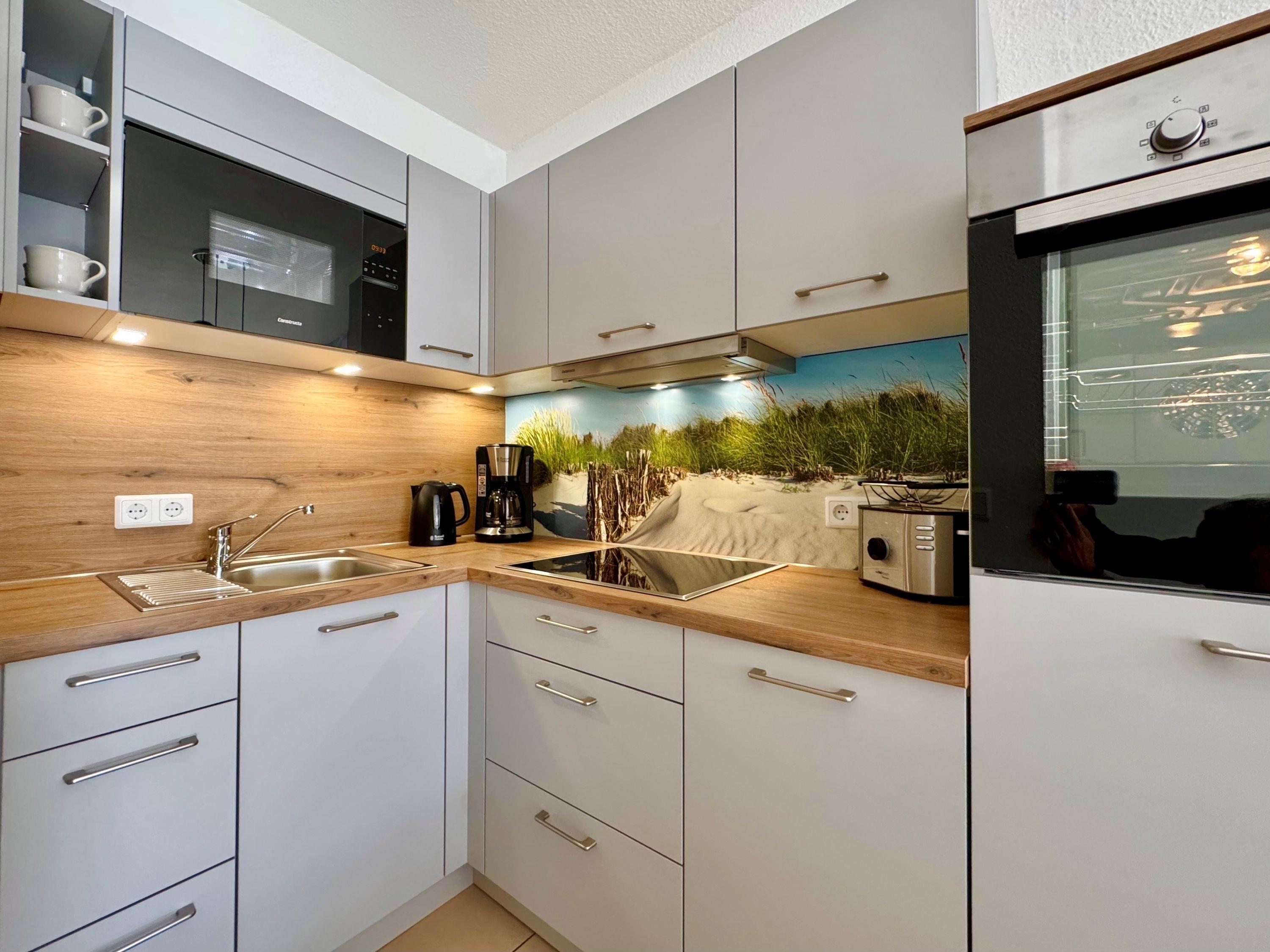 Die Ferienwohnung verfügt über kostenfreies WLAN und die Erstausstattung an Bettwäsche ist inklusive. Das Schlafzimmer ist mit einem Doppelbett und Verdunklungsmöglichkeiten ausgestattet. Im Wohnzimmer befindet sich zusätzlich eine Doppelschlafcouch. Das Badezimmer verfügt über eine Badewanne, WC und einen Föhn. Die offene Küche ist mit einem Backofen, einer Mikrowelle, einem Geschirrspüler, einer Kaffeemaschine und einem Toaster ausgestattet. Ein Fernseher, inklusive 3 Sky-Sender, rundet die Einrichtung ab.
