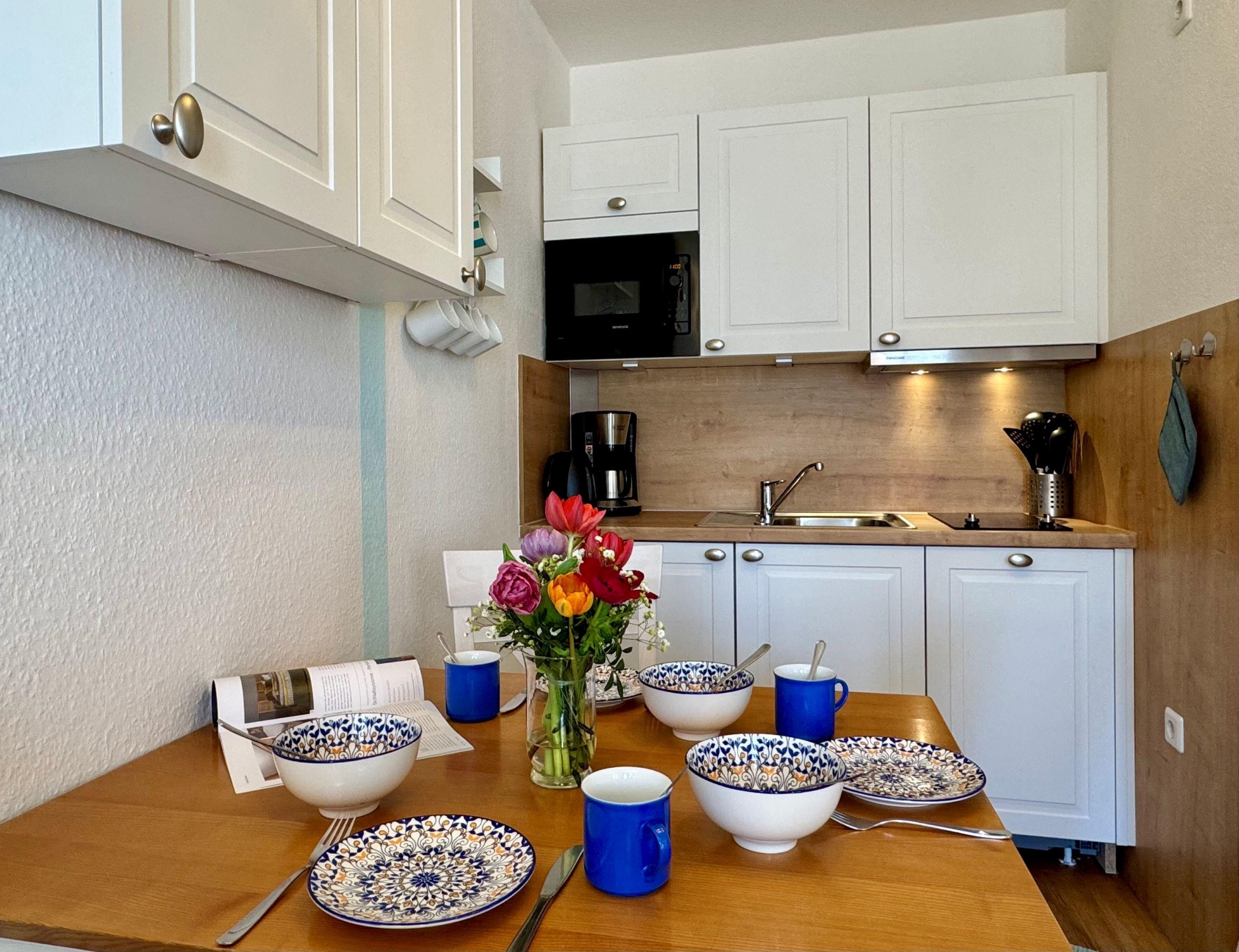 Die Ausstattung der Wohnung umfasst unter anderem einen Smart-TV, eine Kaffeemaschine (Filter), eine Kapselmaschine, einen Geschirrspüler, eine Mikrowelle sowie Bettwäsche, die im Preis inkludiert ist. Auf dem Balkon können Sie entspannen und die Aussicht genießen. Die offene Wohnküche ist mit allem Notwendigen ausgestattet und im Fahrradkeller können Sie Ihre Fahrräder sicher abstellen. Für Unterhaltung ist gesorgt, dank des WLAN-Anschlusses und des Fernsehers mit Sky-Sendern. Ein Tiefgaragenstellplatz steht Ihnen ebenfalls zur Verfügung und auf Wunsch können Sie den Brötchenservice in Anspruch nehmen.