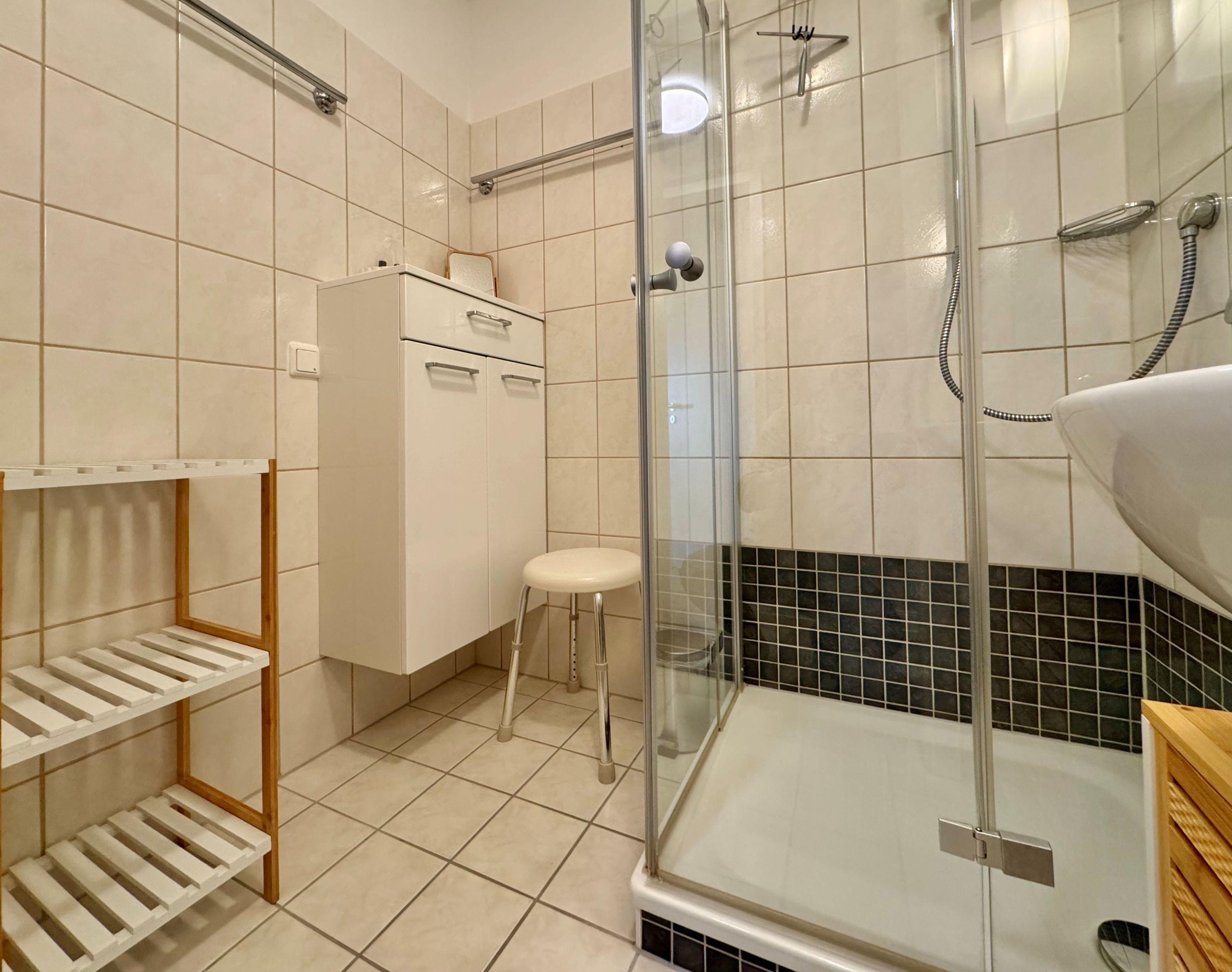 Das geschmackvoll eingerichtete Wohnzimmer lädt zum Entspannen und Wohlfühlen ein und verfügt über einen Fernseher mit zusätzlichen drei Sky-Sendern. Die offene Küche ist vollständig ausgestattet mit Backofen, Geschirrspüler, Kaffeemaschine, Mikrowelle und Toaster. Das Badezimmer bietet eine Dusche und einen Föhn, zusätzlich steht ein separates WC zur Verfügung.