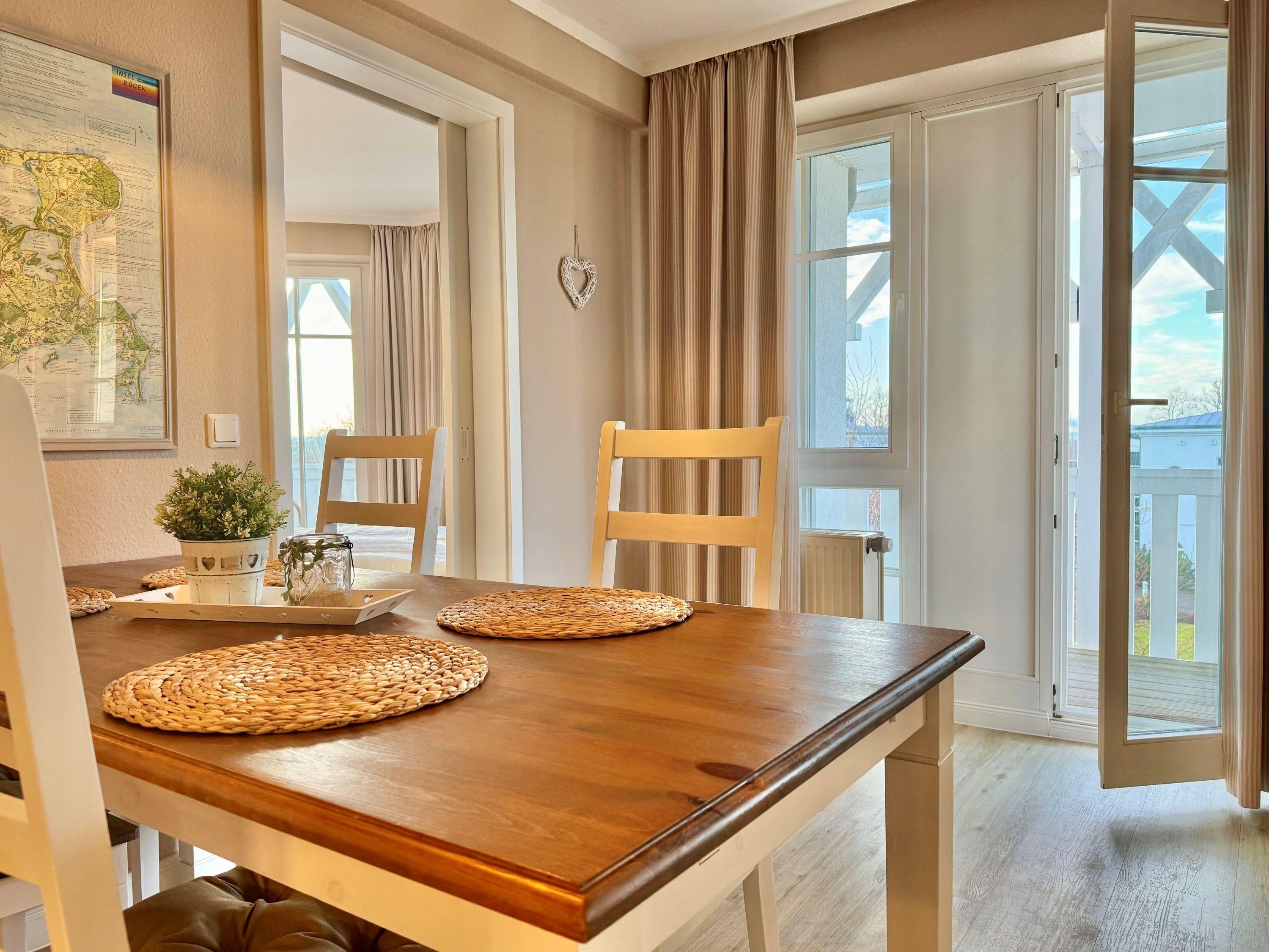 Genießen Sie sonnige Stunden auf dem Balkon in Südwestlage mit gemütlicher Sitzgruppe und schönem Ausblick. Die Ferienwohnung ist ein Nichtraucher-Apartment, Haustiere sind nicht erlaubt.