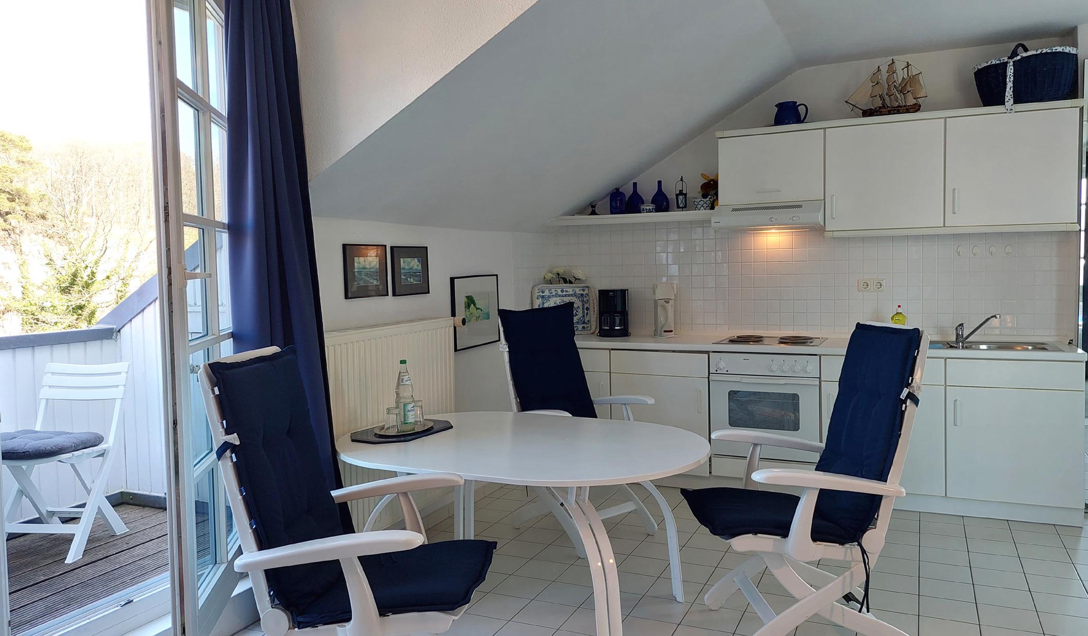 Ihre freundliche 1-Raum Ferienwohnung 61RB24 befindet sich in der 3. Etage. Sie hat eine Größe von ca. 30 qm und ist für max. 2 Personen eingerichtet. Die Wohnung verfügt über einen kombinierten Wohn- und Schlafraum, eine Küchenzeile und ein Badezimmer. Ein Doppelbett, 1,40 m breit, steht unseren Gästen zur Verfügung, sowie ein gemütlicher separater Essplatz. Ebenso kann ein schöner Nordostbalkon mit Blick über Sellin genutzt werden. Zum Badezimmer gehört eine komfortable Dusche, Waschtisch und WC. Im Wohnbereich finden Sie ein CD-Radio, TV mit Videofunktion, ein gratis WLAN-Netz, einen Kleiderschrank und eine kleine Garderobe im Flur. Zur Küchenzeile gehört unter anderem ein 4-Platten Herd, Backofen, Toaster, Wasserkocher, Kaffeemaschine sowie das benötigte Inventar. Ein wohnungseigener PKW-Parkplatz steht Ihnen in der Tiefgarage, 1,89 m Höhe, kostenfrei zur Verfügung.