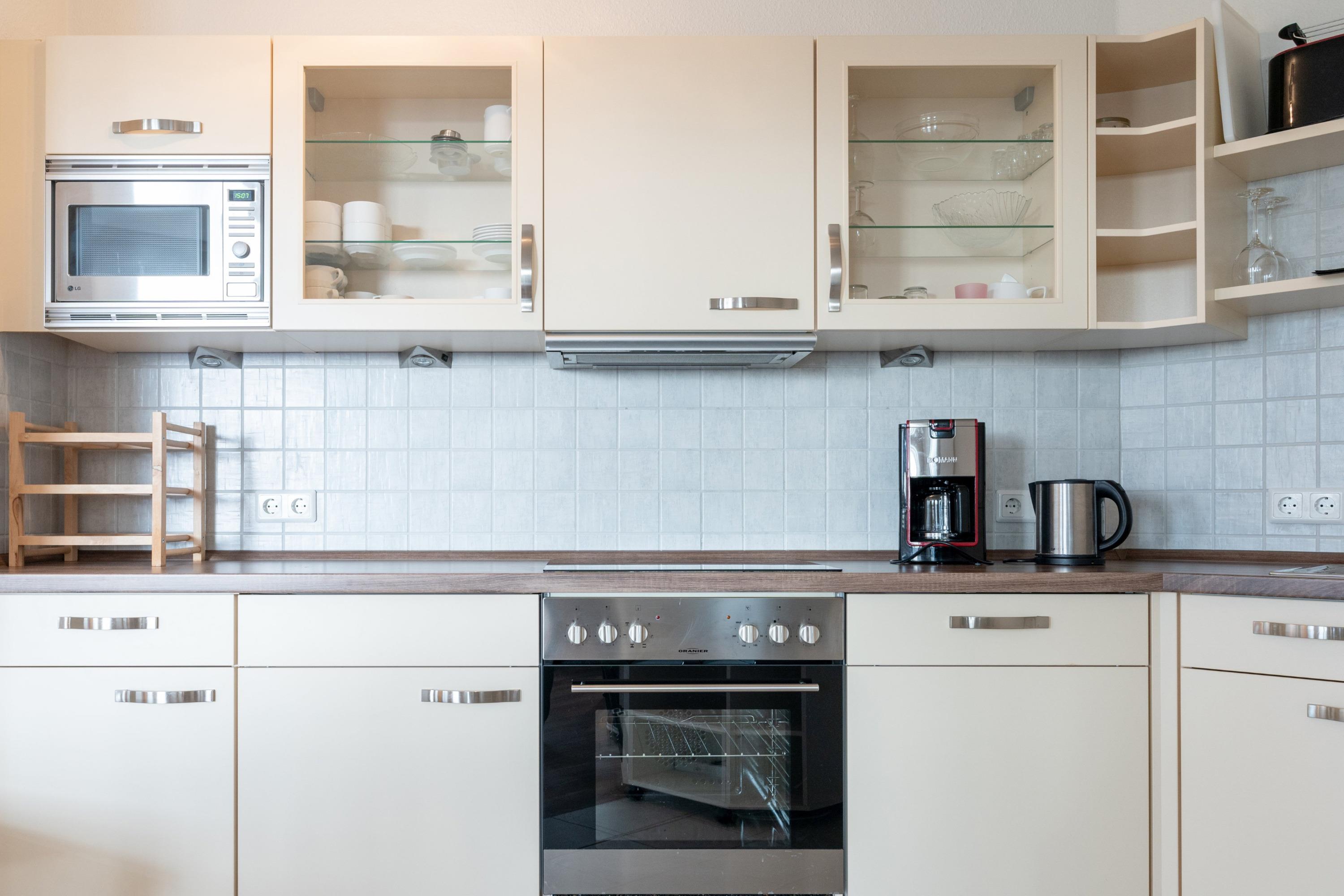 Die Ausstattung der Ferienwohnung umfasst kostenfreies WLAN und eine Erstausstattung an Bettwäsche. Das verdunkelbare Schlafzimmer verfügt über ein Doppelbett und im Wohnzimmer gibt es eine Doppelschlafcouch. Zudem gibt es ein Bad mit Badewanne und ein separates WC. Die offene Küche ist komplett ausgestattet mit Backofen, Geschirrspüler, Mikrowelle, Kaffeemaschine und Toaster. Ein Fernseher mit 3 Sky-Sendern sorgt für Unterhaltung.