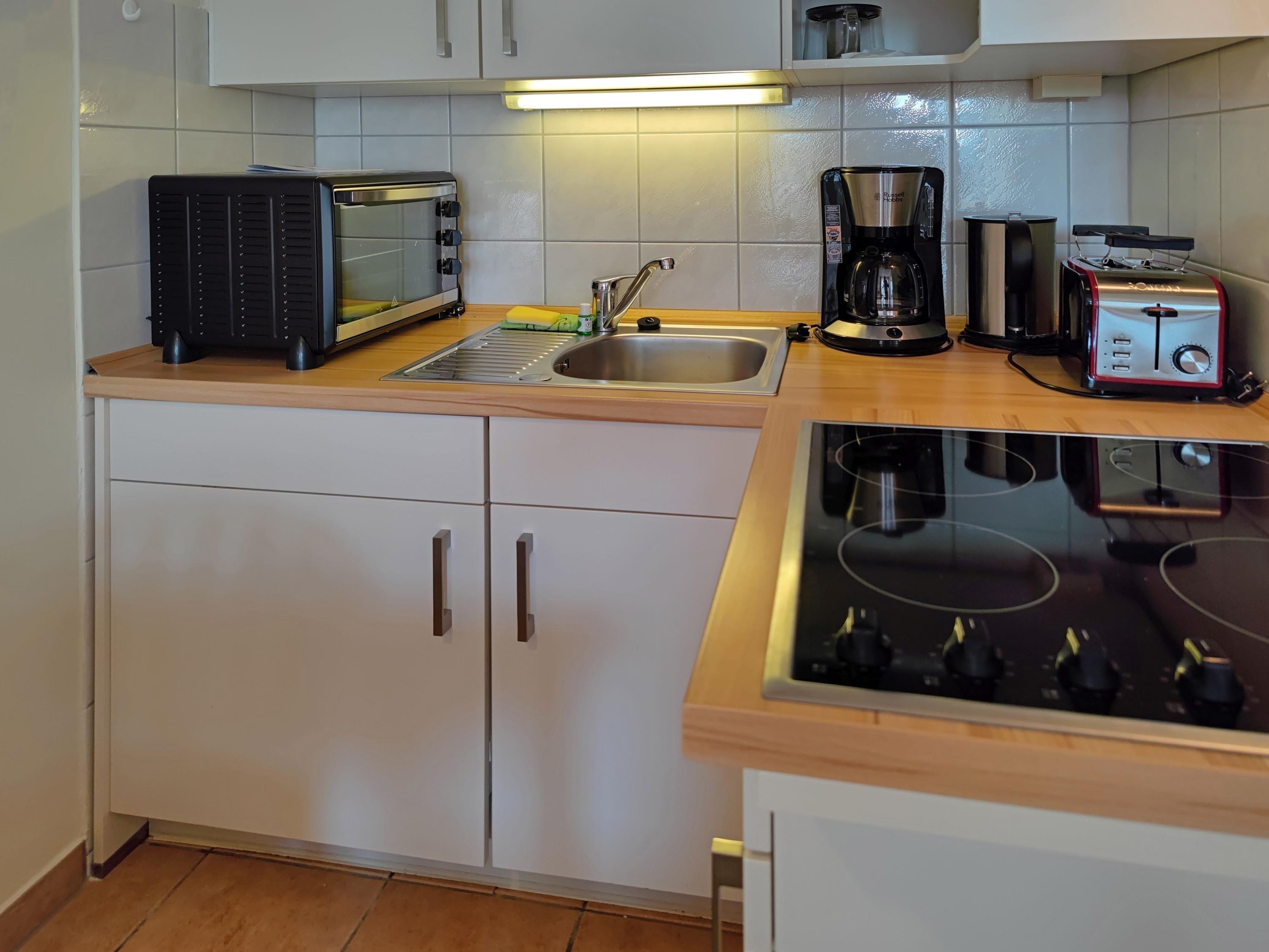 Die Unterkunft bietet kostenfreies WLAN und die Erstausstattung an Bettwäsche ist im Preis inbegriffen. Das Schlafzimmer verfügt über Verdunklungsmöglichkeiten und ein Doppelbett, im Wohnzimmer steht zudem eine Doppelschlafcouch zur Verfügung. Das Badezimmer ist mit einer Dusche, WC und einem Föhn ausgestattet. Die offene Küche ist voll ausgestattet mit einer Mikrowelle, Kaffeemaschine und einem Toaster. Ein Fernseher mit 3 Sky-Sendern gehört ebenfalls zur hochwertigen Ausstattung. Der Balkon bietet einen schönen Ausblick und eine Sitzgruppe zum Entspannen und Genießen von traumhaften Sonnenuntergängen.