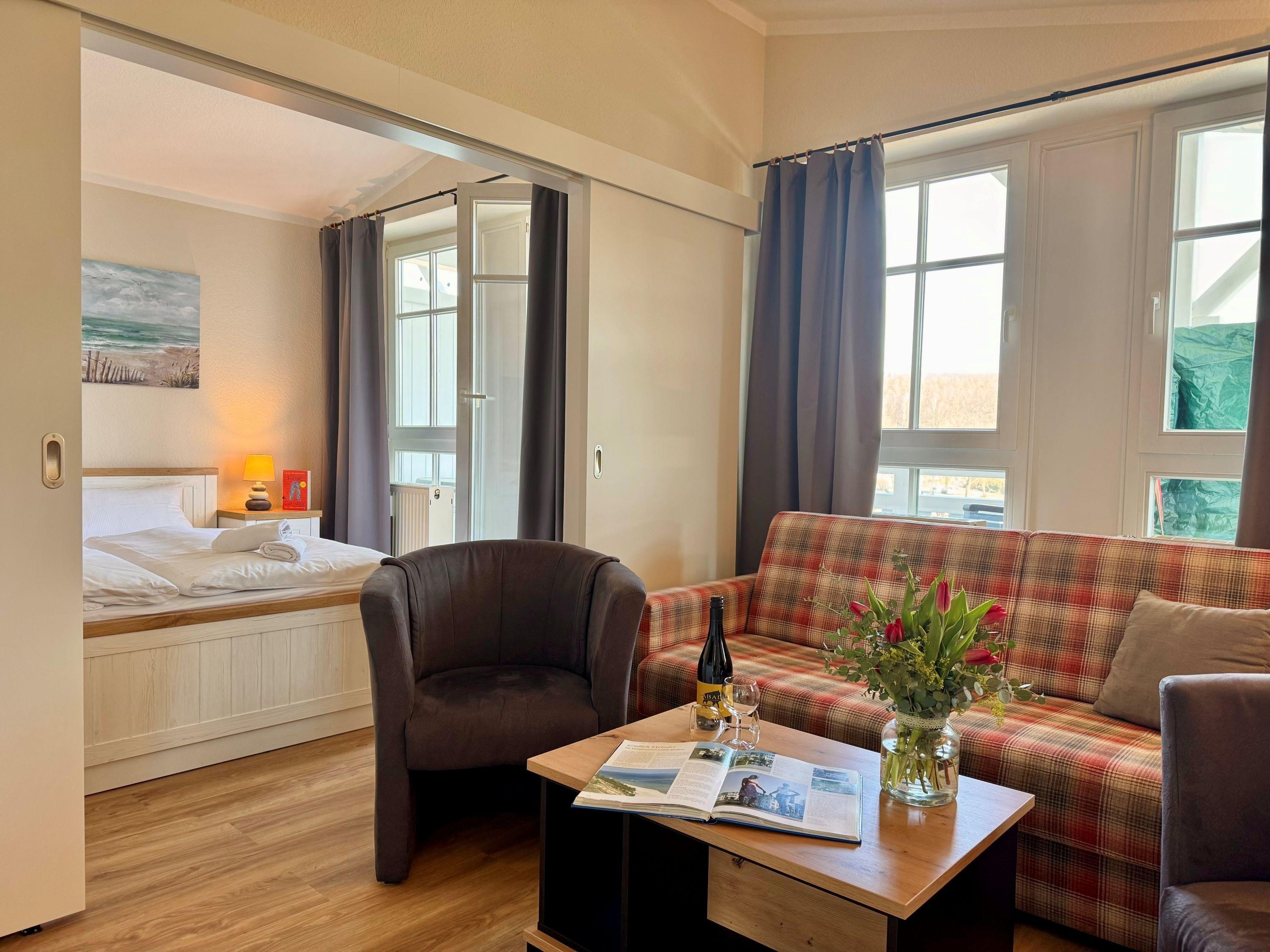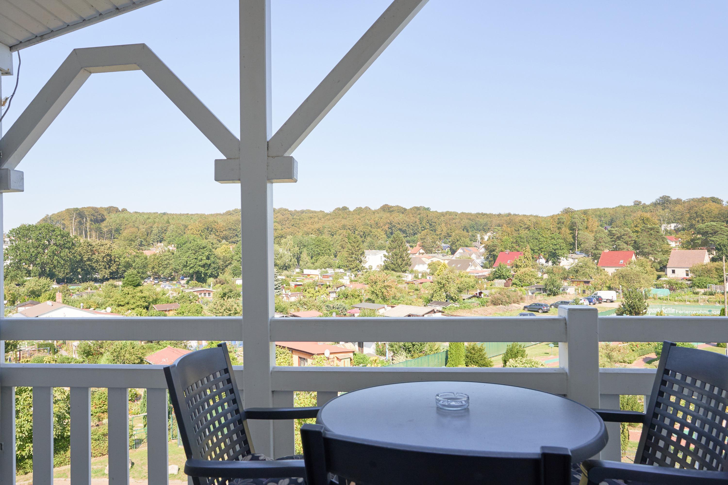 Genießen Sie die frische Ostseeluft auf dem Balkon mit nordöstlicher Ausrichtung. Die gemütliche Sitzgruppe und der Strandkorb laden zum Verweilen ein und bieten Ihnen einen herrlichen Blick auf die Umgebung.