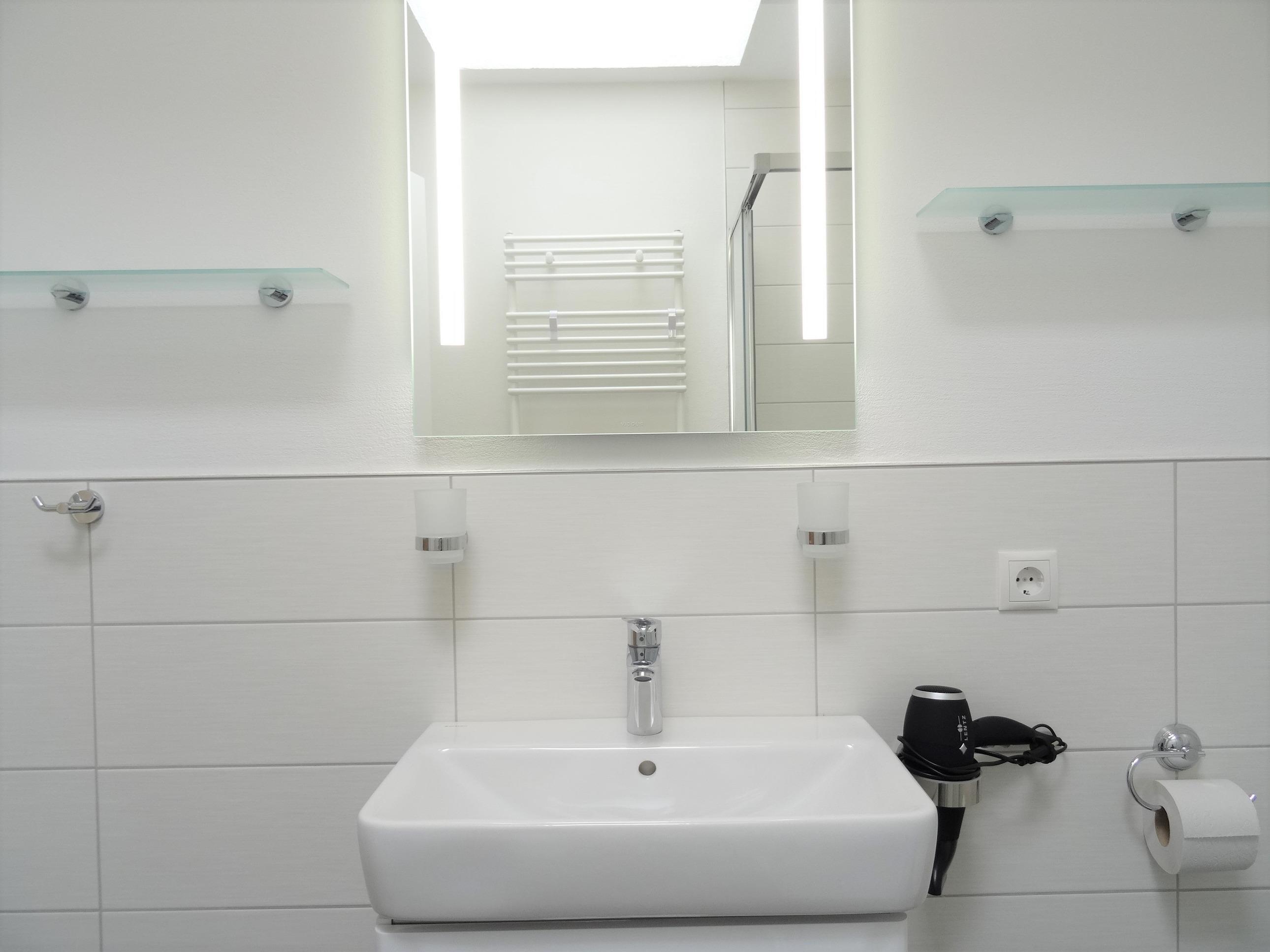 Die Ferienwohnung verfügt über kostenfreies WLAN und die Erstausstattung an Bettwäsche ist inklusive. Das Schlafzimmer mit Verdunklung verfügt über ein Doppelbett, im Wohnzimmer befindet sich zusätzlich eine Doppelschlafcouch. Darüber hinaus verfügt die Ferienwohnung über ein Bad mit Dusche/WC und Föhn. Die voll ausgestattete, offene Küche mit Backofen, Geschirrspüler, Kaffeemaschine, Toaster und Mikrowelle lässt keine Wünsche offen. Ein Fernseher inkl. 3 Sky-Sender rundet die Einrichtung ab.