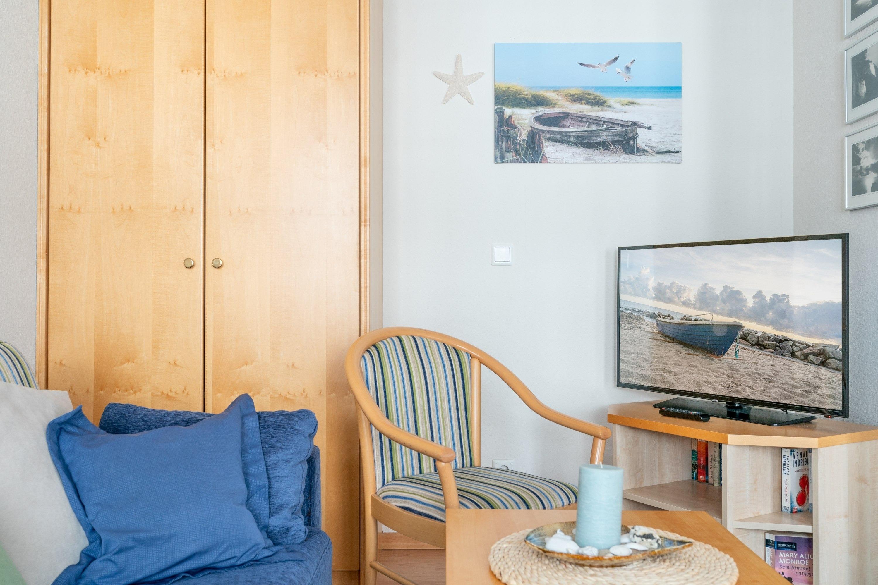 Auf dem Balkon können Sie die frische Seeluft genießen. Für Ihre Fahrräder steht ein Fahrradkeller zur Verfügung und ein WLAN Anschluss ist ebenfalls vorhanden. Auch ein Fernseher mit Sky-Sendern gehört zur Ausstattung. Ihr Auto können Sie bequem in der Tiefgarage abstellen. Auf Wunsch wird Ihnen morgens frisches Gebäck geliefert.