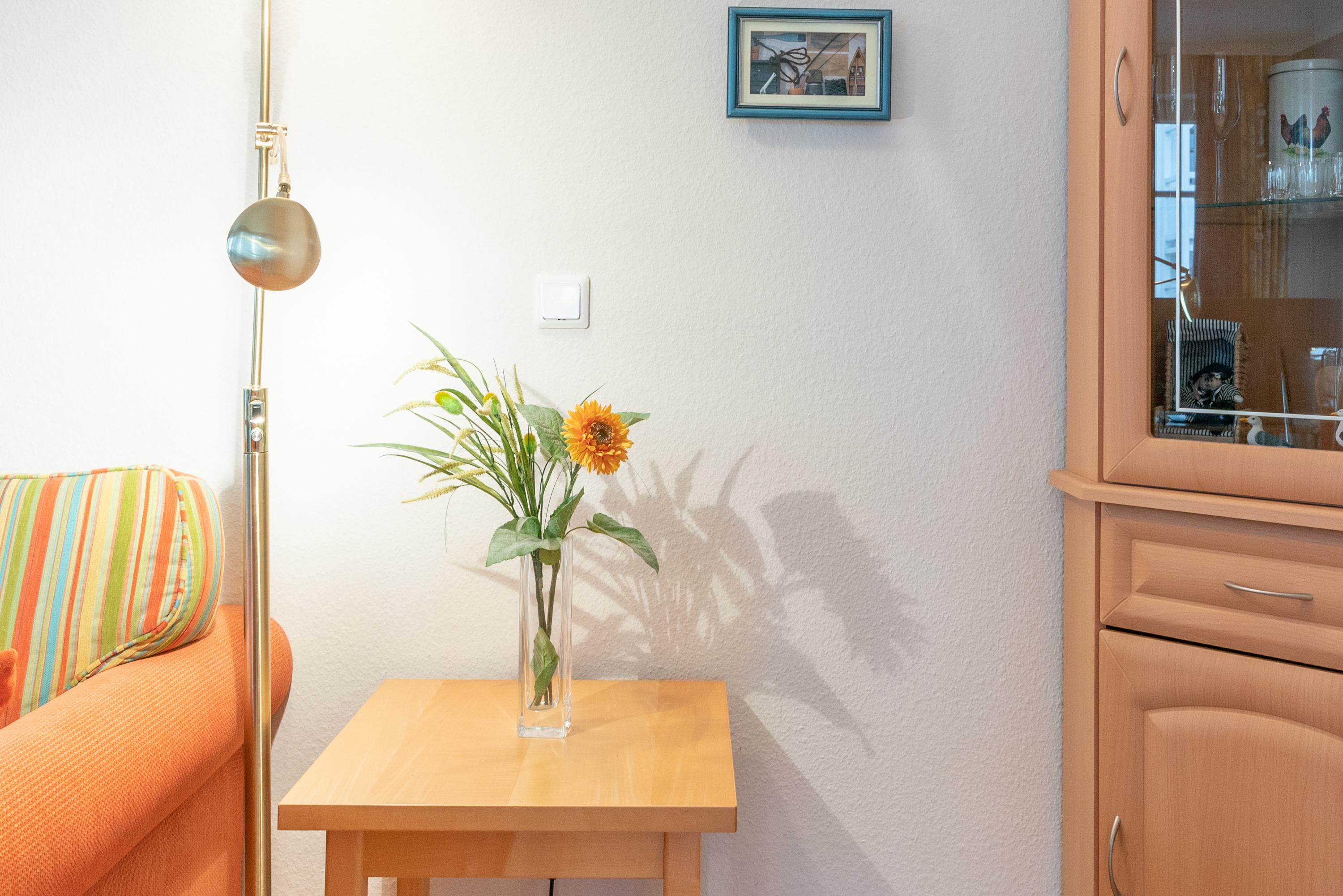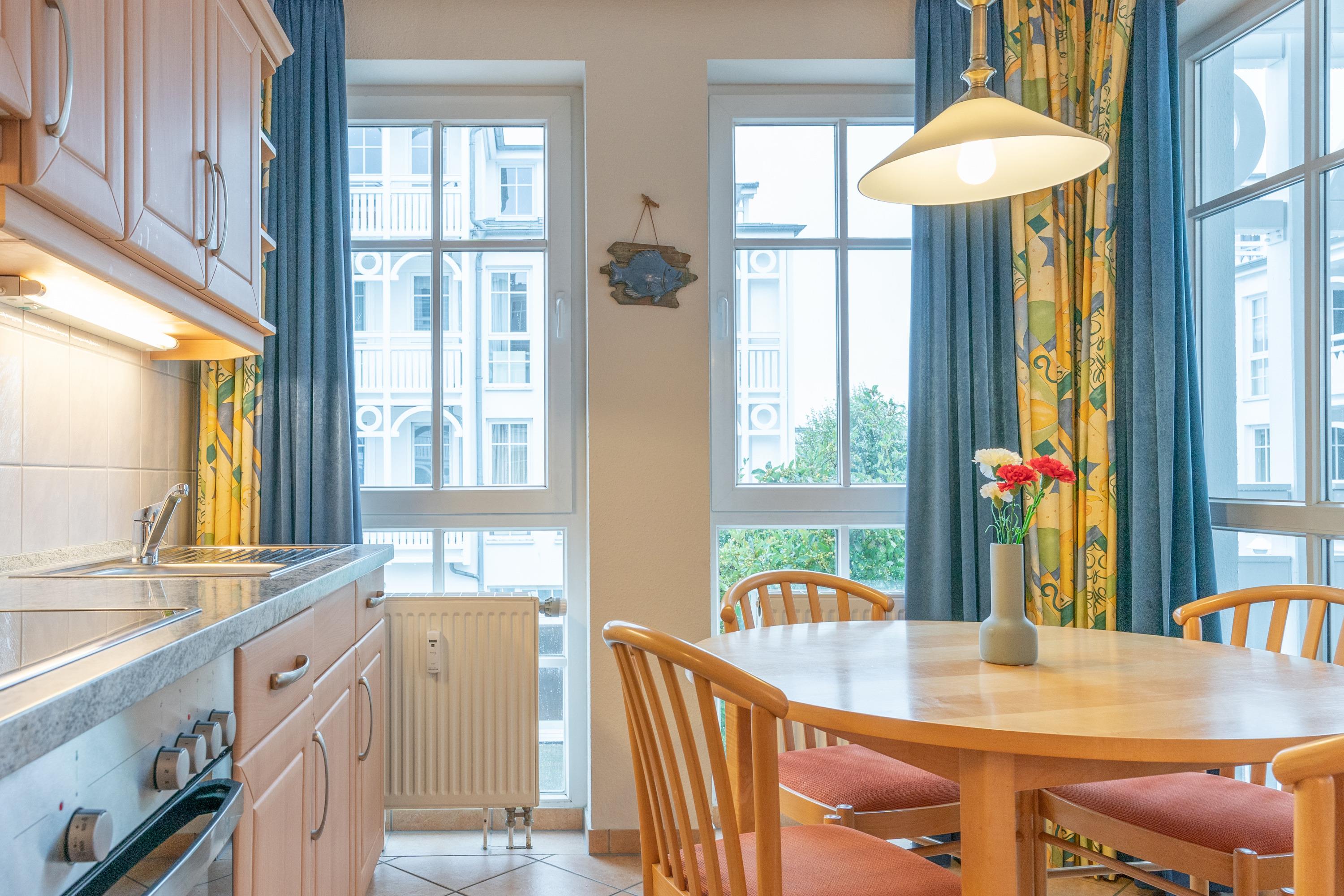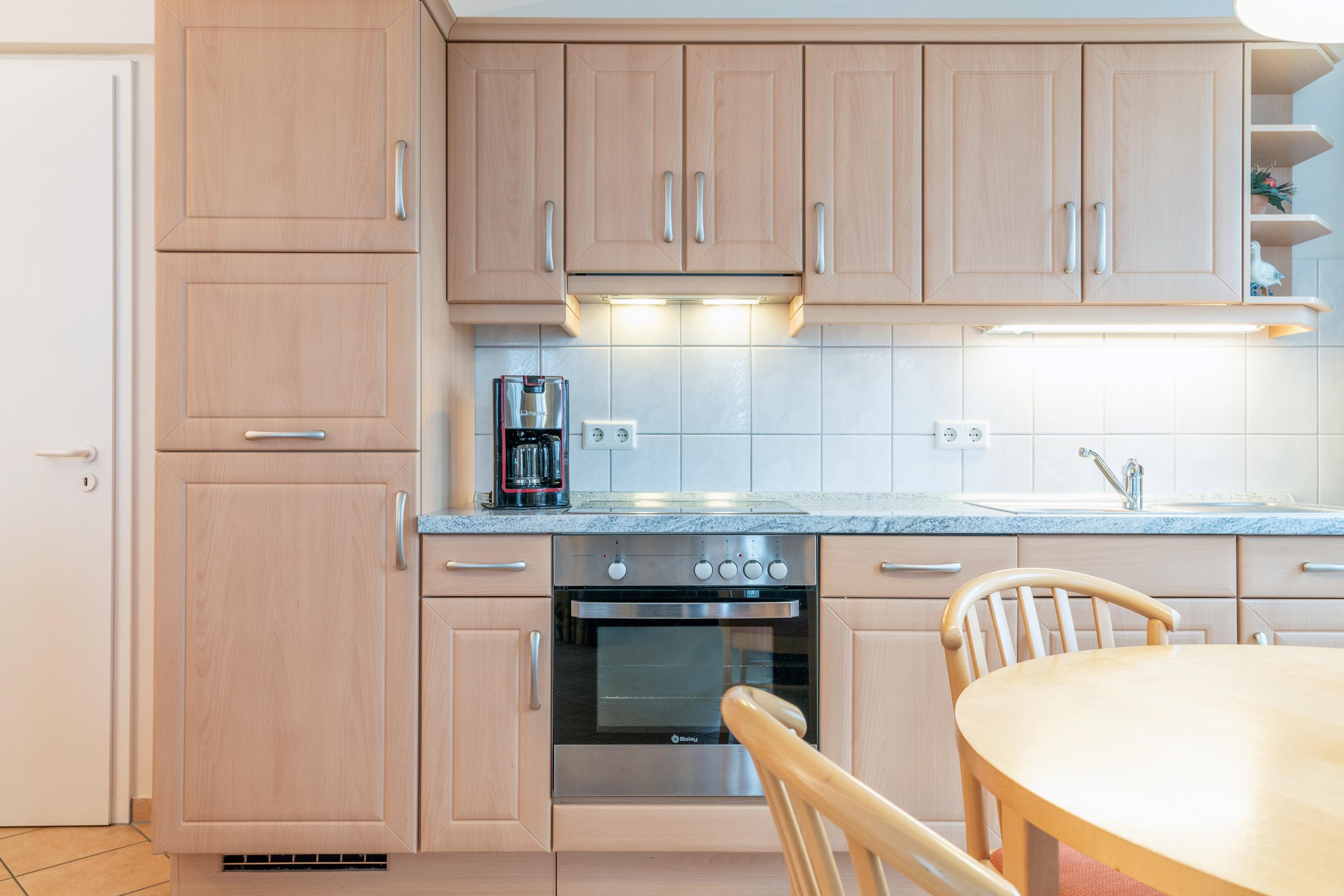 Die Ausstattung umfasst einen Flachbildfernseher, eine Kaffeemaschine (Filter), eine Mikrowelle, einen Geschirrspüler sowie Bettwäsche, die bereits im Preis inklusive ist. Auf dem Balkon können Sie die frische Seeluft genießen. Die offene Wohnküche bietet Ihnen die Möglichkeit, gemütlich zu kochen und zu essen.