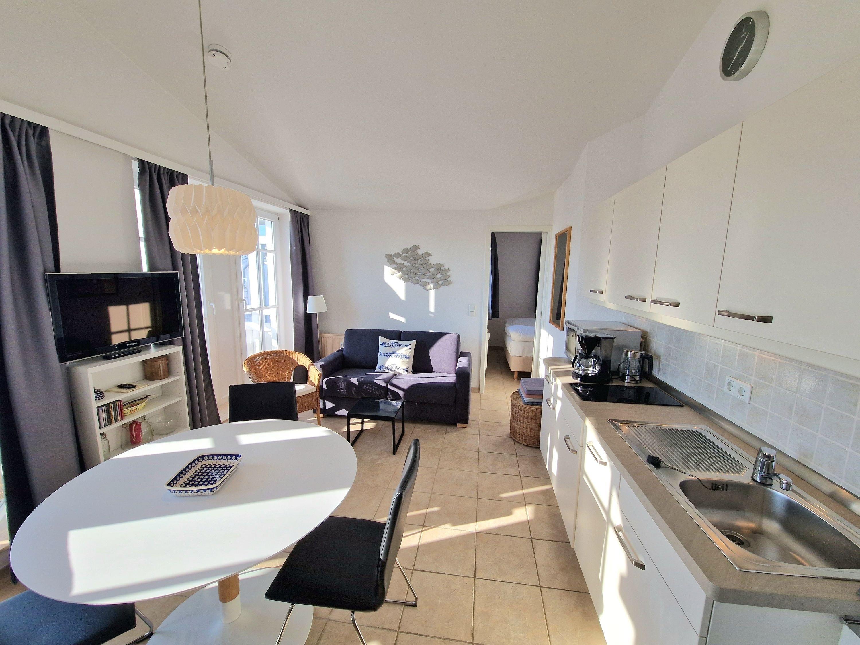Die geschmackvolle Einrichtung und Ausstattung umfasst ein TV-Flachbildgerät, eine Kaffeemaschine (Filter), eine Mikrowelle, einen Geschirrspüler sowie Bettwäsche, die bereits im Preis inkludiert ist. Auf dem Balkon kann man die frische Luft genießen. Die offene Wohnküche lädt zum gemeinsamen Kochen ein. Für die Unterbringung von Fahrrädern steht ein Fahrradkeller zur Verfügung. Ein kostenloser WLAN Anschluss sowie ein TV mit Sky-Sendern sorgen für Unterhaltung. Auf Wunsch kann auch ein Brötchenservice in Anspruch genommen werden.