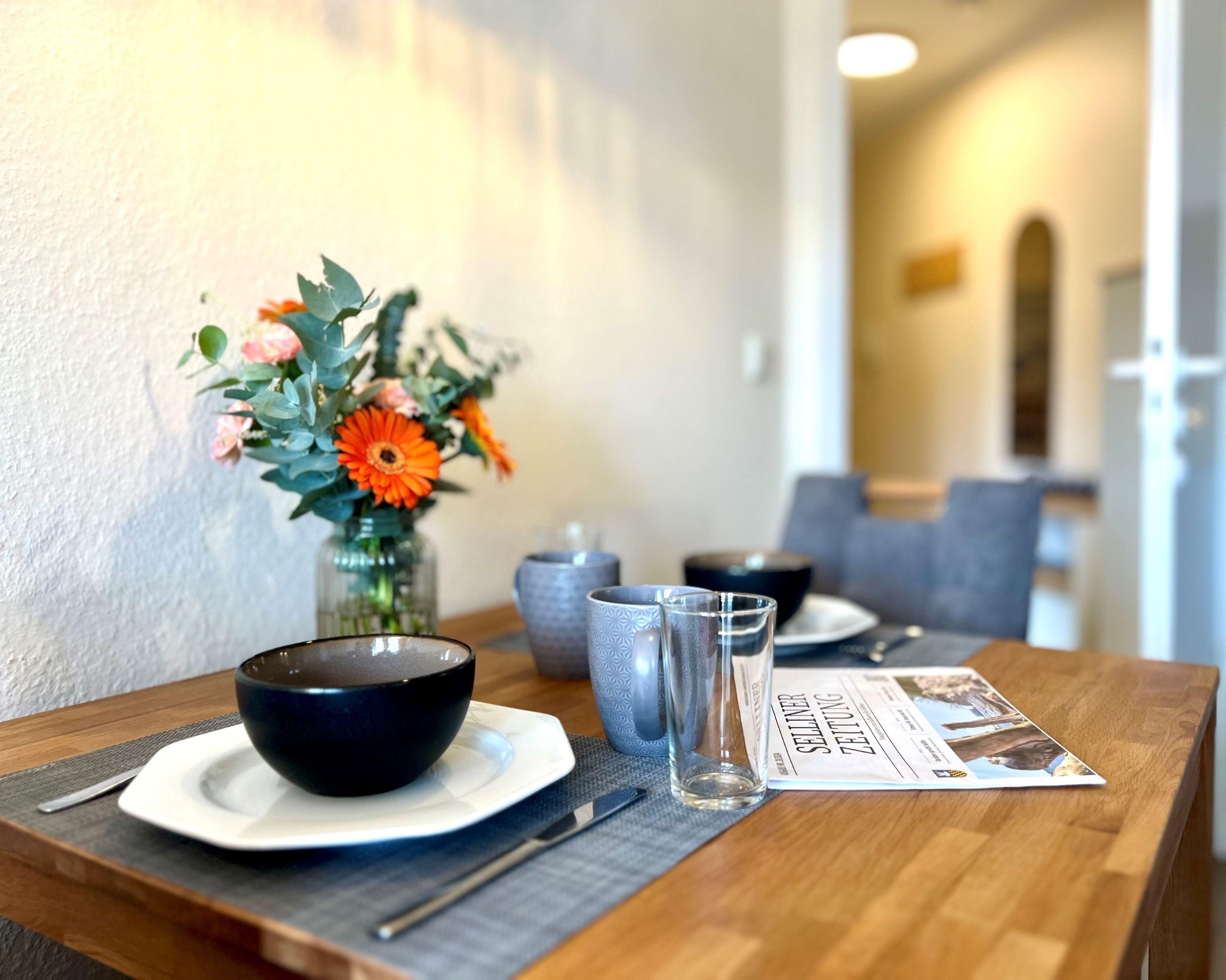 Die Wohnung ist mit zwei Fernsehgeräten (Wohnzimmer-Smart TV und Schlafzimmer), einer Kaffeemaschine (Filter), einer Mikrowelle, einem Geschirrspüler, einem Backofen, zahlreicher zusätzlicher Küchenhelfer und kostenloser Bettwäsche ausgestattet. Auf dem Balkon können Sie entspannte Stunden verbringen und die offene Wohnküche lädt zum gemeinsamen Kochen ein. Für die Aufbewahrung Ihrer Fahrräder steht Ihnen ein Fahrradkeller zur Verfügung und über den WLAN Anschluss bleiben Sie auch im Urlaub online. Auch der TV-Empfang mit Sky-Sendern ist inklusive. Eine Pad-/Kapsel-Kaffeemaschine sowie ein Brötchenservice sind zusätzliche Annehmlichkeiten für einen gelungenen Aufenthalt.