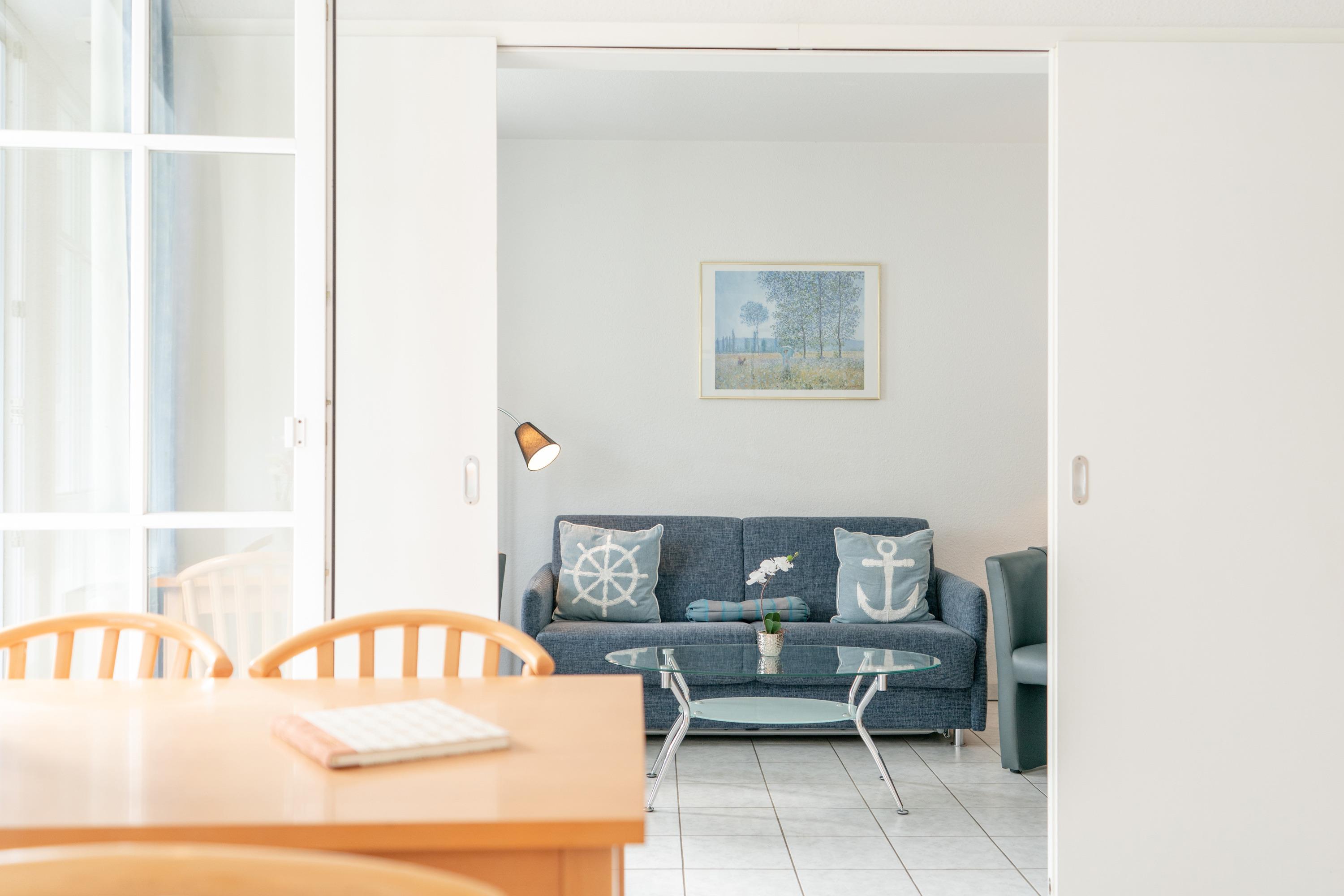 In unmittelbarer Nähe der Ferienwohnung befindet sich ein Einkaufsmöglichkeit sowie ein Bäcker und ein Minigolfplatz. Das Restaurant ist ca. 300 m entfernt. Die AHOI! Bade- [&] Erlebniswelt ist nur ca. 50 m entfernt und der Strand ist in ca. 900 m zu erreichen. Auch die Seebrücke und der Schiffsanleger sind jeweils in ca. 900 m bzw. 500 m Entfernung zu finden. Eine Bushaltestelle ist nur ca. 100 m entfernt. Für Ihren Komfort bieten wir auch einen Brötchenservice an.