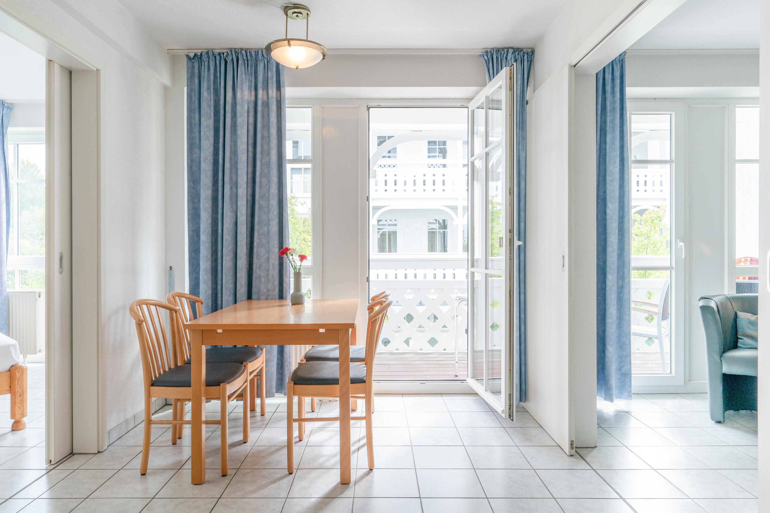 Die Ferienwohnung 502 im Seepark Sellin bietet auf 52 m² Platz für bis zu 4 Personen. Sie befindet sich in der 1. Etage des Hauses "Haus Göhren" und verfügt über ein Schlafzimmer sowie ein Badezimmer. Die Wohnung ist mit einem TV-Flachbild, einer Kaffeemaschine (Filter), einem Geschirrspüler und WLAN ausgestattet. Die Bettwäsche ist bereits im Preis inbegriffen. Auch Haustiere sind hier herzlich willkommen.