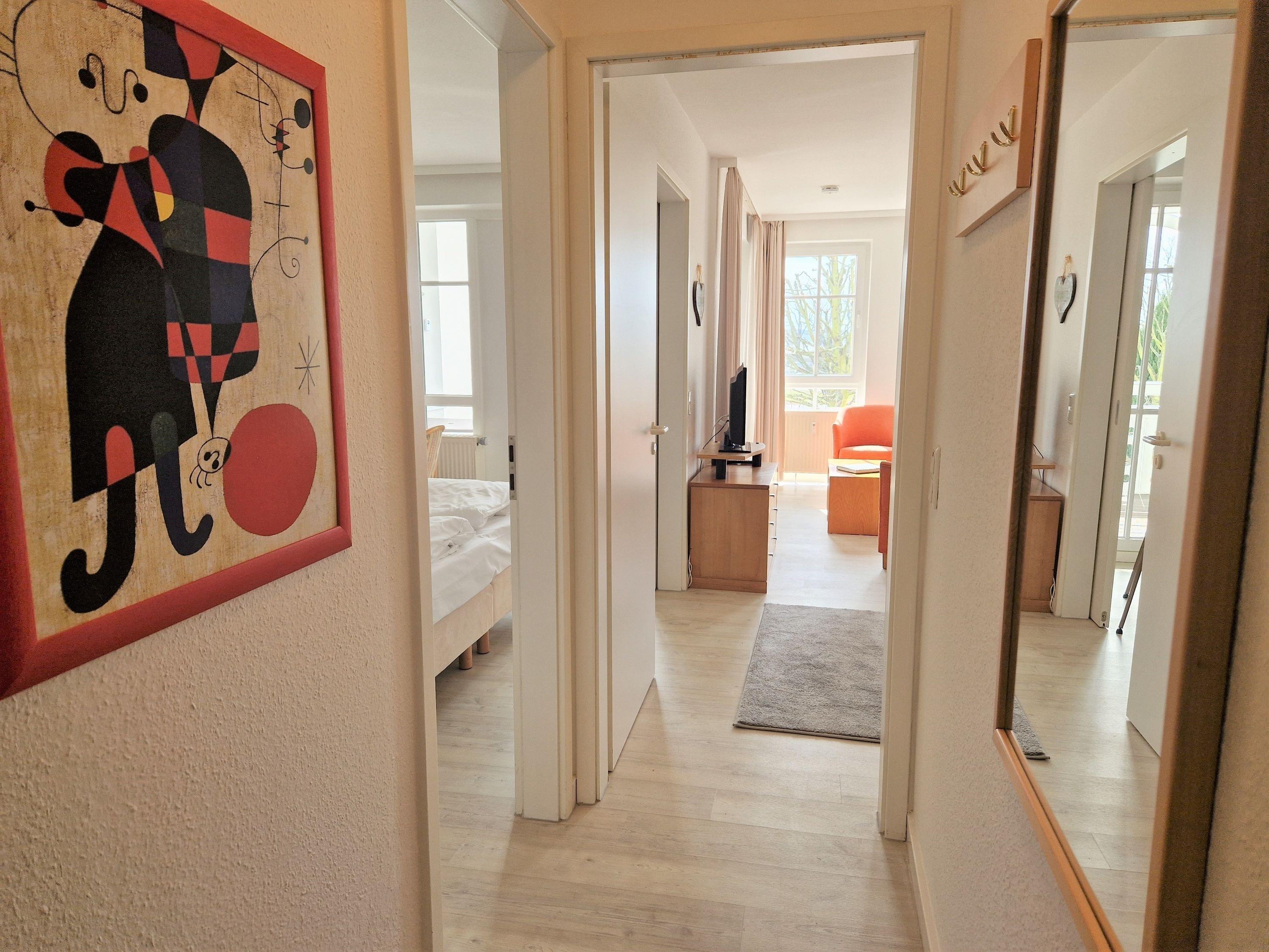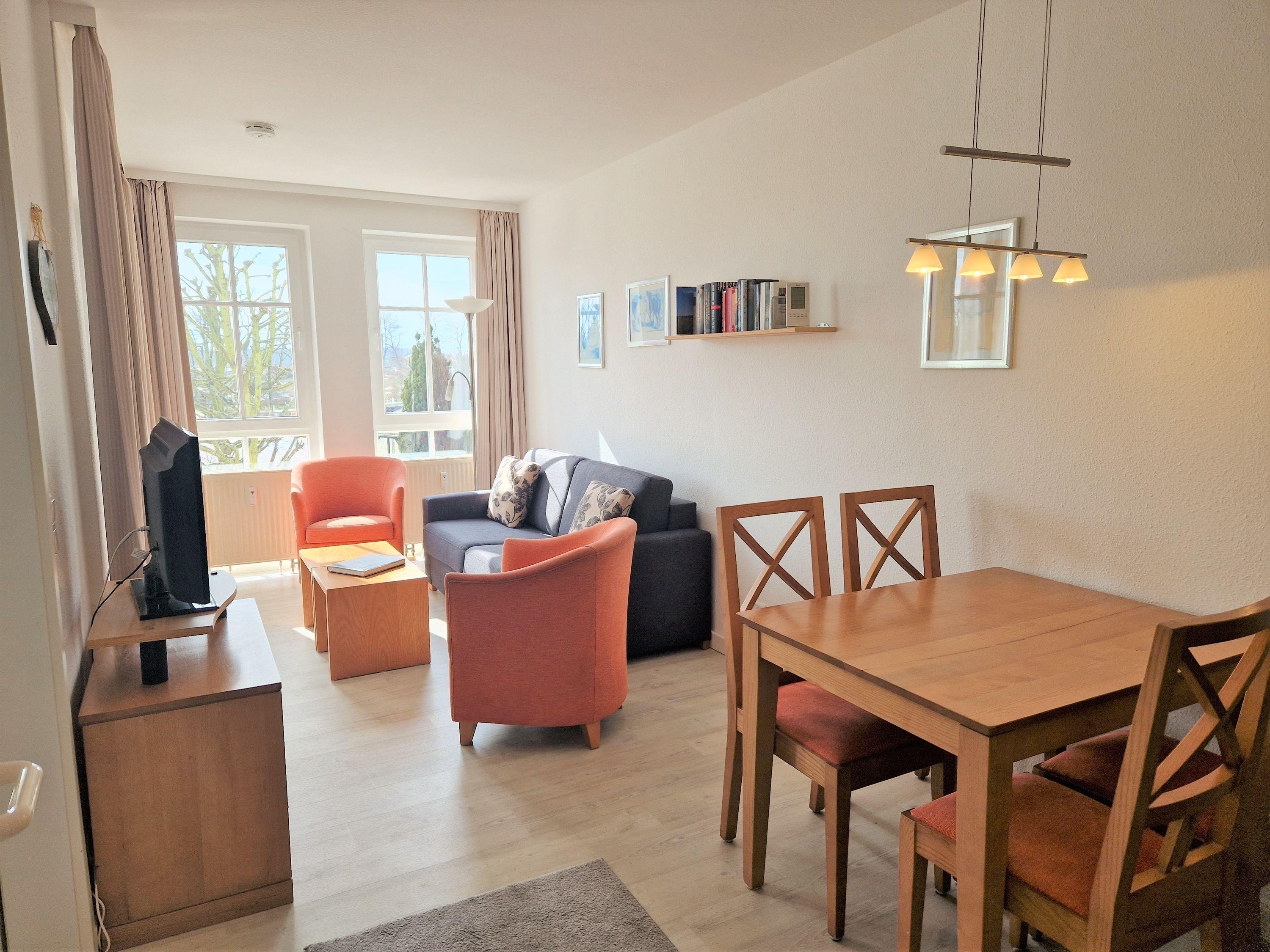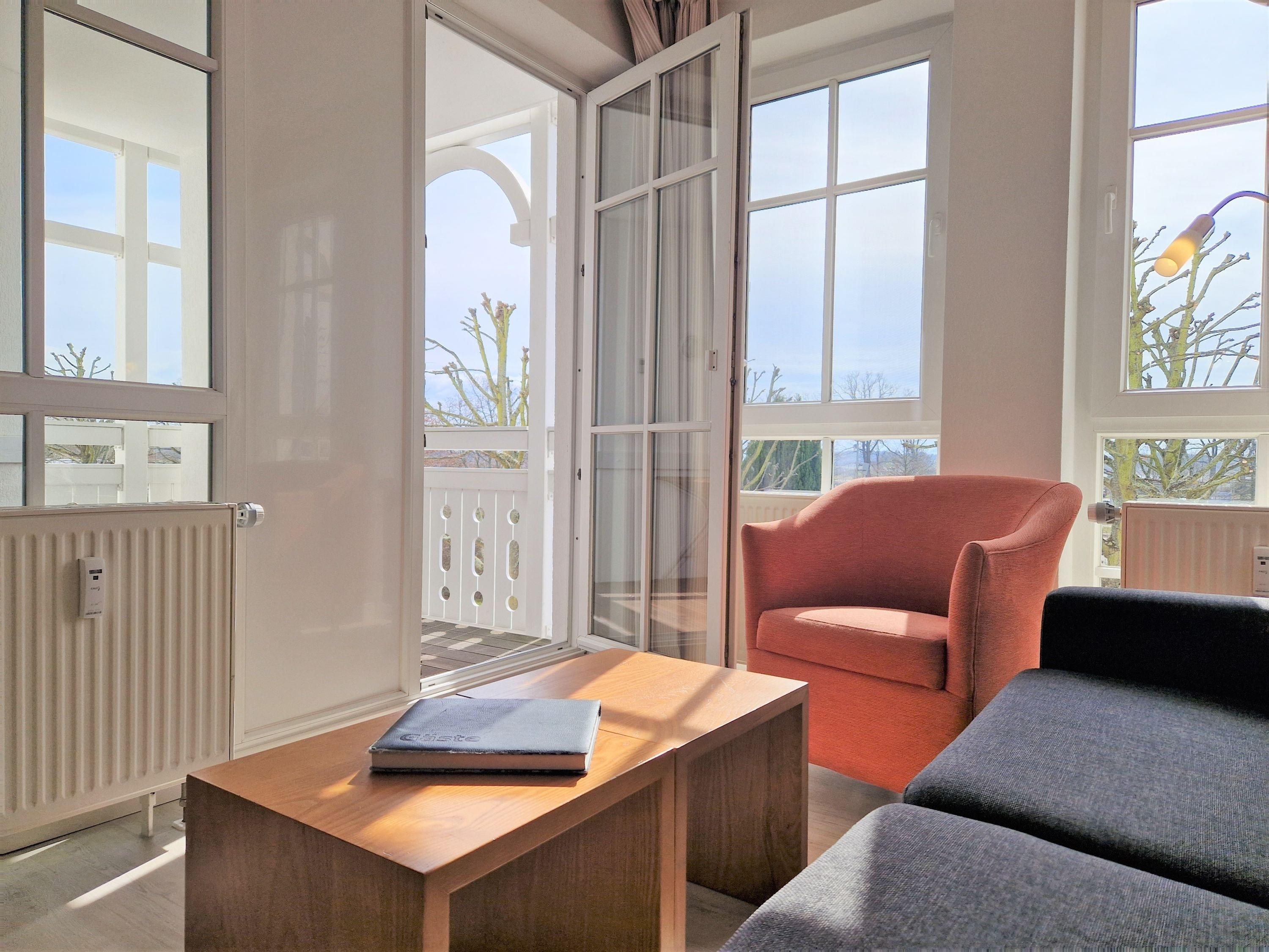 Nach einem erlebnisreichen Urlaubstag können Sie auf dem Balkon in Südwestlage Platz nehmen. Der Ausblick und die Sitzgruppe sorgen hier für ein wunderbares Urlaubsgefühl. Im Nichtraucher-Apartment sind keine Haustiere gestattet.
