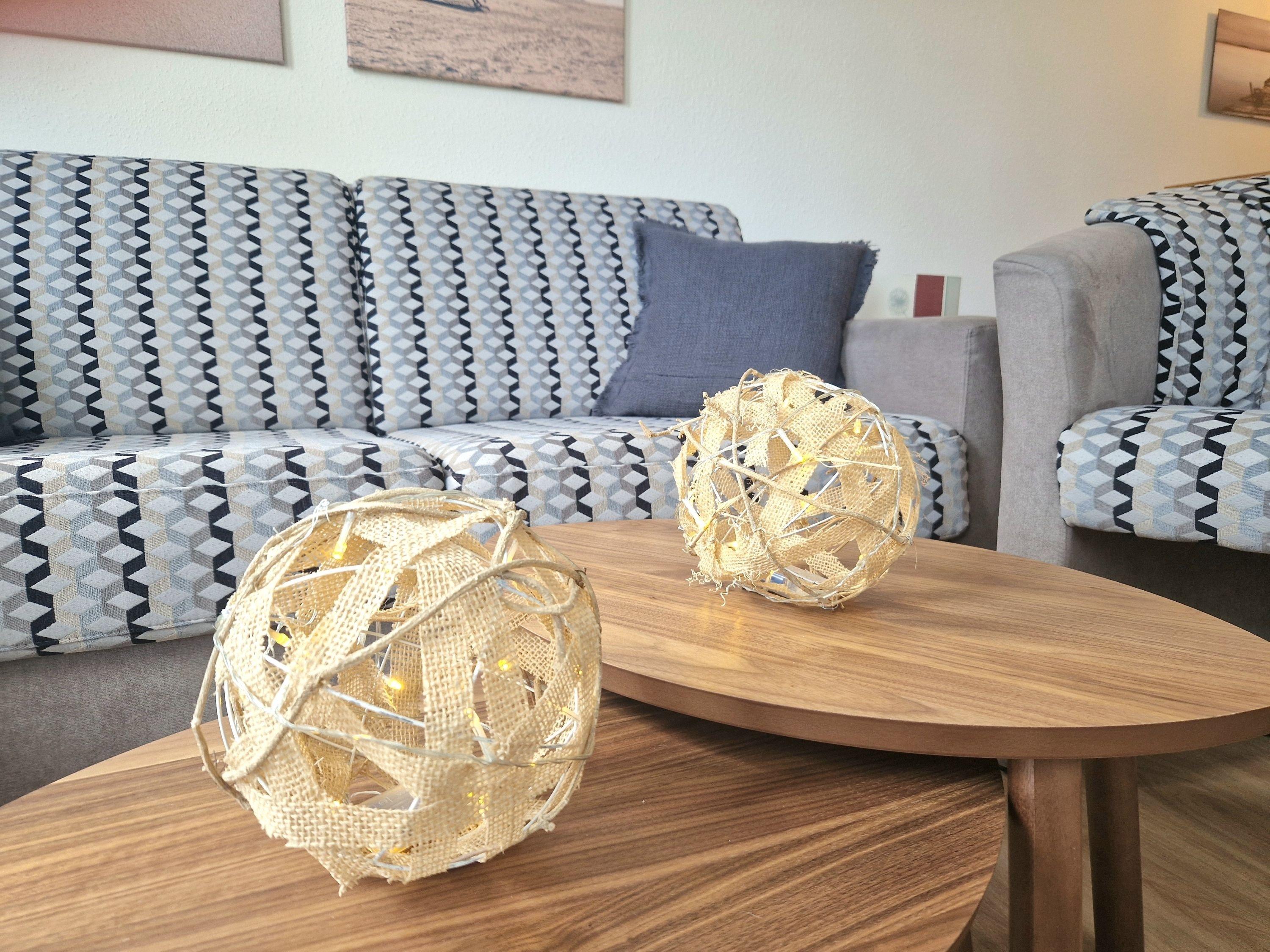 Die Ferienwohnung verfügt über kostenfreies WLAN und die Erstausstattung an Bettwäsche ist inklusive. Das Schlafzimmer mit Verdunklung verfügt über ein Doppelbett, im Wohnzimmer befindet sich zusätzlich eine Doppelschlafcouch. Darüber hinaus verfügt die Ferienwohnung über ein Bad mit Dusche/WC, Föhn und Kosmetikspiegel. Die voll ausgestattete, offene Küche mit Mikrowelle, Kaffeemaschine und Toaster lässt keine Wünsche offen. Ein Fernseher inkl. 3 Sky-Sender rundet die Einrichtung ab.