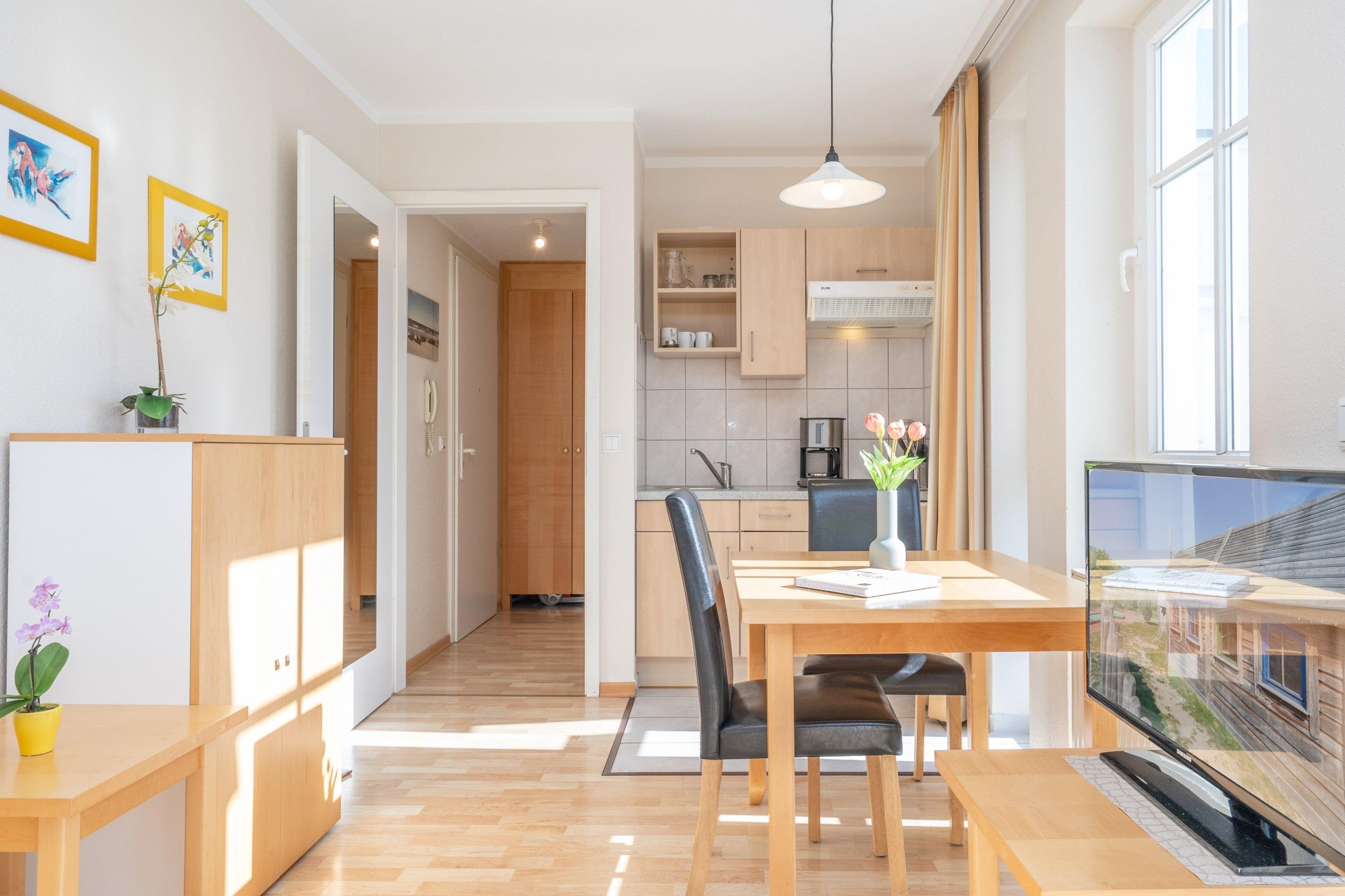 Nach einem erlebnisreichen Urlaubstag können Sie auf dem Balkon in Südostlage Platz nehmen. Im Nichtraucher-Apartment ist ein mitreisendes Haustier gestattet.