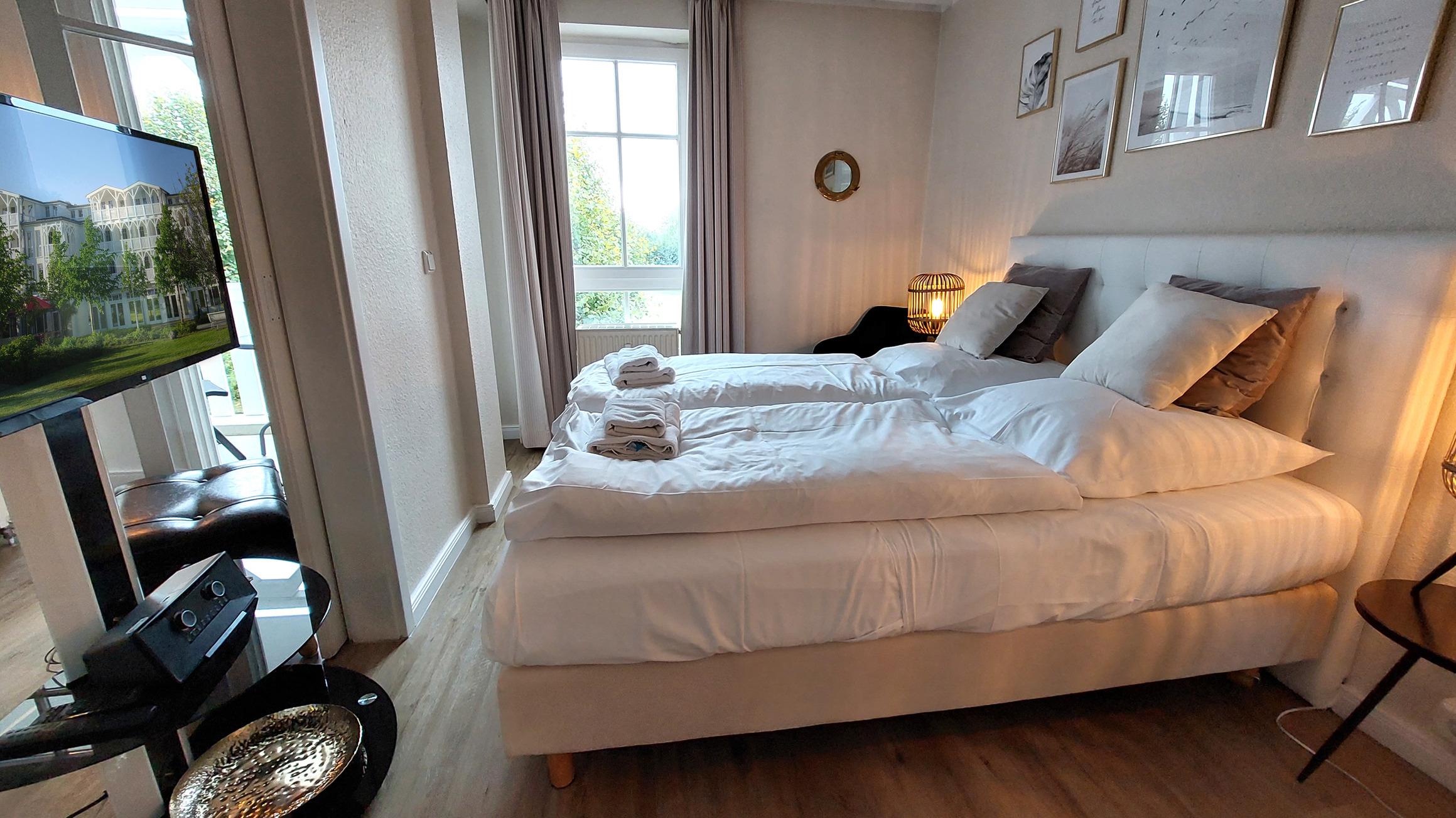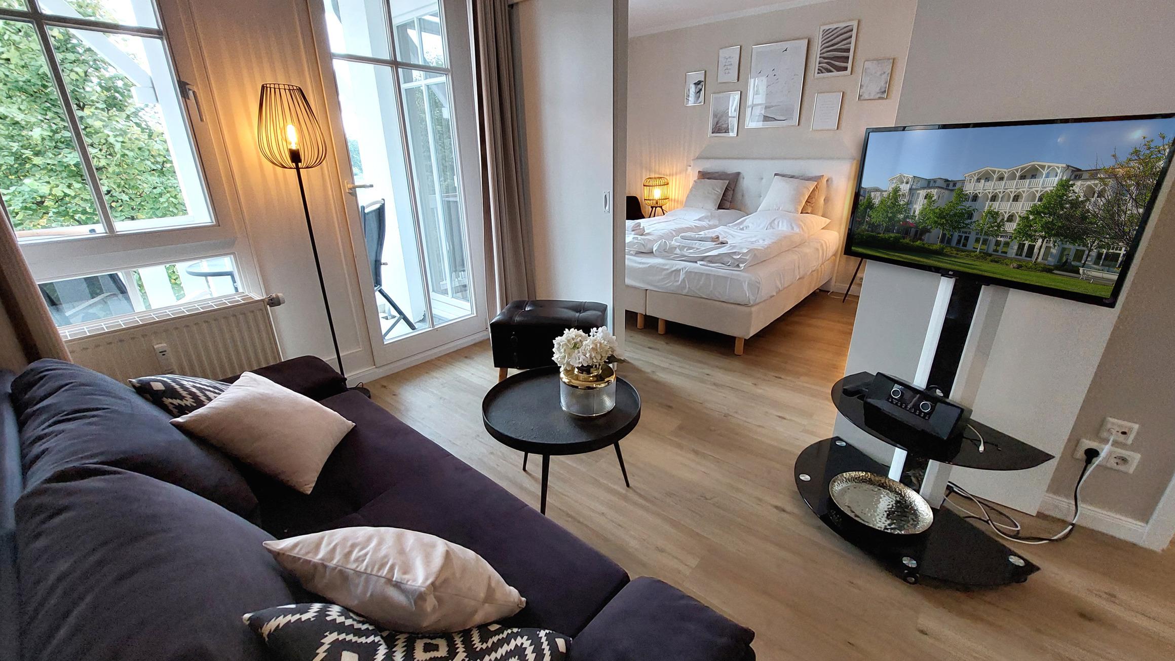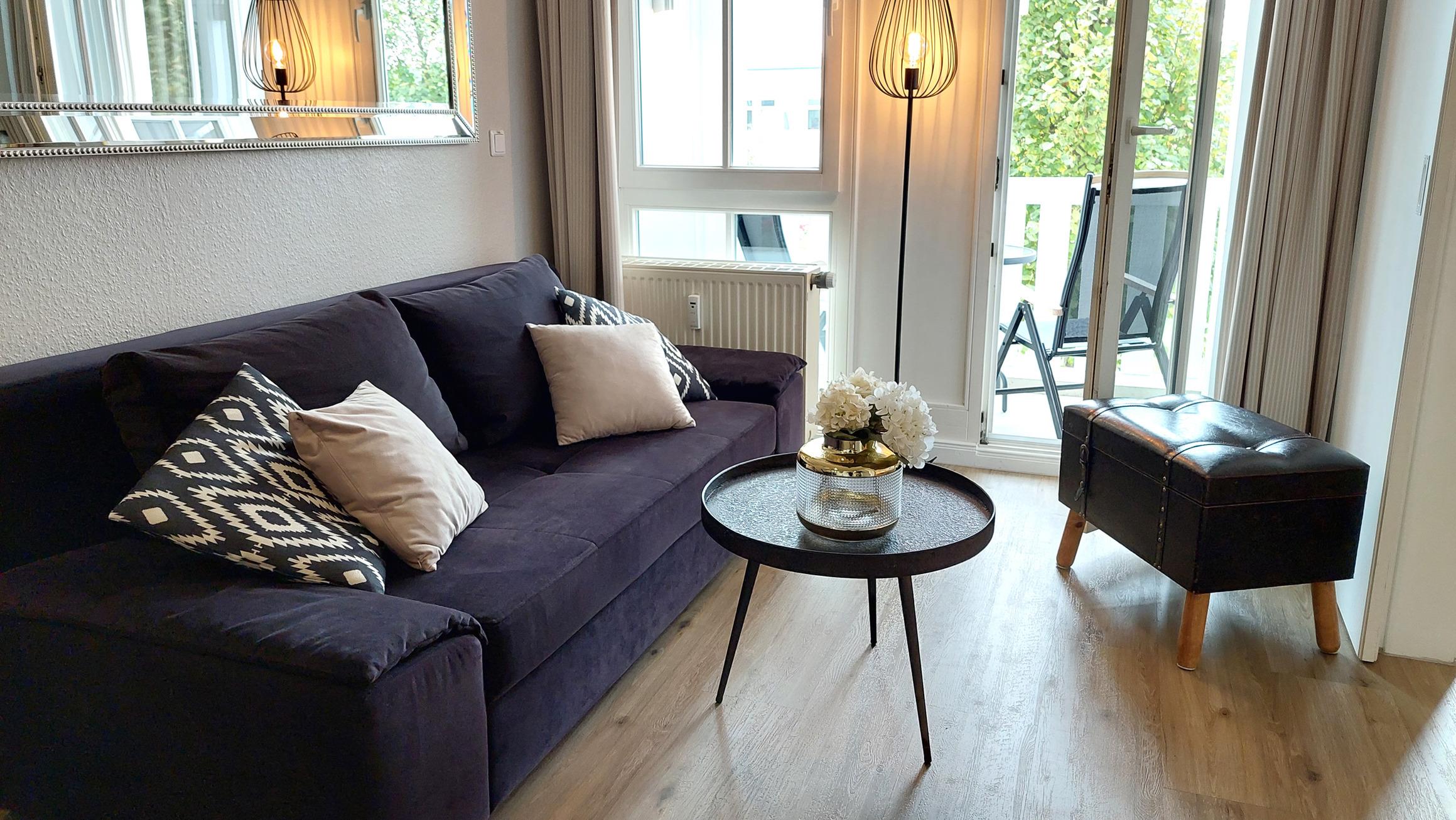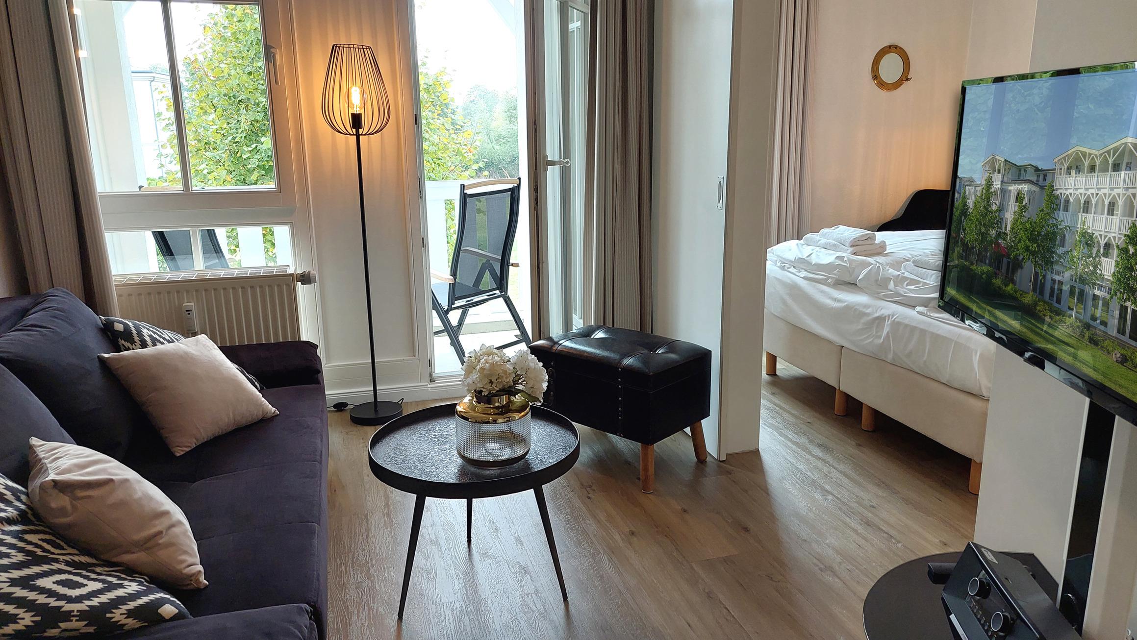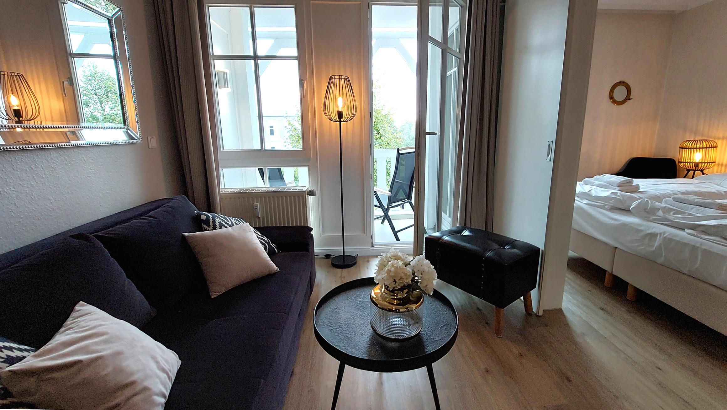 Die moderne 2-Raum-Nichtraucherwohnung Inselträumerei befindet sich im ersten Obergeschoss des Hauses Having im Seepark Sellin.