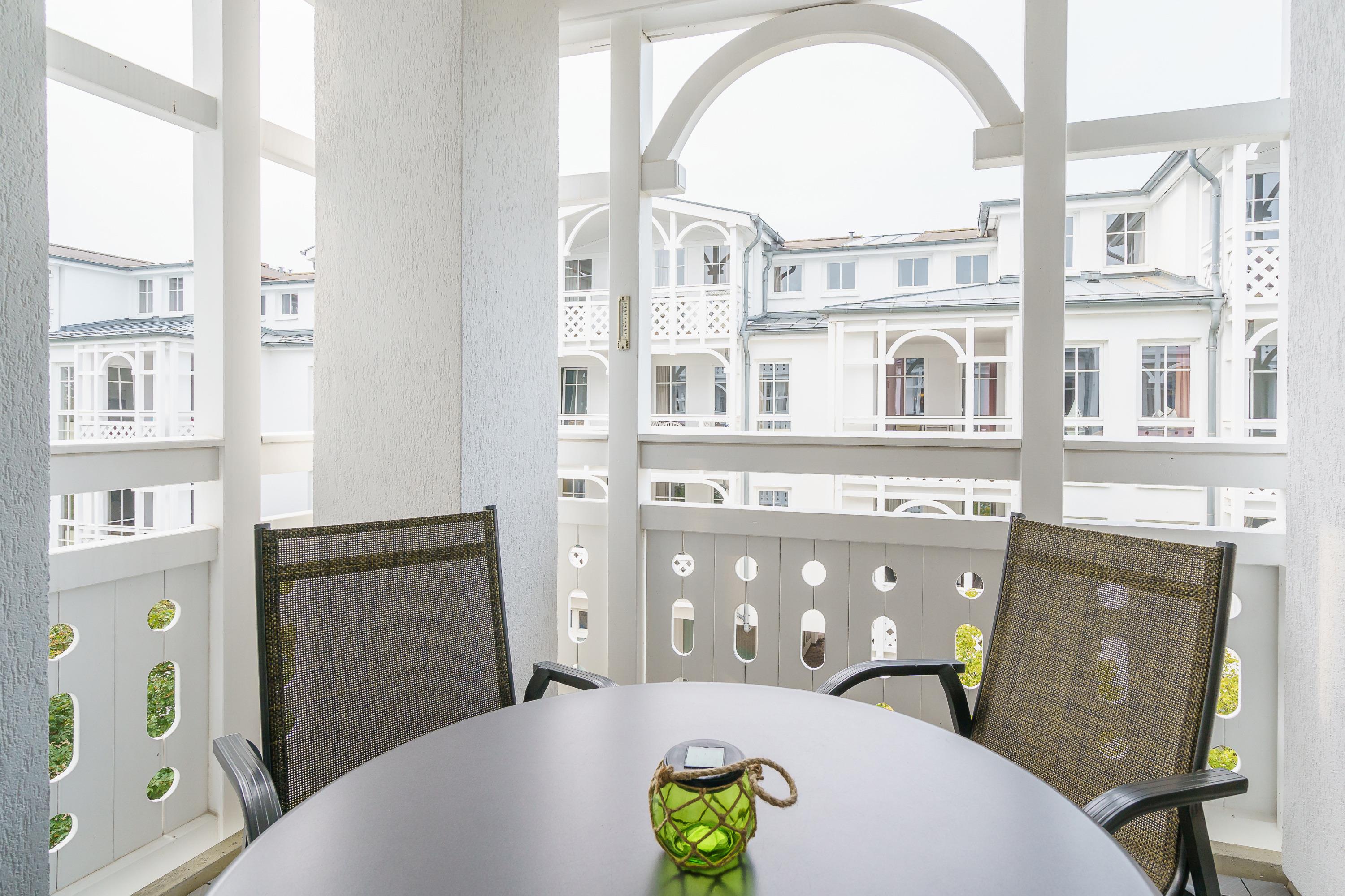 Nach einem erlebnisreichen Urlaubstag können Sie auf dem Balkon in Nordwestlage Platz nehmen. Der Ausblick und die Sitzgruppe sorgen hier für ein wunderbares Urlaubsgefühl. Im Nichtraucher-Apartment sind keine Haustiere gestattet.