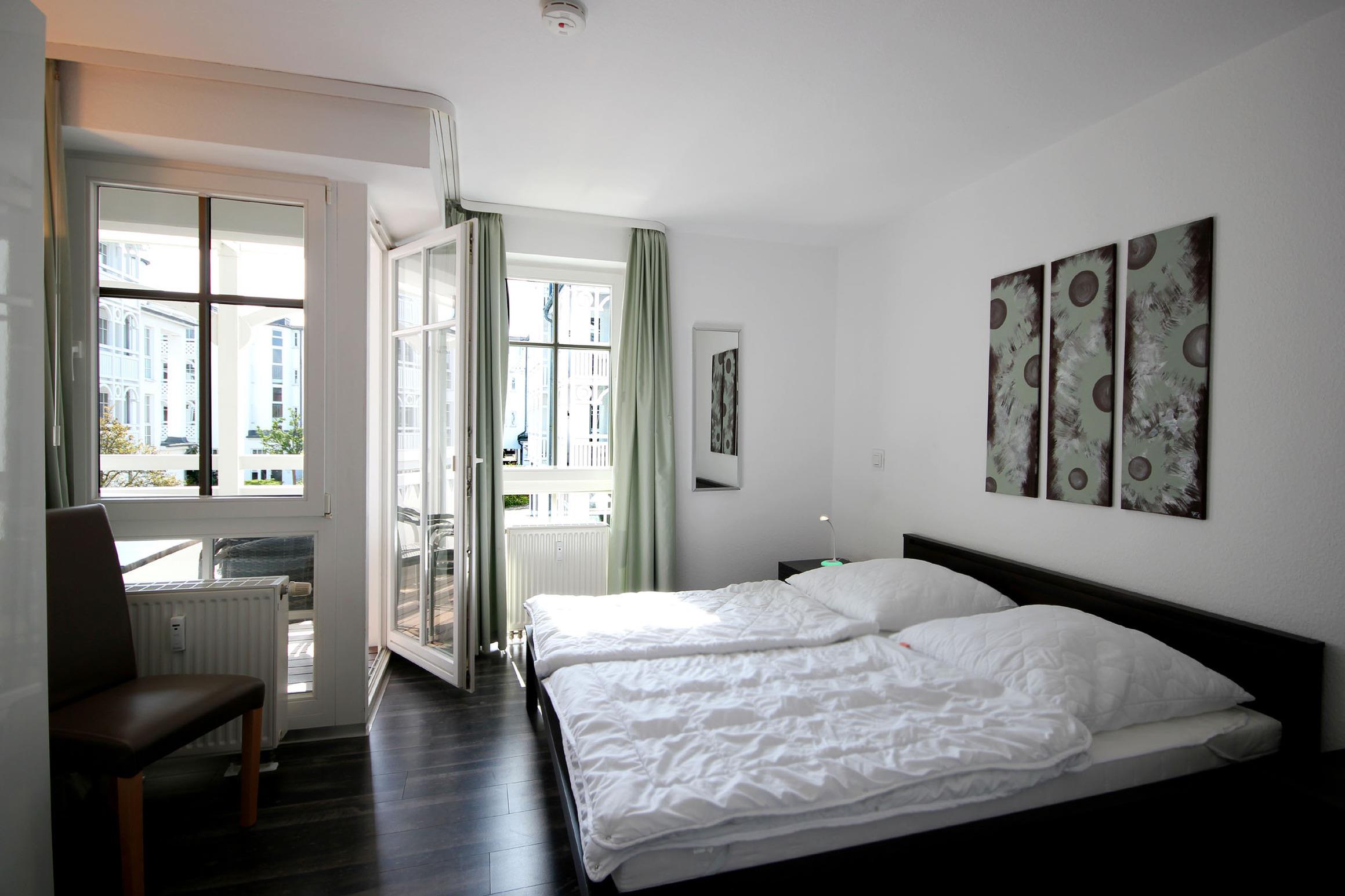 Ihre moderne und mit Liebe zum Details eingerichtete 3-Zimmer Nichtraucher-Ferienwohnung 60RB420 befindet sich im Haus Baabe, ist ca. 65 qm groß und für maximal 5 Personen eingerichtet. Sie befindet sich im 1. Obergeschoss und verfügt über 2 Balkone (Südosten und Westen) , 2 Schlafzimmer, 1 Badezimmer mit Waschtisch, Dusche, Waschvollautomat und WC, ein Wohnraum mit einer gemütlichen Sitzecke zum Ausziehen möglich. Zusätzlich können Sie einen Flat-TV, Stereoanlage und DVD-Player nutzen. Beide Schlafzimmer sind mit jeweils einem Doppelbett und Kleiderschrank ausgestattet. Zusätzlich befindet sich in einem Schlafbereich ein Flachbild-TV zum Abspielen von DVDs. In der Küche finden Sie einen Backofen, Cerankochfeld, Mikrowelle, Geschirrspüler, Kühlschrank sowie weitere kleinere Elektrogeräte. Ab sofort steht Ihnen zusätzlich ein kostenfreier WLan-Zugang zur Verfügung.