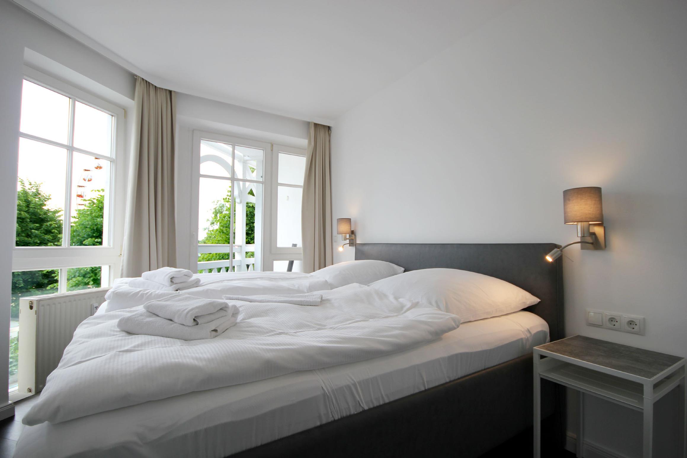 Im schönen Wohnraum finden Sie neben dem gemütlichem Schlafsofa, welches Platz für die 3. u. 4. Person bietet, einen Smart-TV unter anderem zur Nutzung der bekannten Streaming-Dienste, WLAN, ein SONOS Soundsystem mit Alexa-Funktion, einen kleinen Kleiderschrank sowie einen direkten Zugang zum großen Balkon. Im separaten Schlafzimmer mit bequemen Doppelbett, Kleiderschrank und Verdunklungsmöglichkeiten befindet sich zudem ein Zugang zum zweiten Balkon.[nbsp] Die neue und hochwertige Wohnküche mit Cerankochfeld, Geschirrspüler, Backofen, Mikrowelle, Kühlschrank, Kaffeemaschine, Wasserkocher, Toaster sowie diversen anderen Küchenhelfern lädt zum Kochen und gemeinsamen Essen ein. Darüber hinaus gibt es zwei SMART-TVs, WLAN und eine Stereoanlage. Ein Badezimmer mit Badewanne inklusive Duschvorrichtung und Waschbecken sowie eine separate Gäste-Toilette steht Ihnen zur Verfügung. Rundum eine sehr schöne Wohnung zum Abschalten vom Alltag.