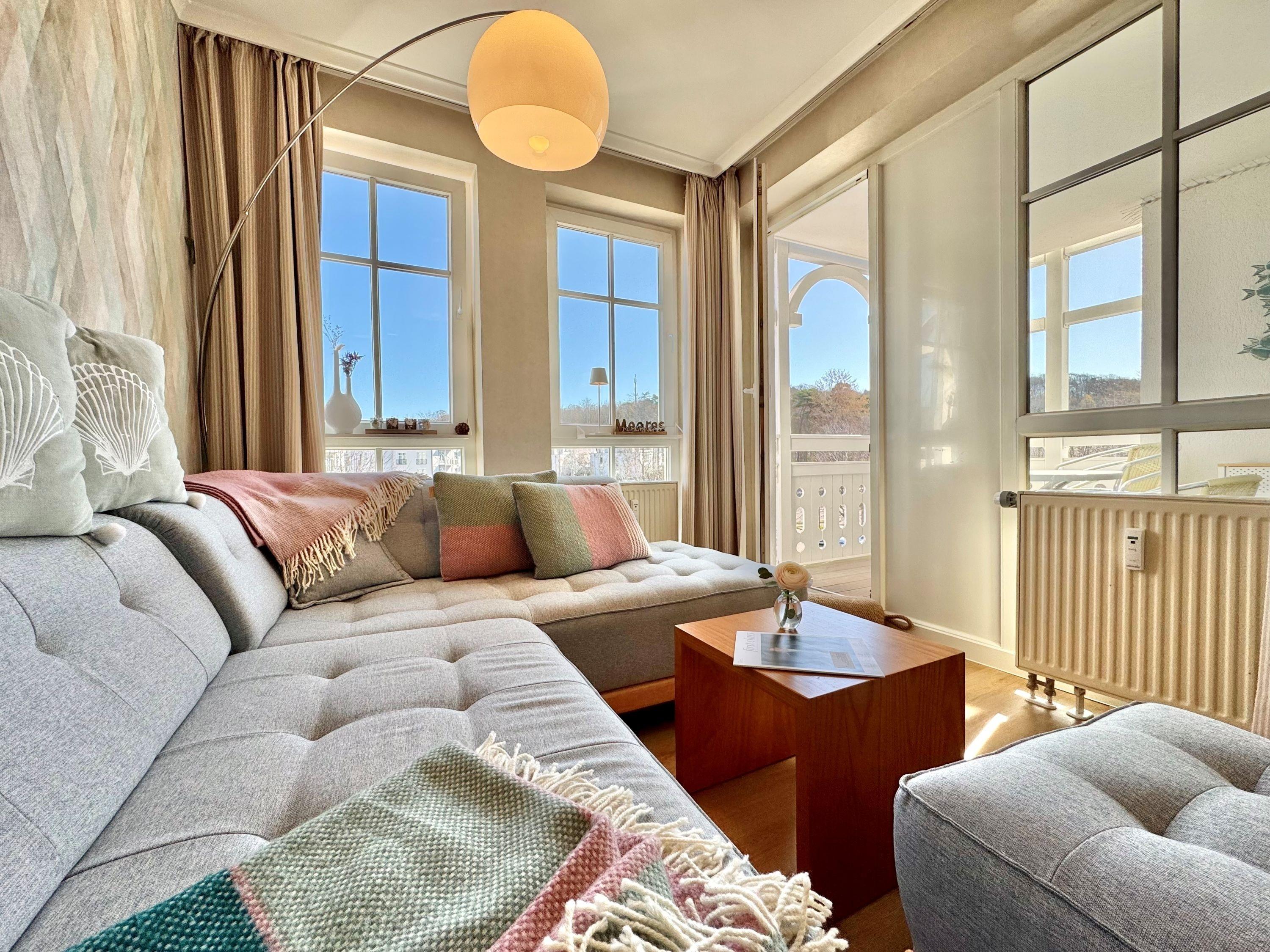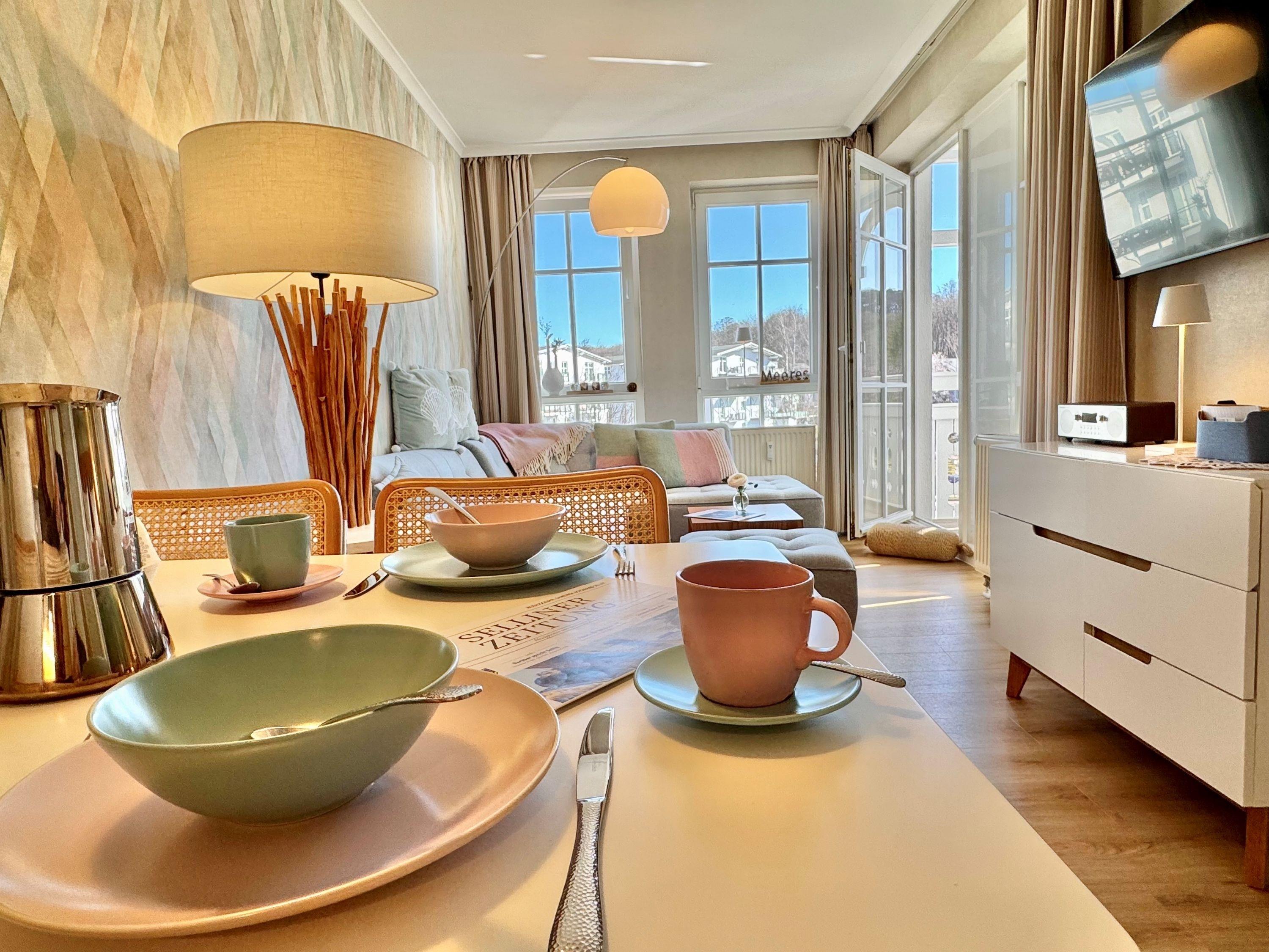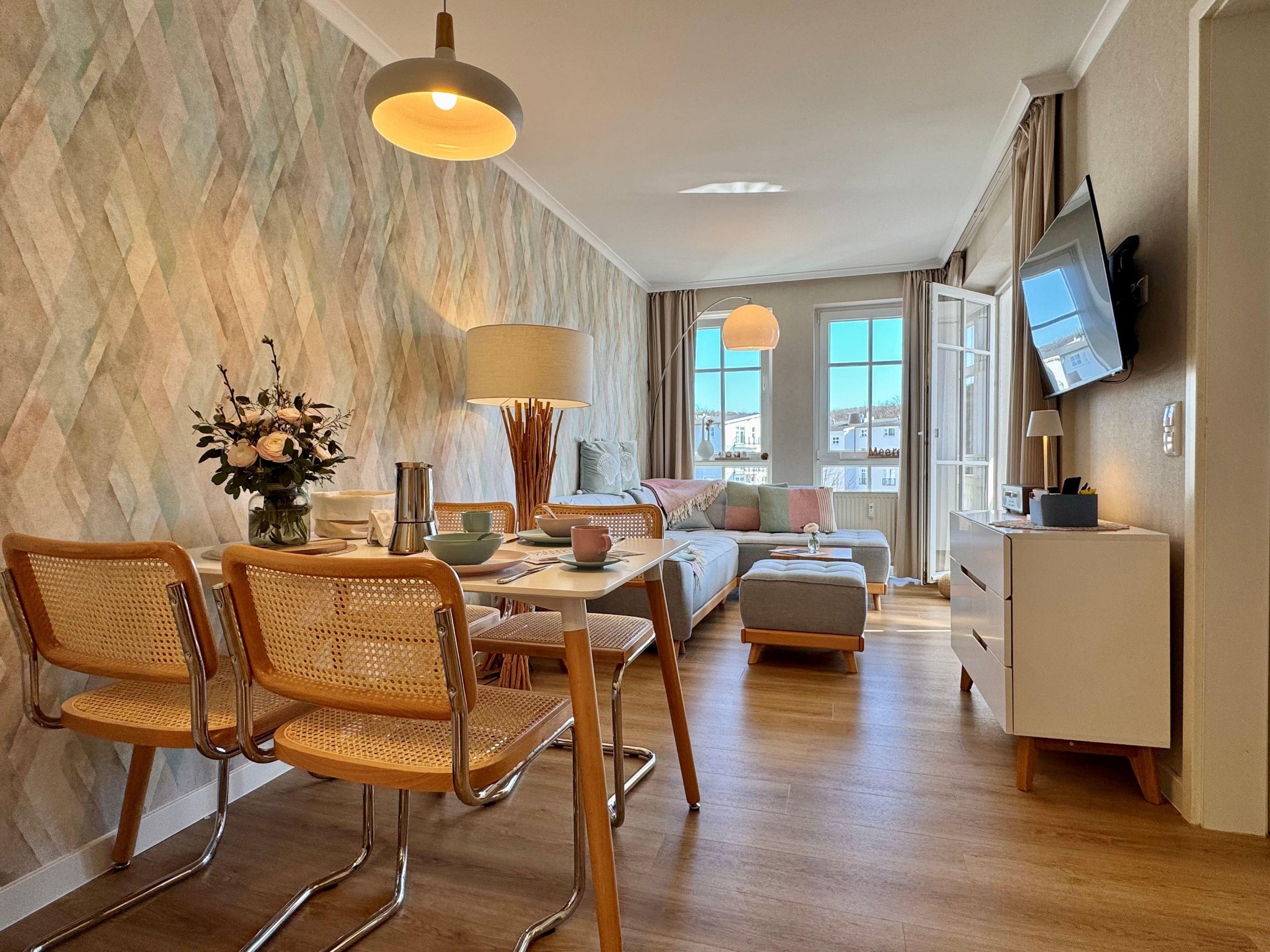 Moderne Ferienwohnung mit Balkon nahe Ostsee und Schwimmbad im Ostseebad Sellin auf der Insel Rügen.