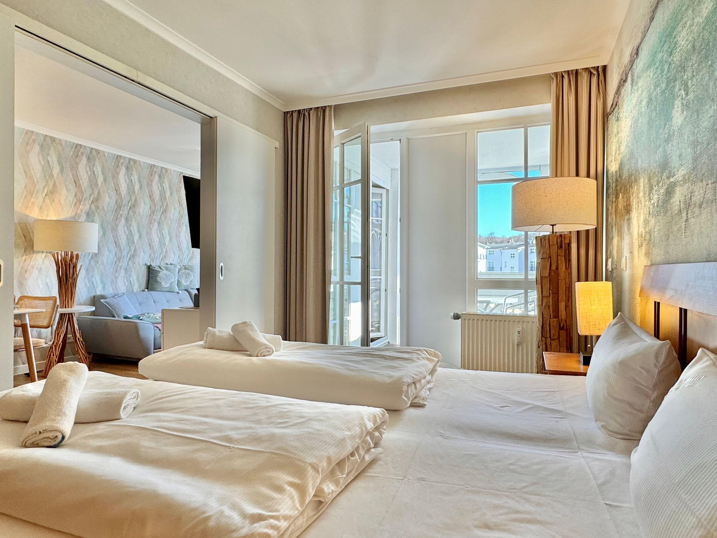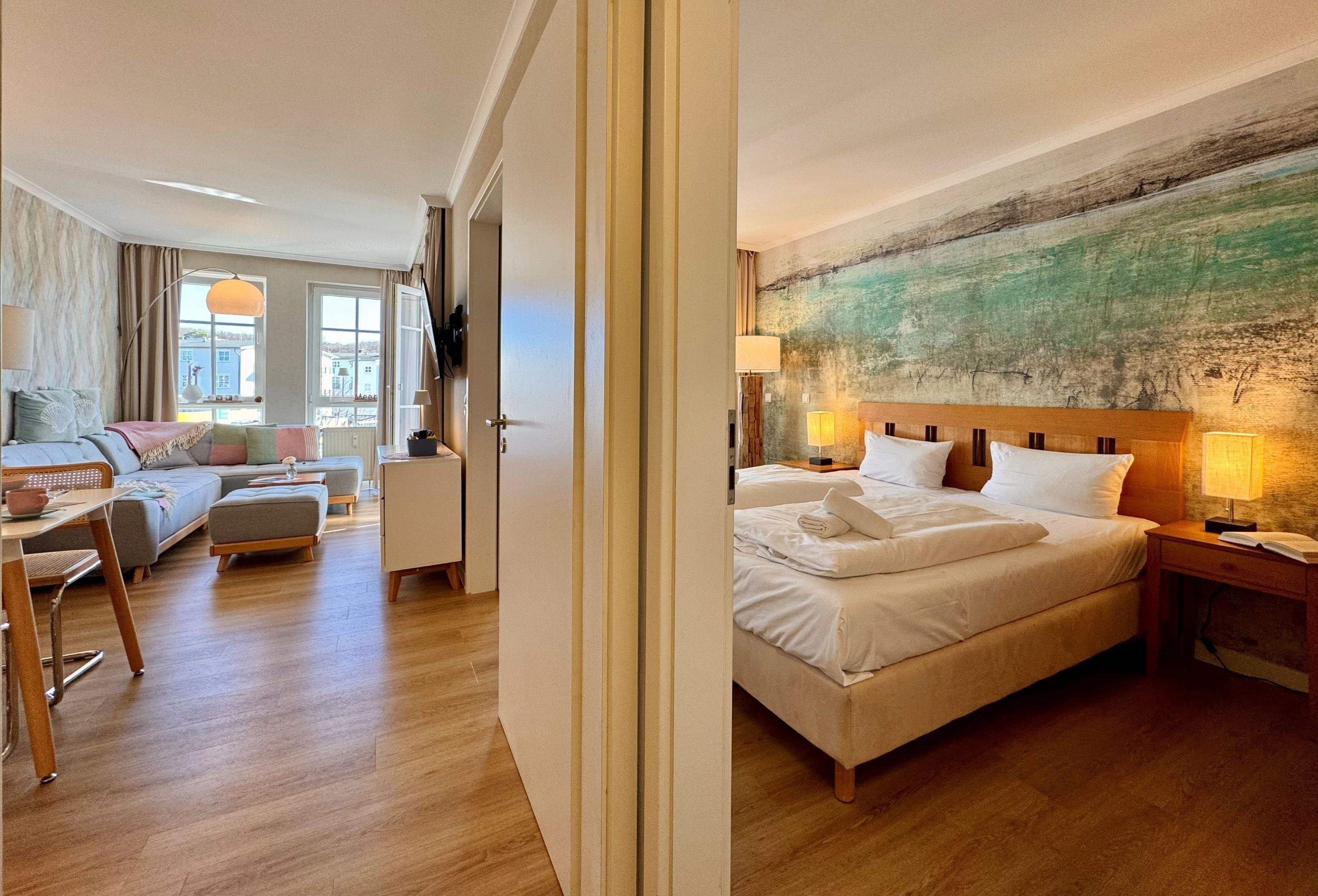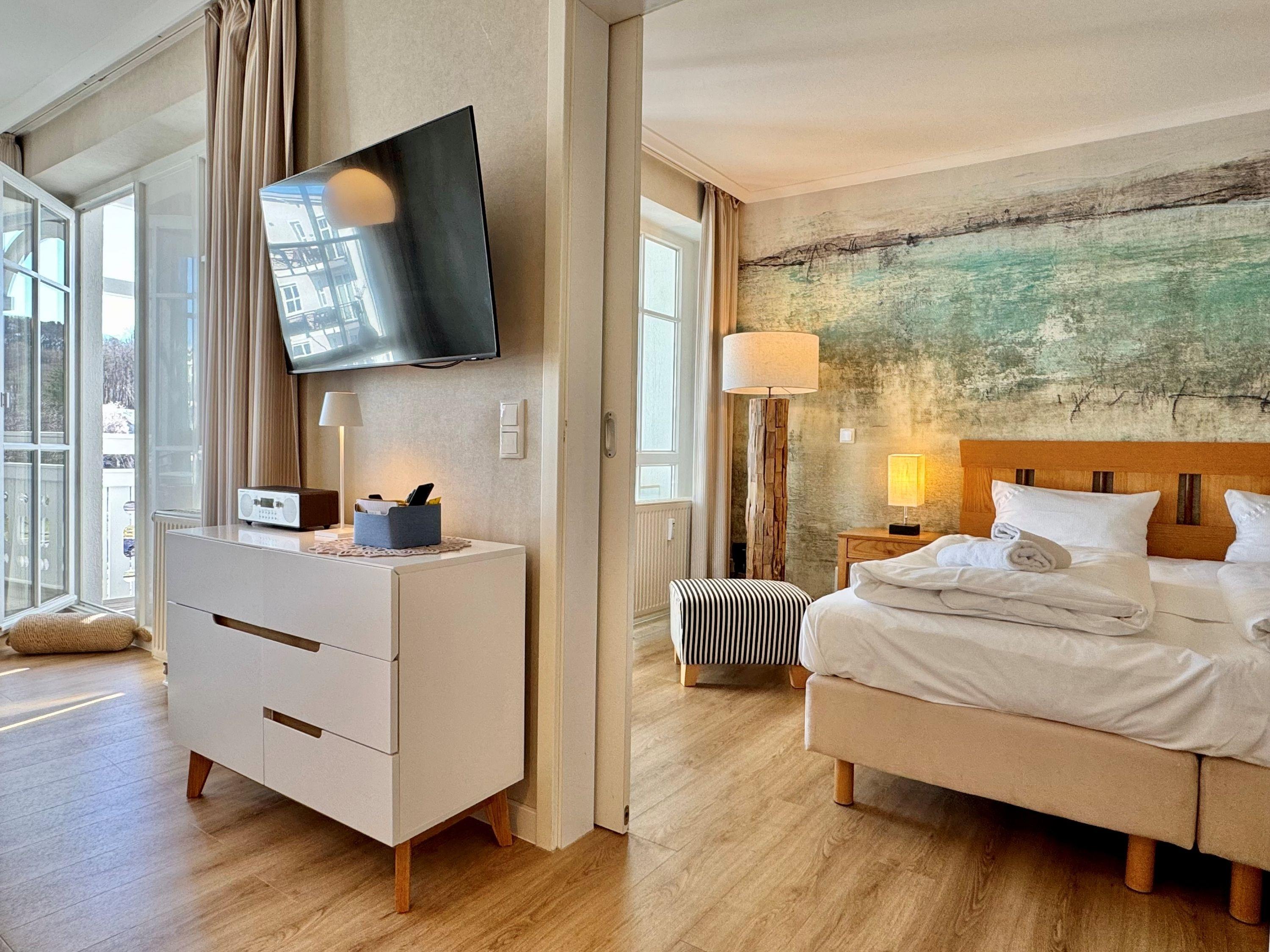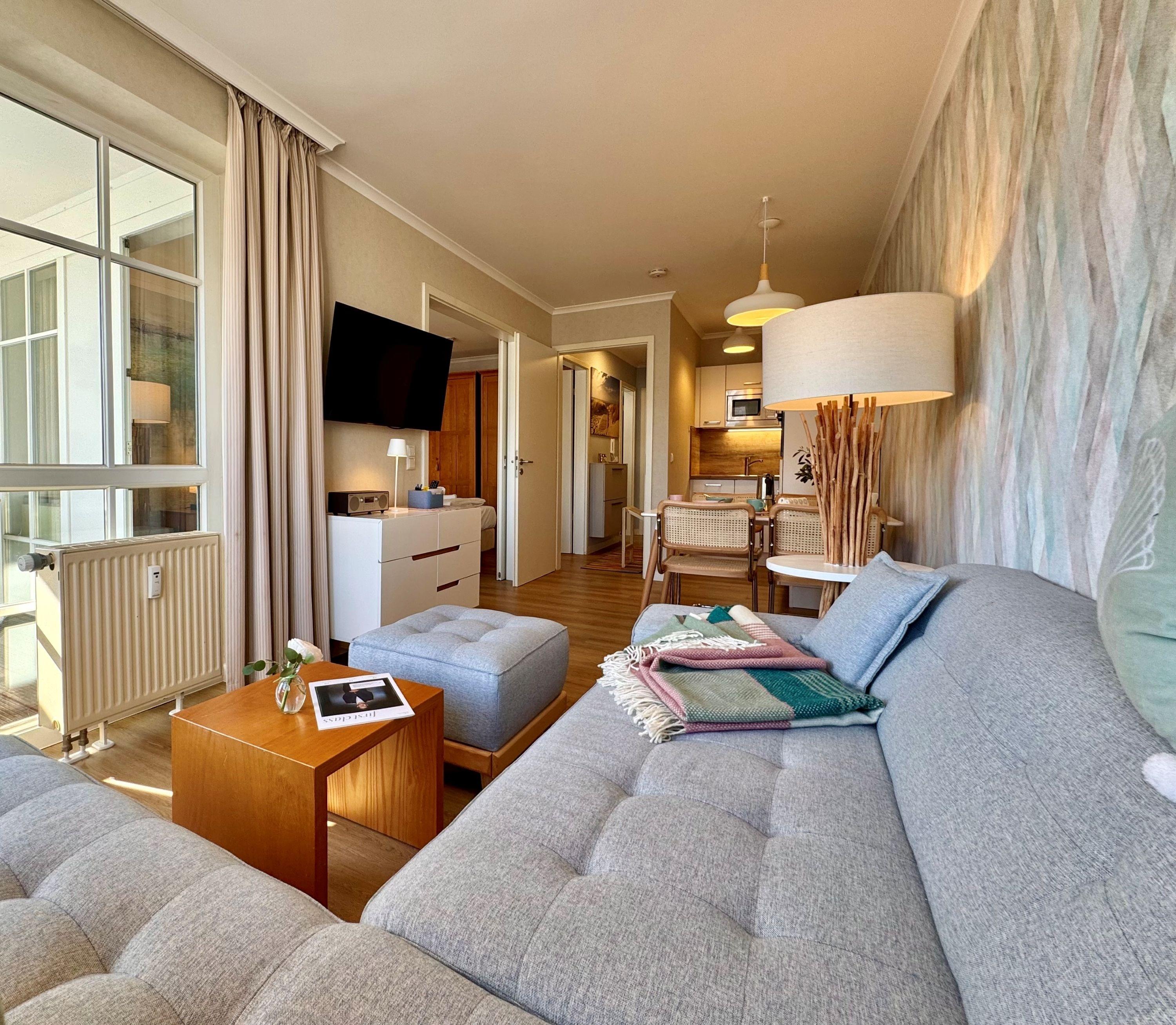 Moderne Ferienwohnung mit Balkon nahe Ostsee und Schwimmbad im Ostseebad Sellin auf der Insel Rügen.