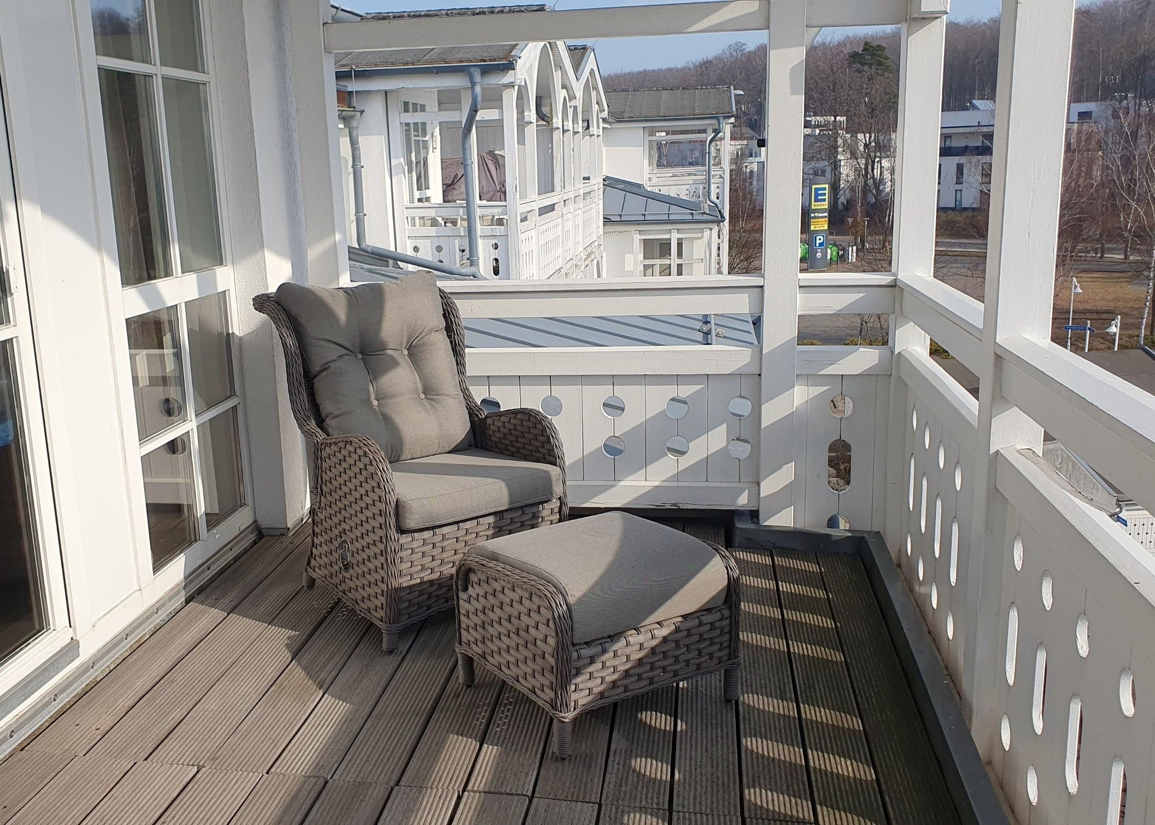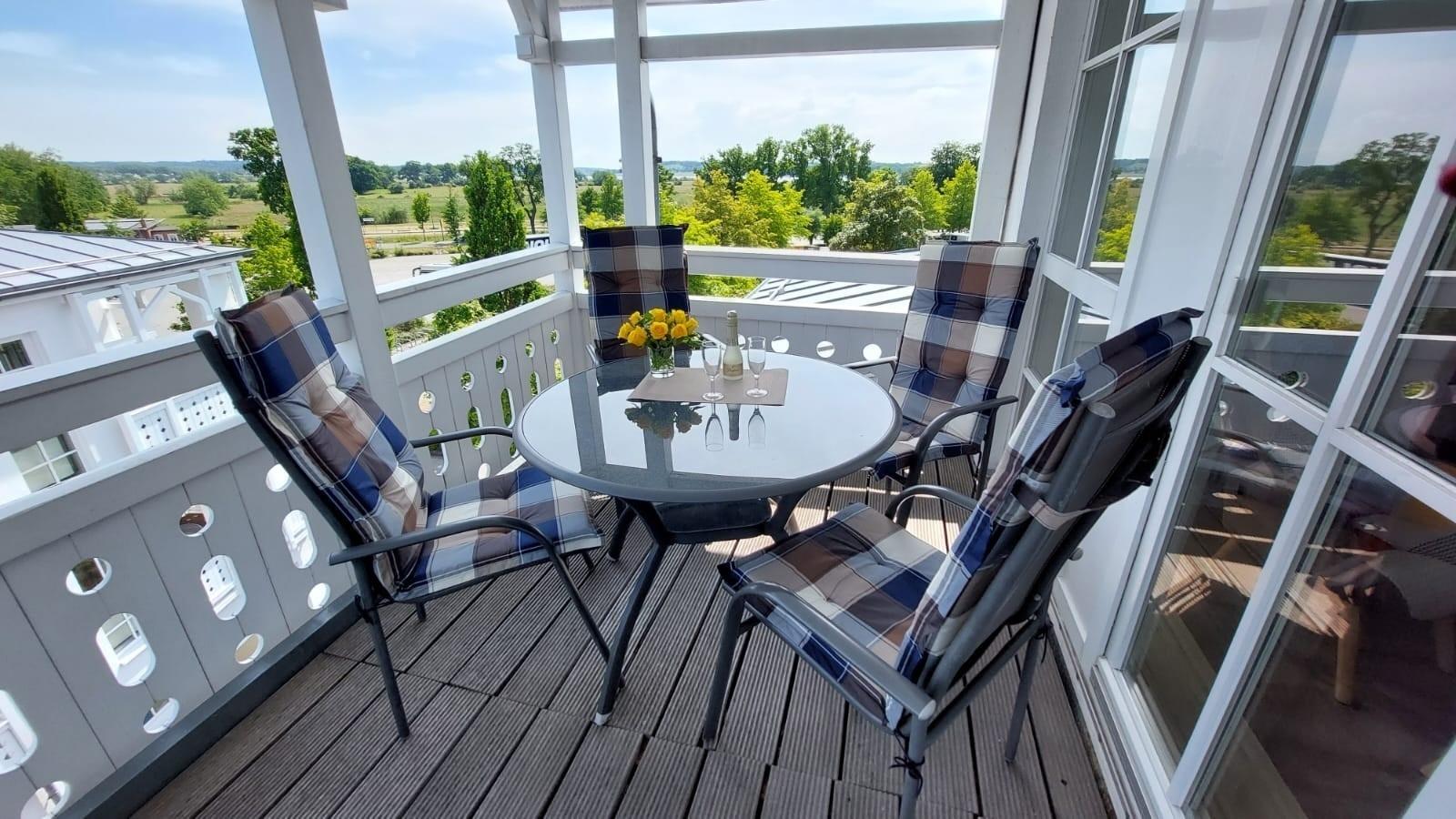 Nach einem erlebnisreichen Urlaubstag können Sie auf dem Balkon in Südostlage Platz nehmen. Der Ausblick und die Sitzgruppe sorgen hier für ein wunderbares Urlaubsgefühl. Im Nichtraucher-Apartment seine keine Hunde gestattet.