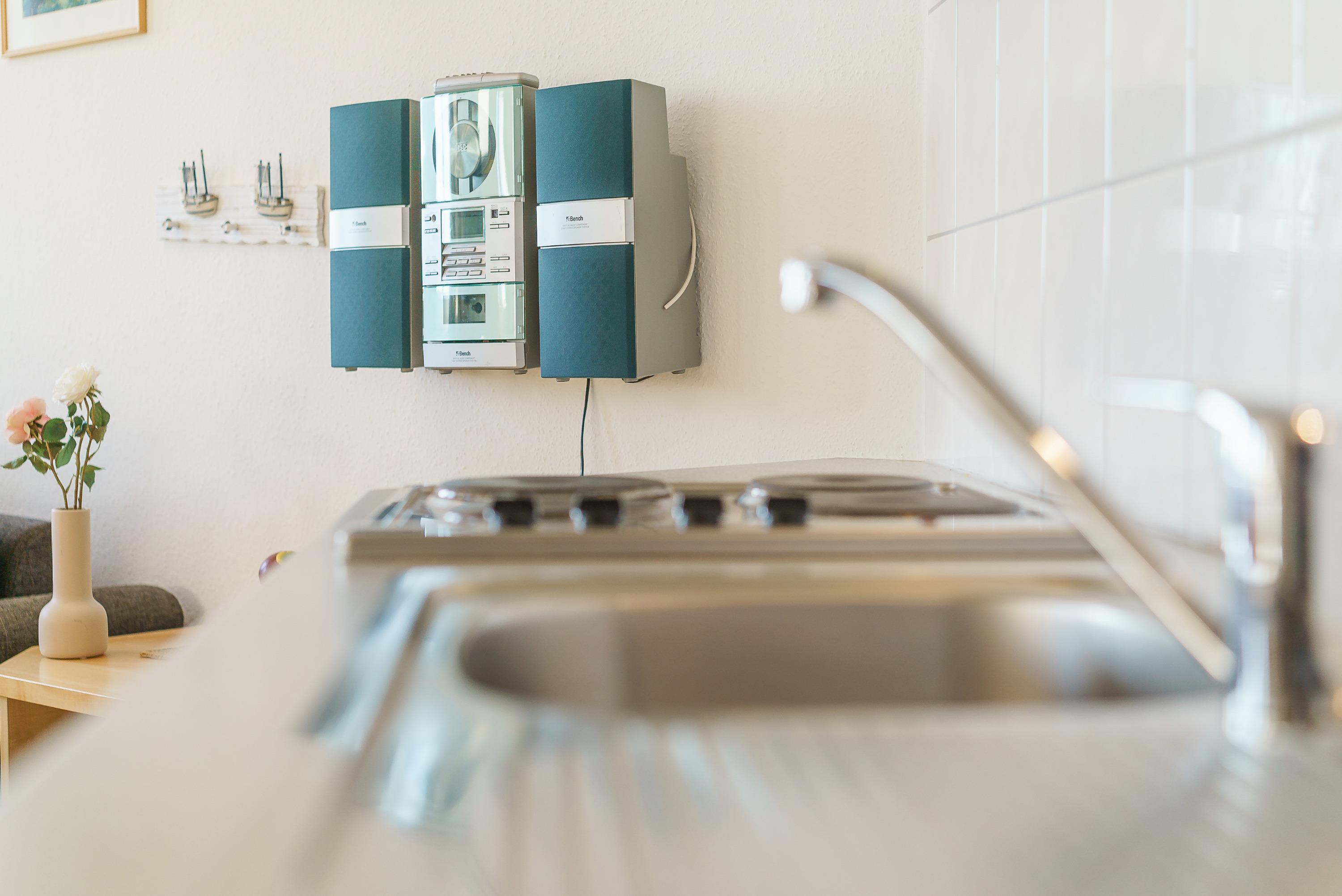Die Ferienwohnung verfügt über kostenfreies WLAN und die Erstausstattung an Bettwäsche ist inklusive. Der kombinierte Wohn-/Schlafbereich verfügt über ein Doppelbett. Darüber hinaus verfügt die Ferienwohnung über ein Bad mit Dusche/WC. Die voll ausgestattete Pantry mit Mikrowelle, Kaffeemaschine und Toaster lässt keine Wünsche offen. Ein Fernseher inkl. 3 Sky-Sender rundet die gute Einrichtung ab. Im Nichtraucher-Apartment sind Haustiere nicht gestattet.