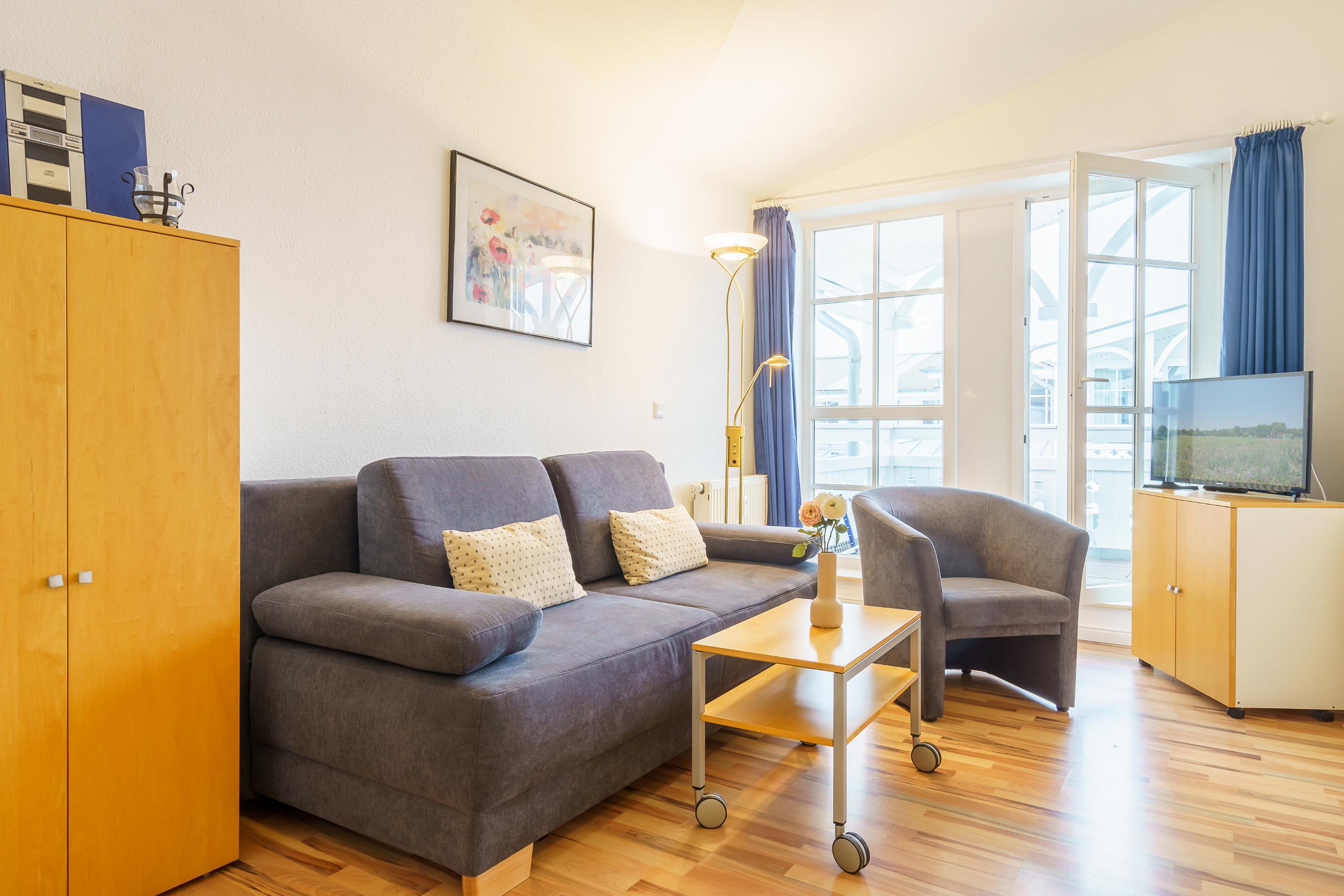 Nach einem erlebnisreichen Urlaubstag können Sie auf dem Balkon in Nordwestlage Platz nehmen. Der Ausblick und die Sitzgruppe sorgen hier für ein wunderbares Urlaubsgefühl. Im Nichtraucher-Apartment sind keine Haustiere gestattet.