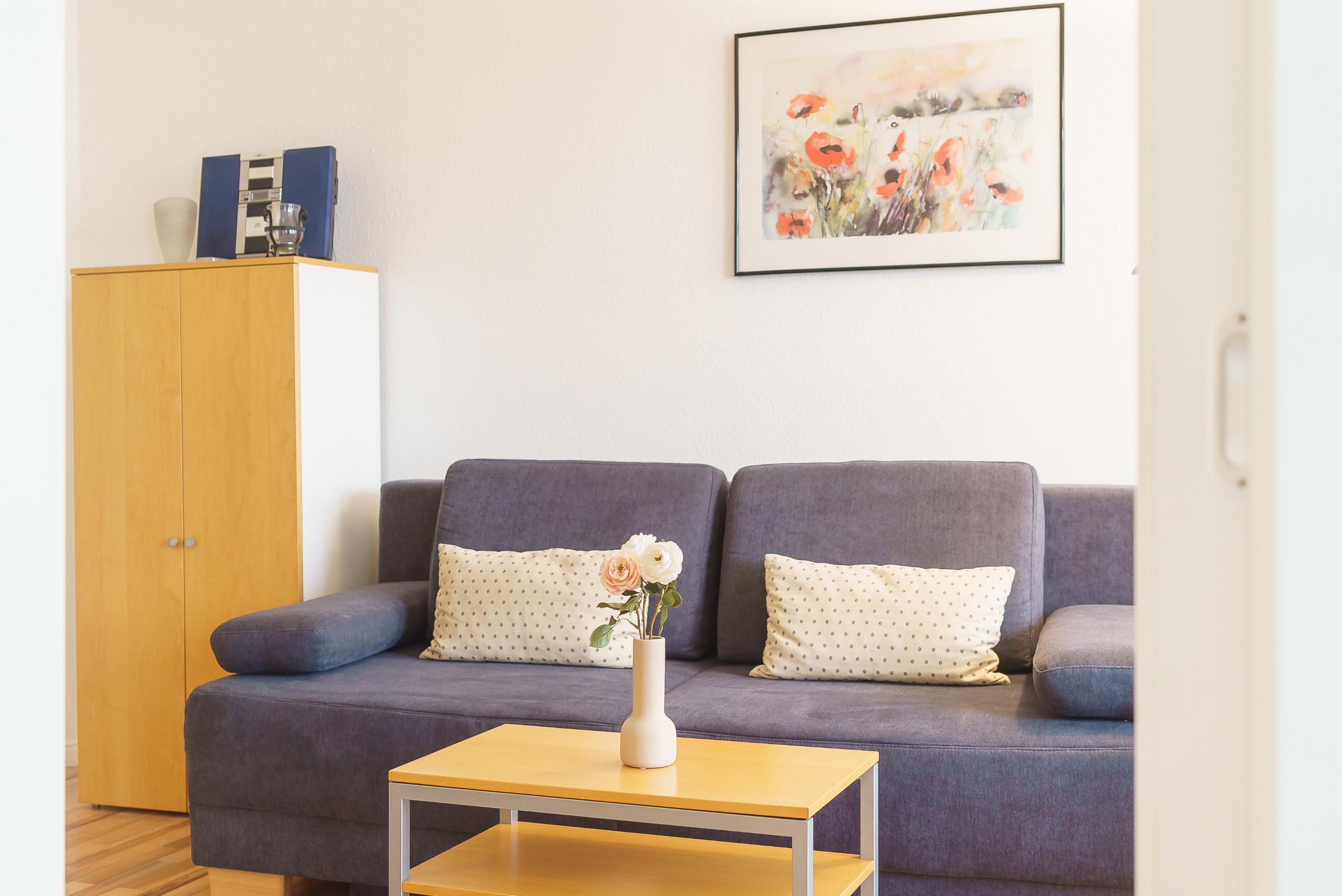 Die Ferienwohnung verfügt über kostenfreies WLAN und die Erstausstattung an Bettwäsche ist inklusive. Das Schlafzimmer mit Verdunklung verfügt über ein Doppelbett, im Wohnzimmer befindet sich zusätzlich eine Doppelschlafcouch. Darüber hinaus verfügt die Ferienwohnung über ein Bad mit Badewanne/WC. Die voll ausgestattete, offene Küche mit Backofen, Mikrowelle, Kaffeemaschine und Toaster lässt keine Wünsche offen. Ein Fernseher inkl. 3 Sky-Sender rundet die Einrichtung ab.