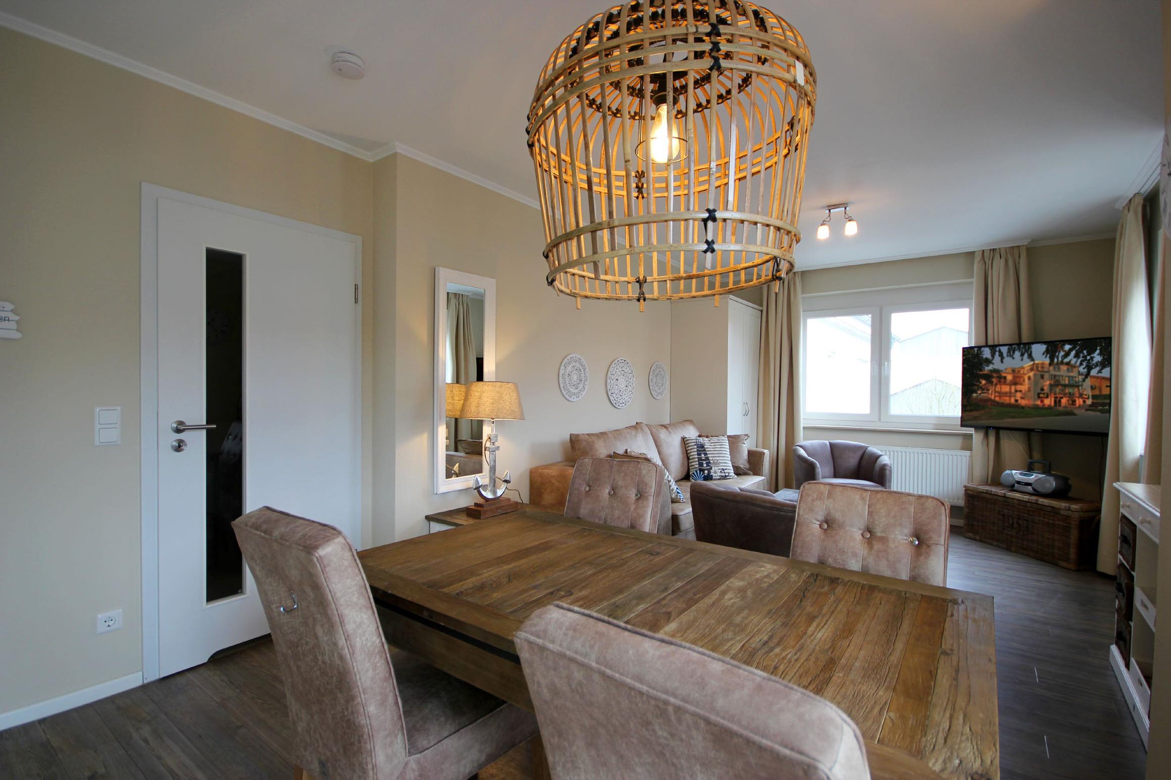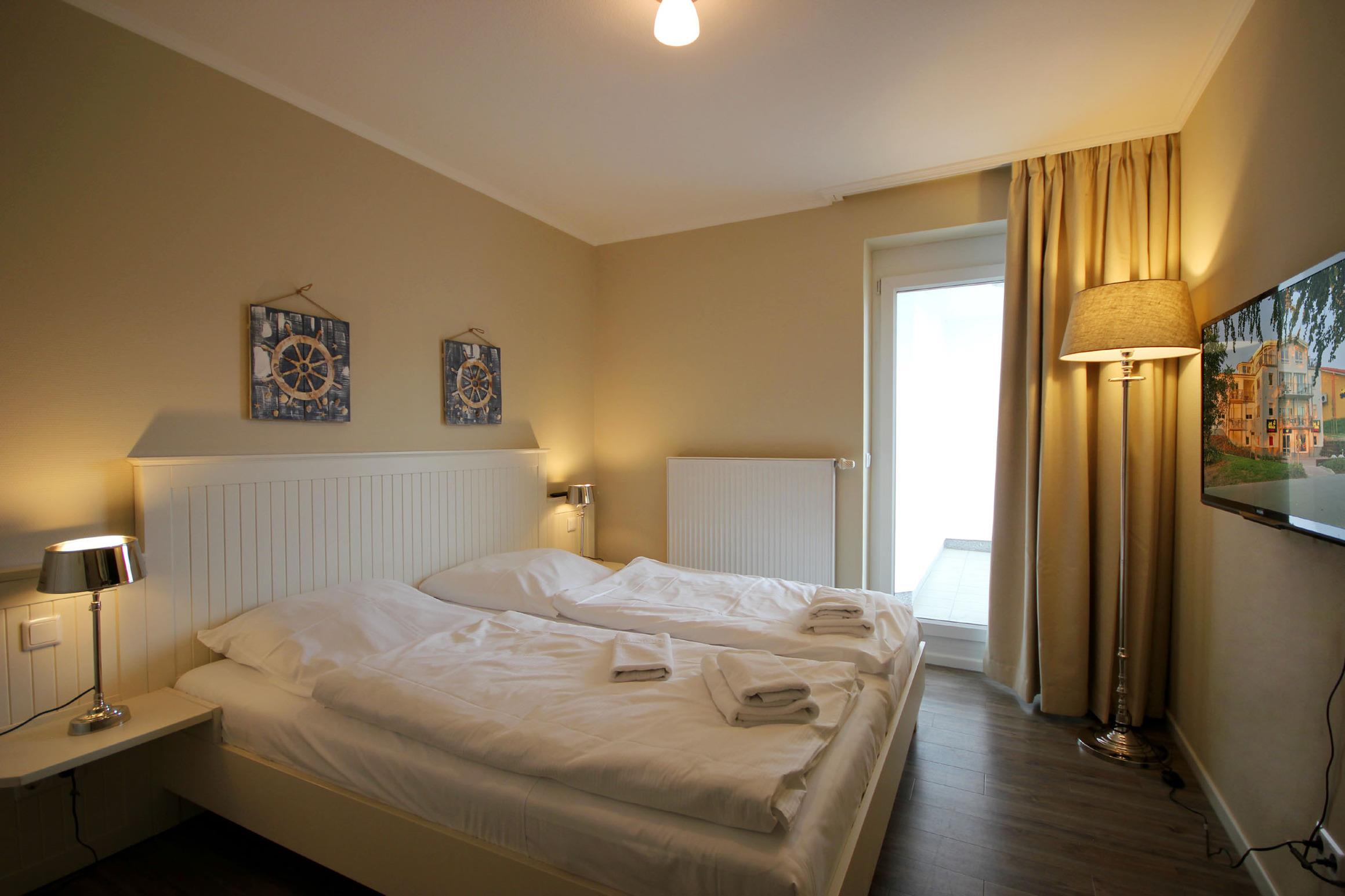 Ihre 2-Zimmer Ferienwohnung 65RB7 Nixe befindet sich im 1. Obergeschoss und ist ca. 47 qm groß. Die Nichtraucherwohnung verfügt über 2 Balkone in Richtung Osten und ist für bis zu 4 Personen gut geeignet. Neben dem gemütlichen Wohnbereich mit Zugang zum Balkon, gehört eine Sitzecke mit Schlaffunktion, ein Essbereich, Flachbild TV sowie WLAN. Im Schlafzimmer erwartet Sie ein Doppelbett, ein zusätzlicher TV, ein Kleiderschrank sowie ein weiterer Balkon. Zudem können Sie eine voll ausgestattete und im Wohnbereich integrierte Küchenzeile mit Geschirrspüler, Backofen, Wasserkocher, Toaster, Kaffeemaschine sowie umfangreiches Küchengeschirr nutzen. Das moderne Badezimmer erwartet Sie mit Waschtisch, WC und Dusche. Einen Parkplatz sowie eine Fahrradunterstellmöglichkeit befinden sich direkt am Objekt.