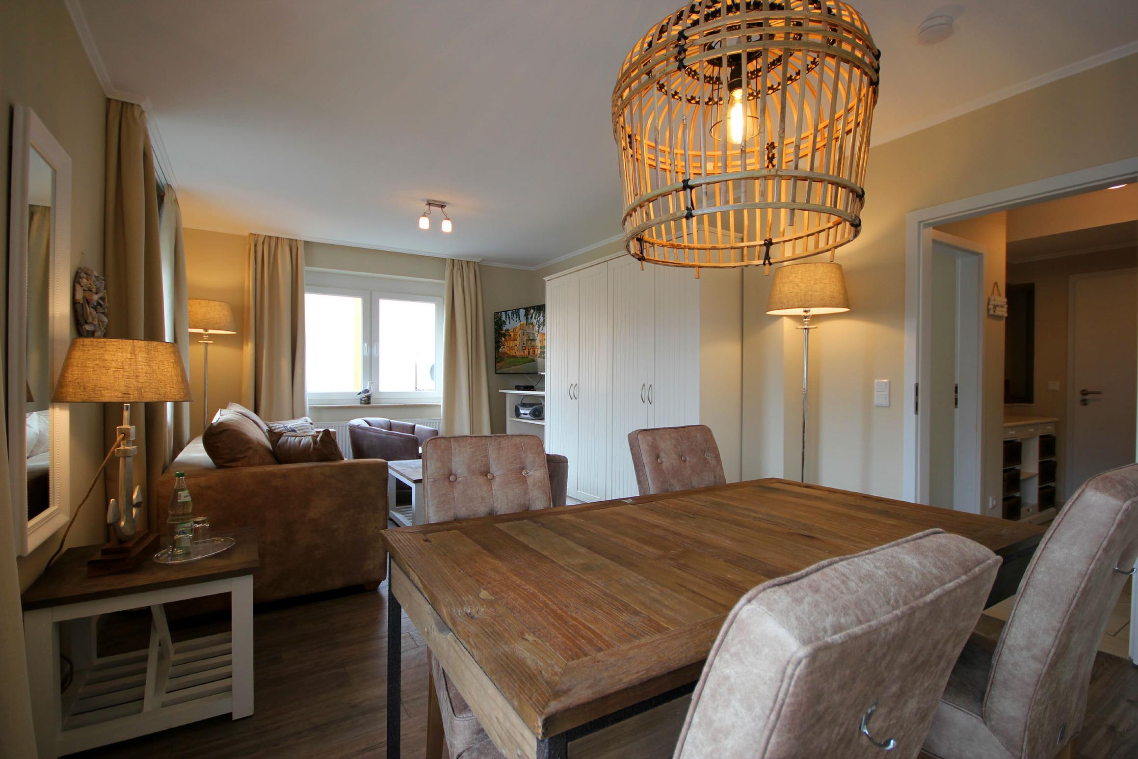 Ihre 2-Zimmer Ferienwohnung 65RB8 Seestern befindet sich im 1. Obergeschoss und ist ca. 48 qm groß. Die Nichtraucherwohnung verfügt über einen Balkon in Richtung Osten und ist für bis zu 4 Personen gut geeignet. Neben dem gemütlichen Wohnbereich mit Zugang zum Balkon, gehört eine Sitzecke mit Schlaffunktion, ein Essbereich, Flachbild TV sowie WLAN. Im Schlafzimmer erwartet Sie ein Doppelbett, ein zusätzlicher TV sowie ein Kleiderschrank. Zudem können Sie eine voll ausgestattete und im Wohnbereich integrierte Küchenzeile mit Geschirrspüler, Backofen, Wasserkocher, Toaster, Kaffeemaschine sowie umfangreiches Küchengeschirr nutzen. Das moderne Badezimmer erwartet Sie mit Waschtisch, WC und Dusche. Einen Parkplatz sowie eine Fahrradunterstellmöglichkeit befinden sich direkt am Objekt.