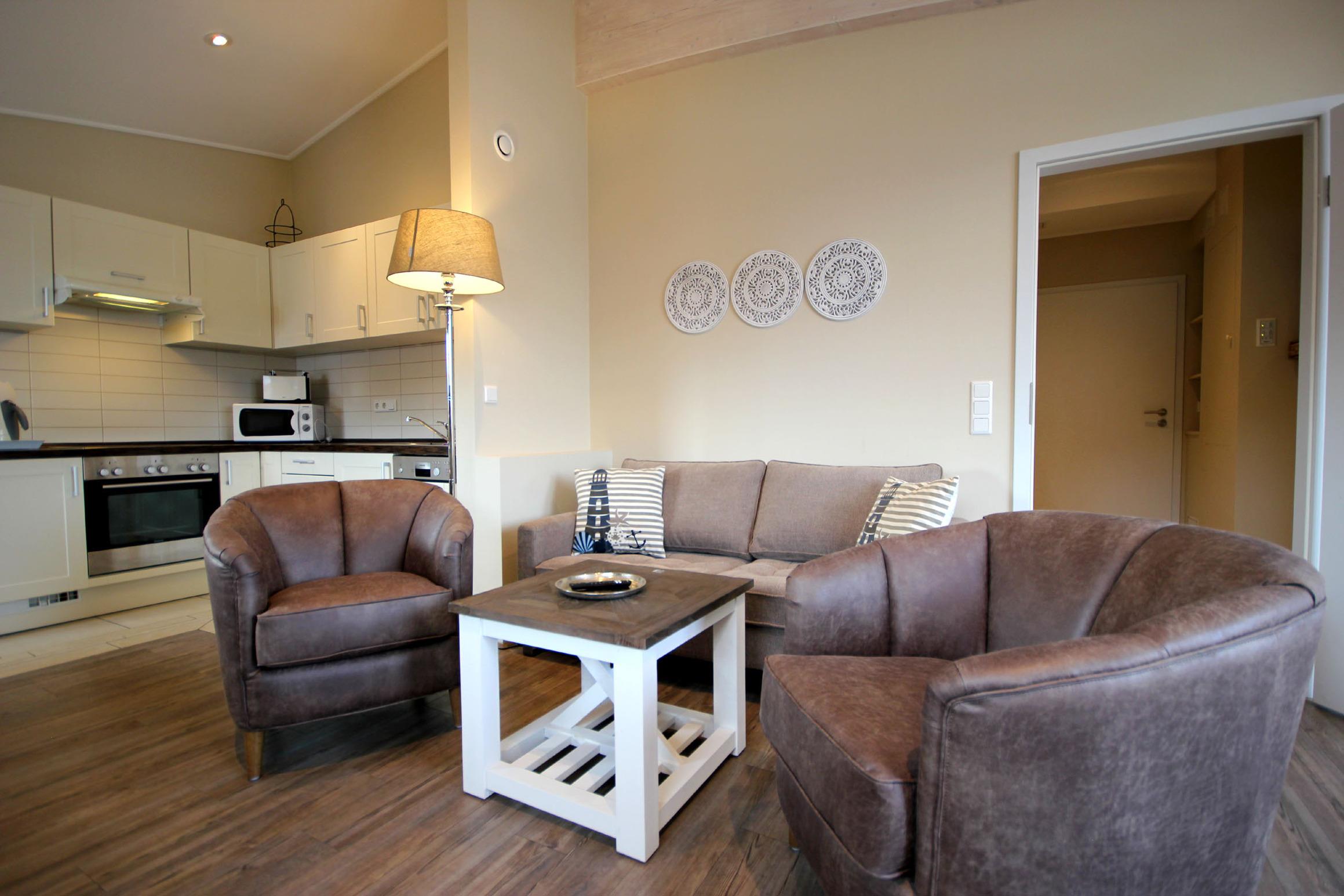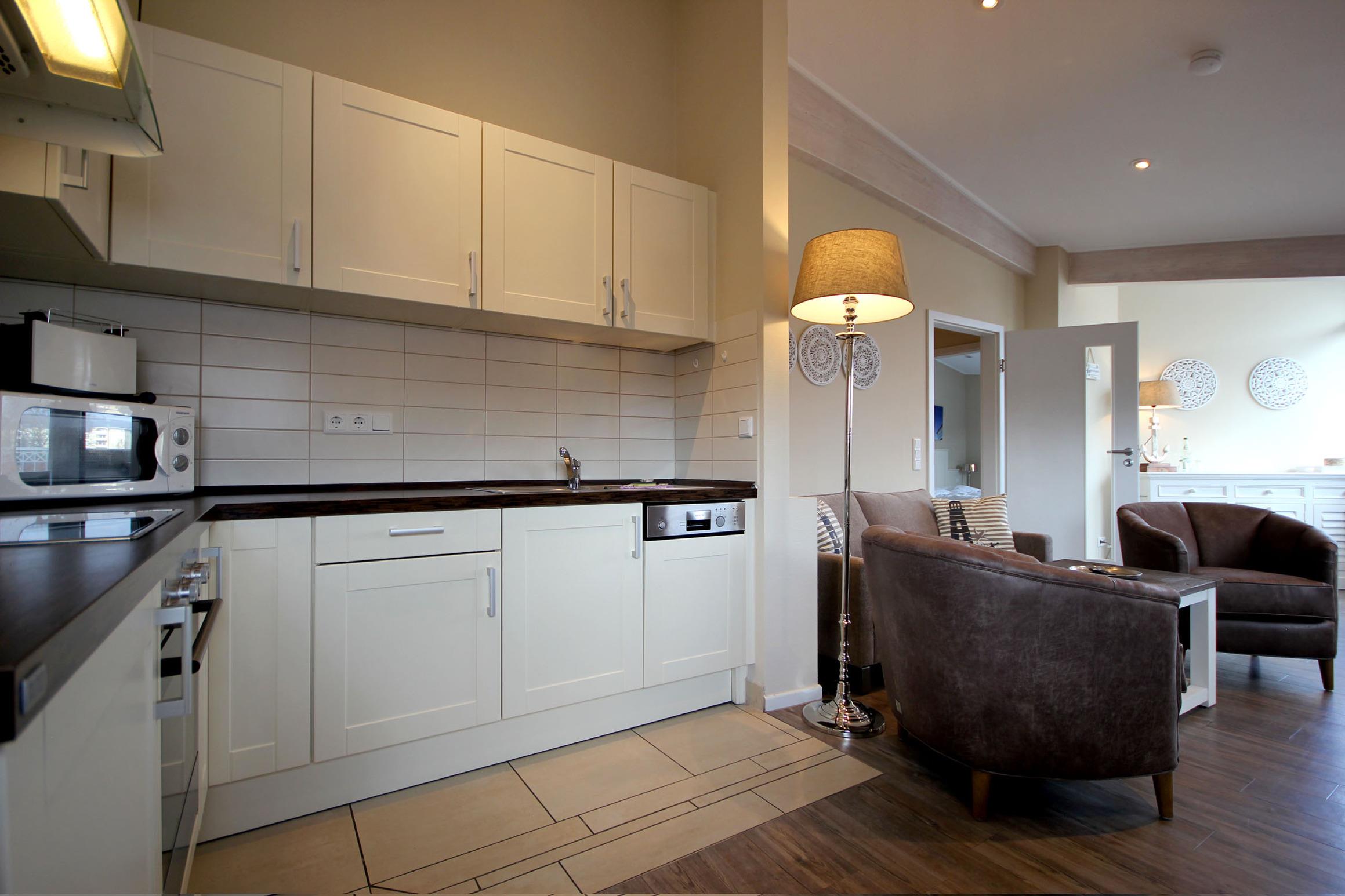 Ihre 2-Zimmer Ferienwohnung 65RB11 Sonne befindet sich im 2. Obergeschoss und ist ca. 50 qm groß. Die Nichtraucherwohnung verfügt über einen Balkon in Richtung Osten und ist für bis zu 2 Personen gut geeignet. Neben dem gemütlichen Wohnbereich mit Zugang zum Balkon, gehört eine Sitzecke, ein Essbereich, Flachbild TV sowie WLAN. Im Schlafzimmer erwartet Sie ein Doppelbett, ein zusätzlicher TV, ein Kleiderschrank sowie ein weiterer Zugang zum Balkon. Zudem können Sie eine voll ausgestattete und im Wohnbereich integrierte Küchenzeile mit Geschirrspüler, Backofen, Wasserkocher, Toaster, Kaffeemaschine sowie umfangreiches Küchengeschirr nutzen. Das moderne Badezimmer erwartet Sie mit Waschtisch, WC und Dusche. Einen Parkplatz sowie eine Fahrradunterstellmöglichkeit befinden sich direkt am Objekt.