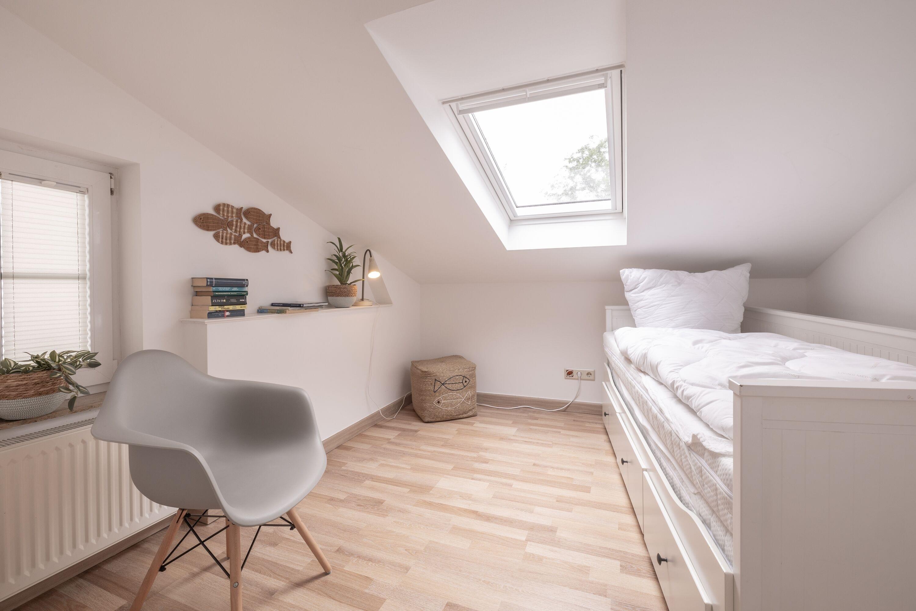 Charmante Ferienwohnung Wind & Wolke in Sellin mit romantischen Dachschrägen und moderner Ausstattung.