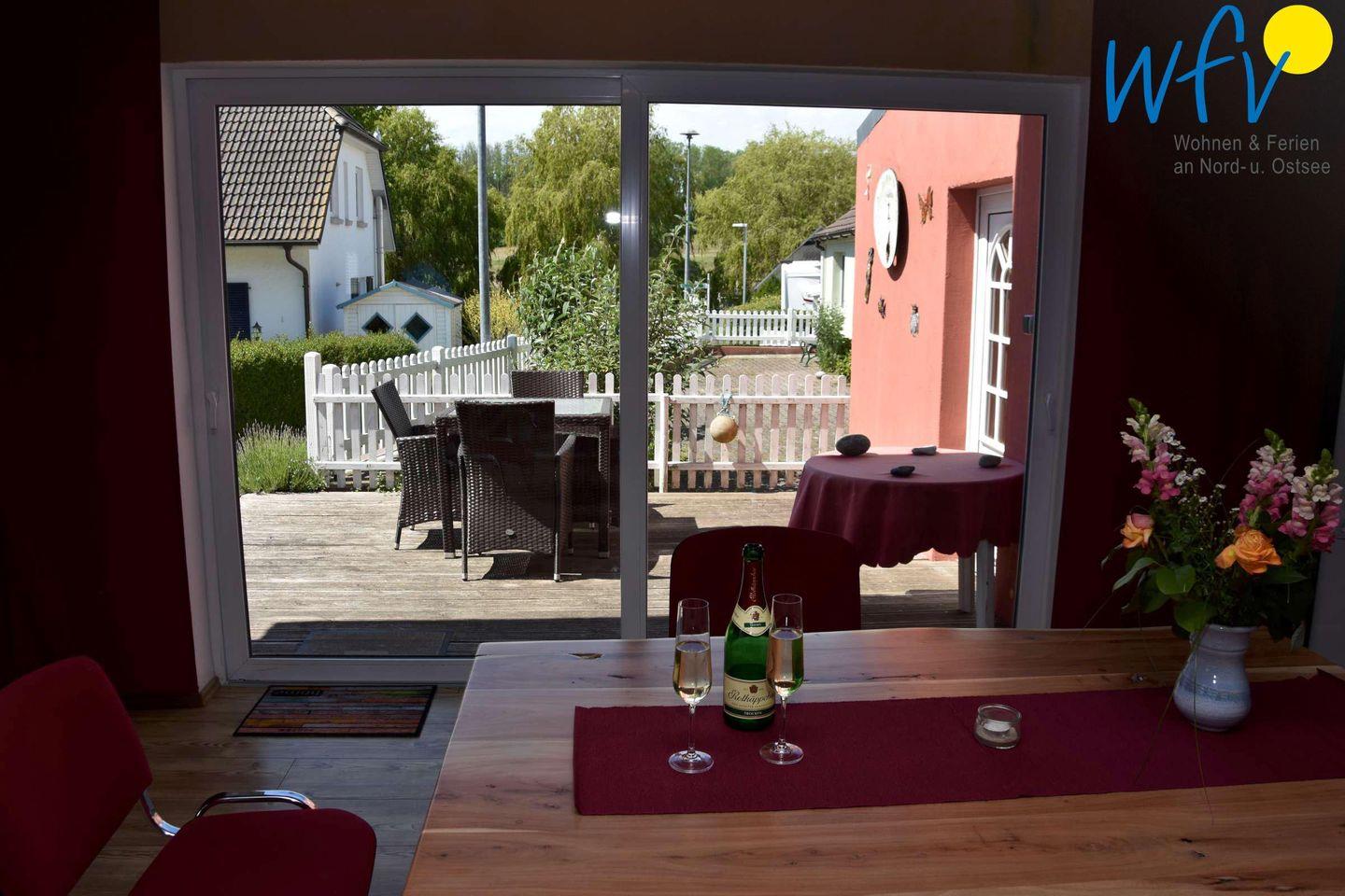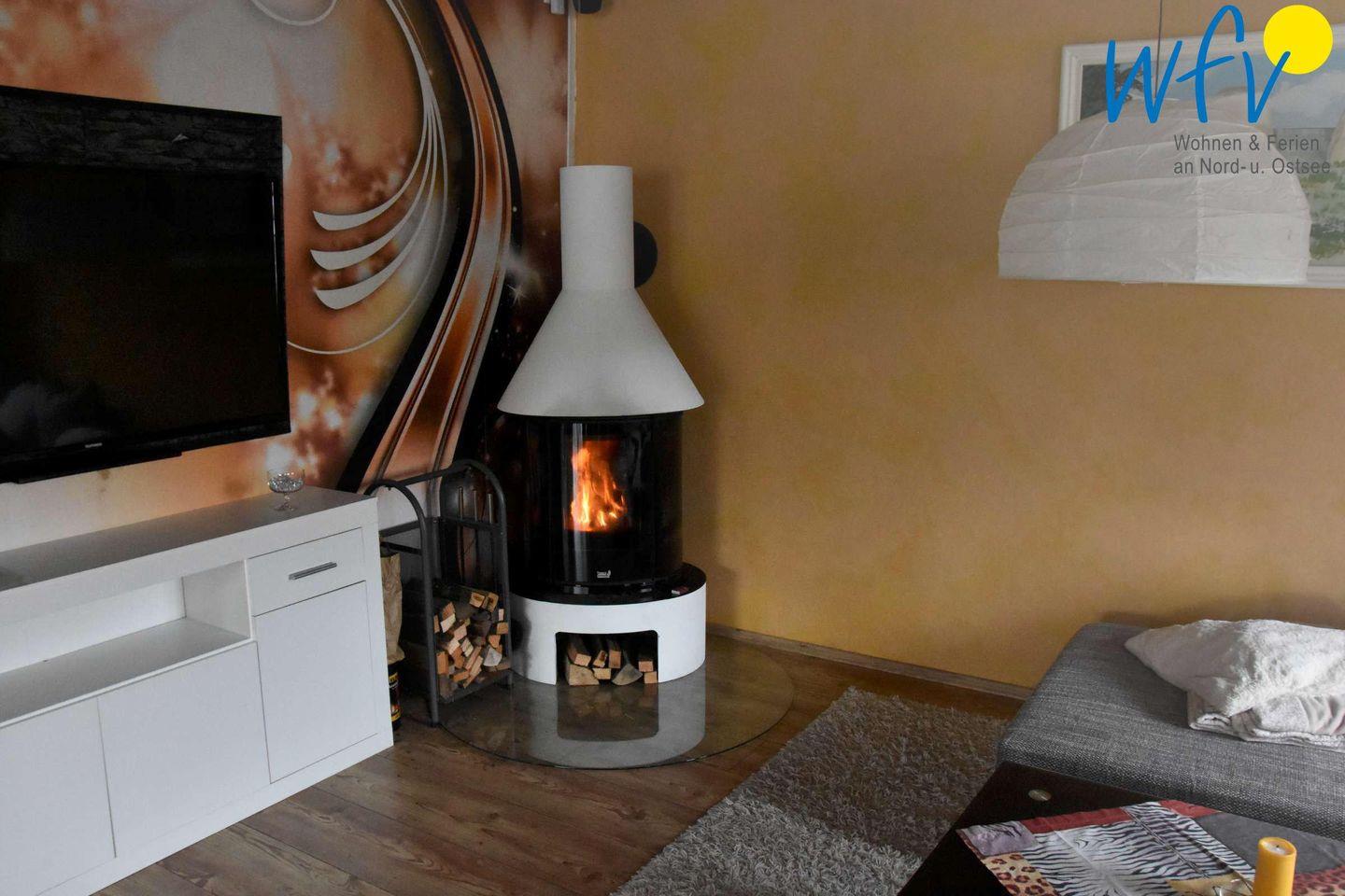 Der große Wohnraum (EG) mit Kaminofen und Essplatz lädt zu entspannten Stunden ein. Zusammensitzen, klönen oder einen guten Film schauen - hier bleiben keine Wünsche offen. Zum Surfen vom Smartphone aus empfangen Sie freies WLAN. Dazu können Sie sich auch an den kleinen Schreibtisch zurückzuziehen.