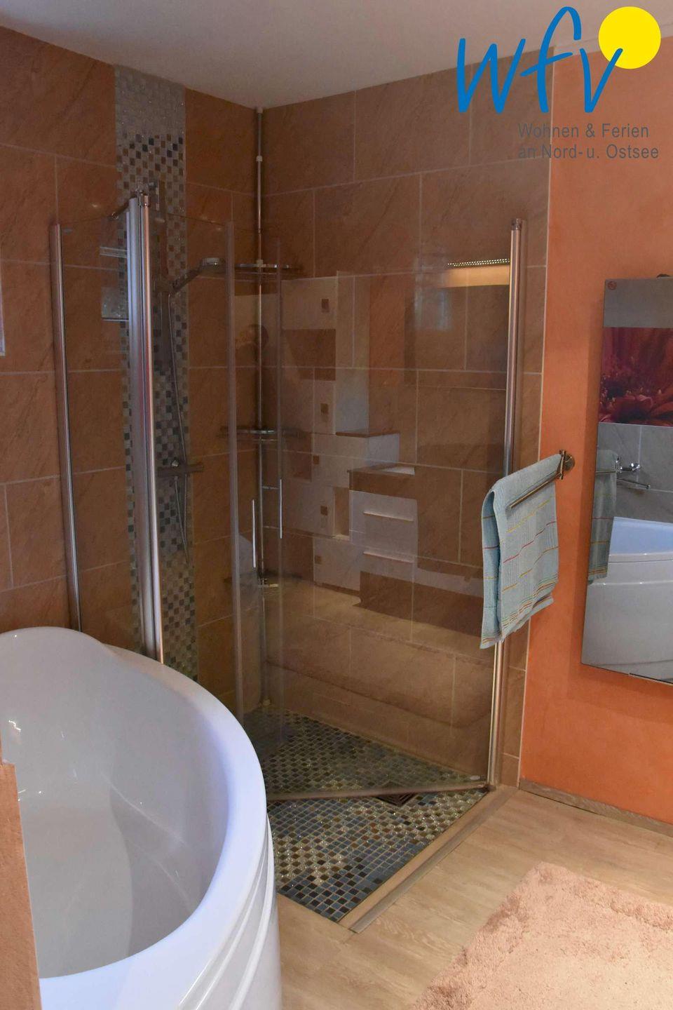 Bad EG: Eckbadewanne, Dusche, WC, 2 Waschbecken, Haartrockner
