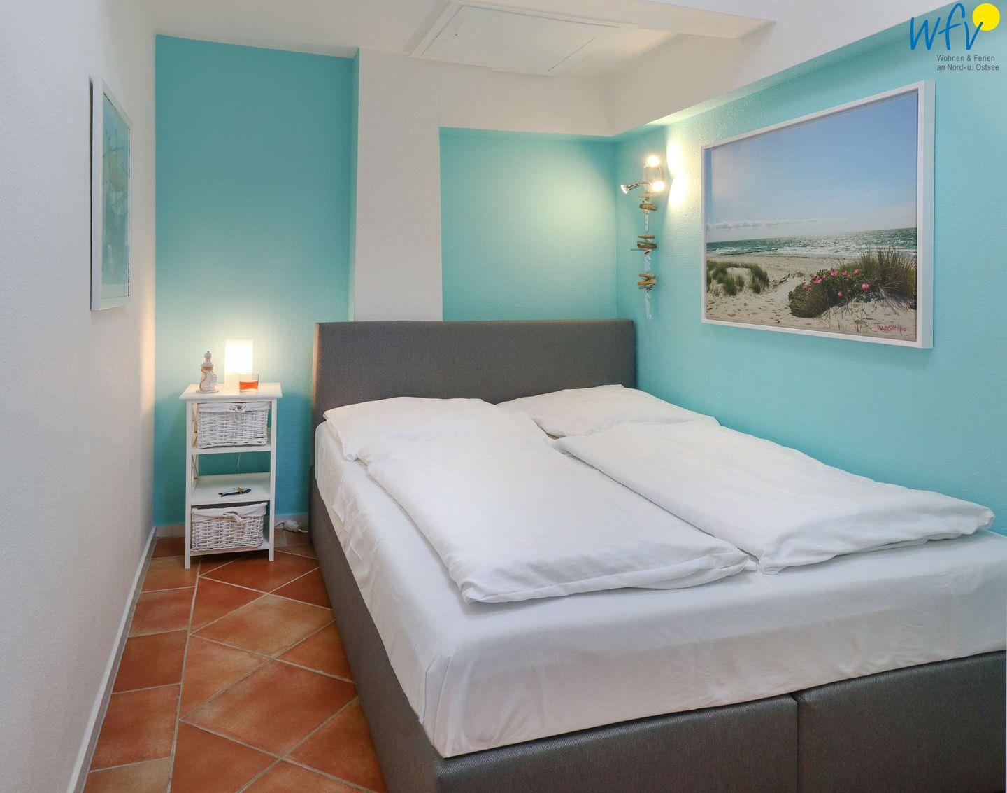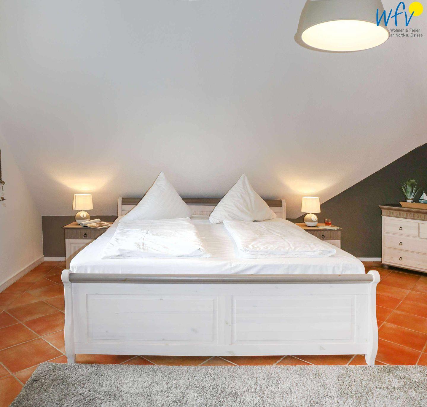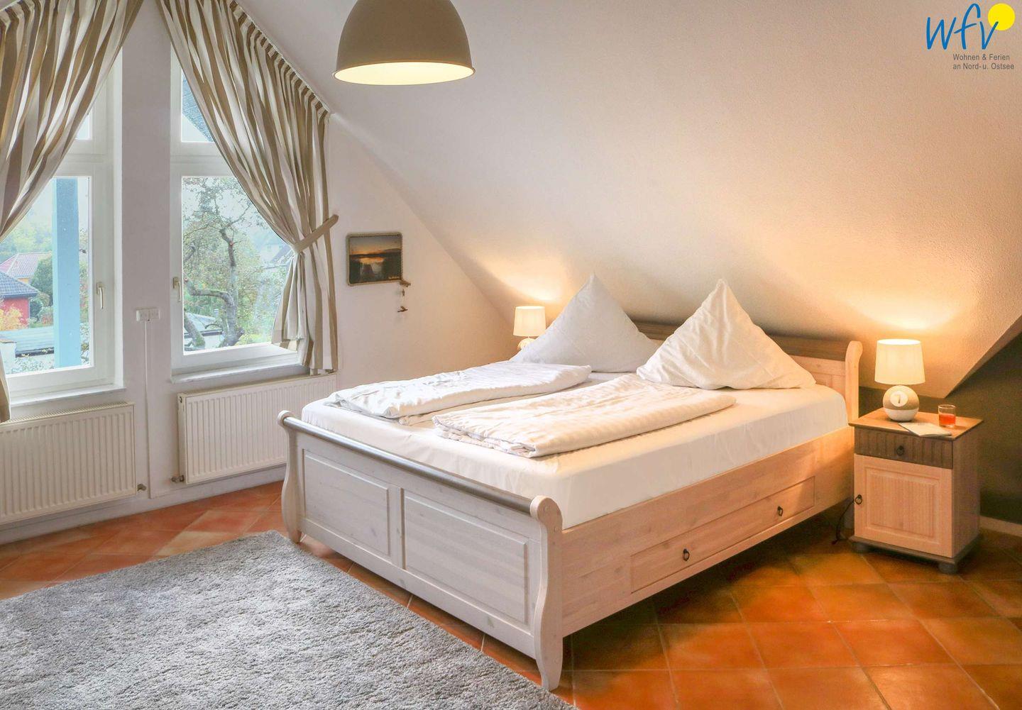 Wenn die Sonne auf Rügen untergeht und es Zeit zum Ruhen wird, können Sie es sich in den zwei separaten Schlafzimmern im Obergeschoss gemütlich machen. Das eine separate Schlafzimmer überzeugt mit einem komfortablen Doppelbett (180 x 200 cm) sowie mit einem geräumigen Kleiderschrank. Das zweite separate Schlafzimmer mit einem komfortablen Einzelbett bzw. kleinem Doppelbett (140 x 200 m).