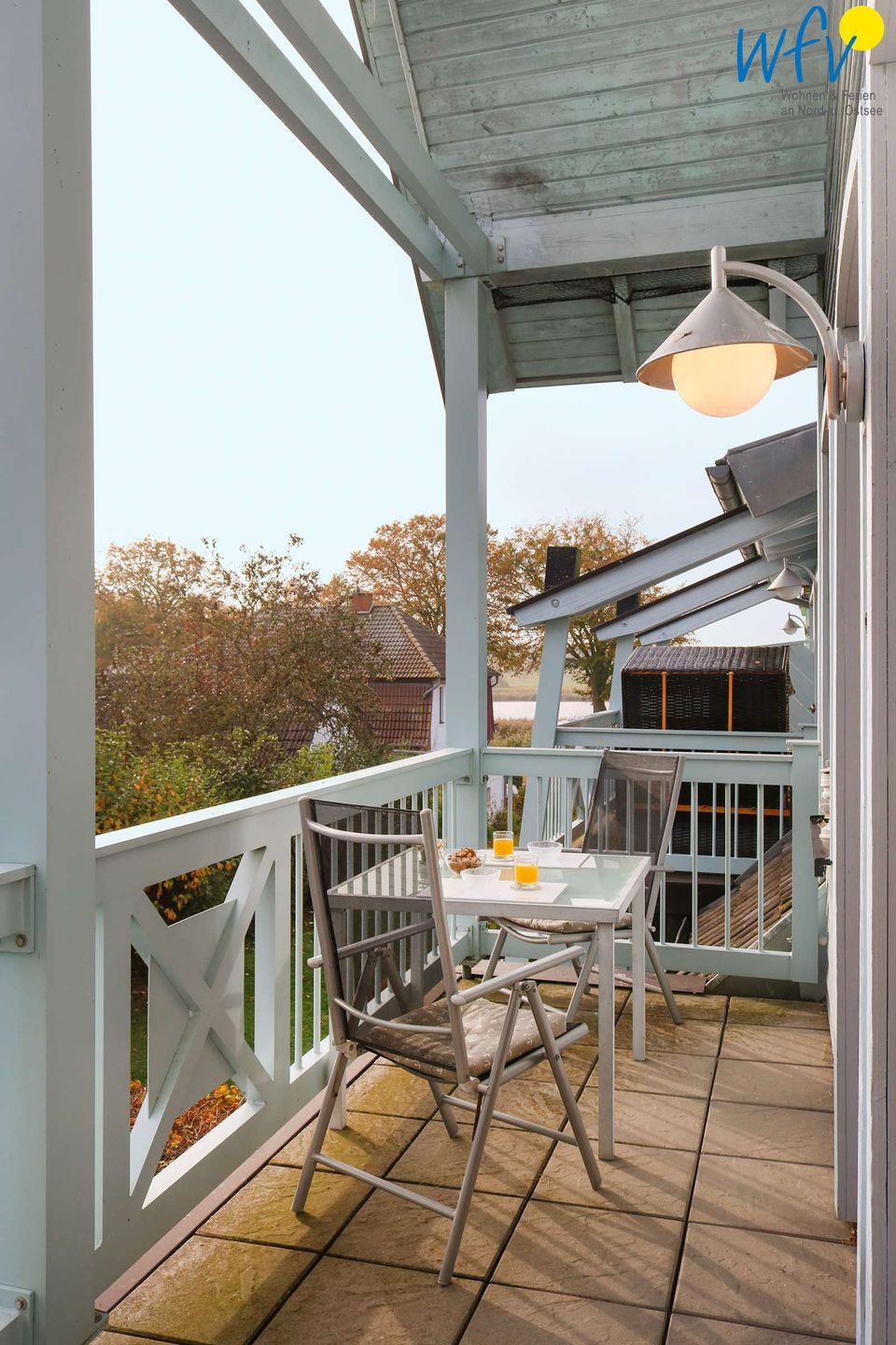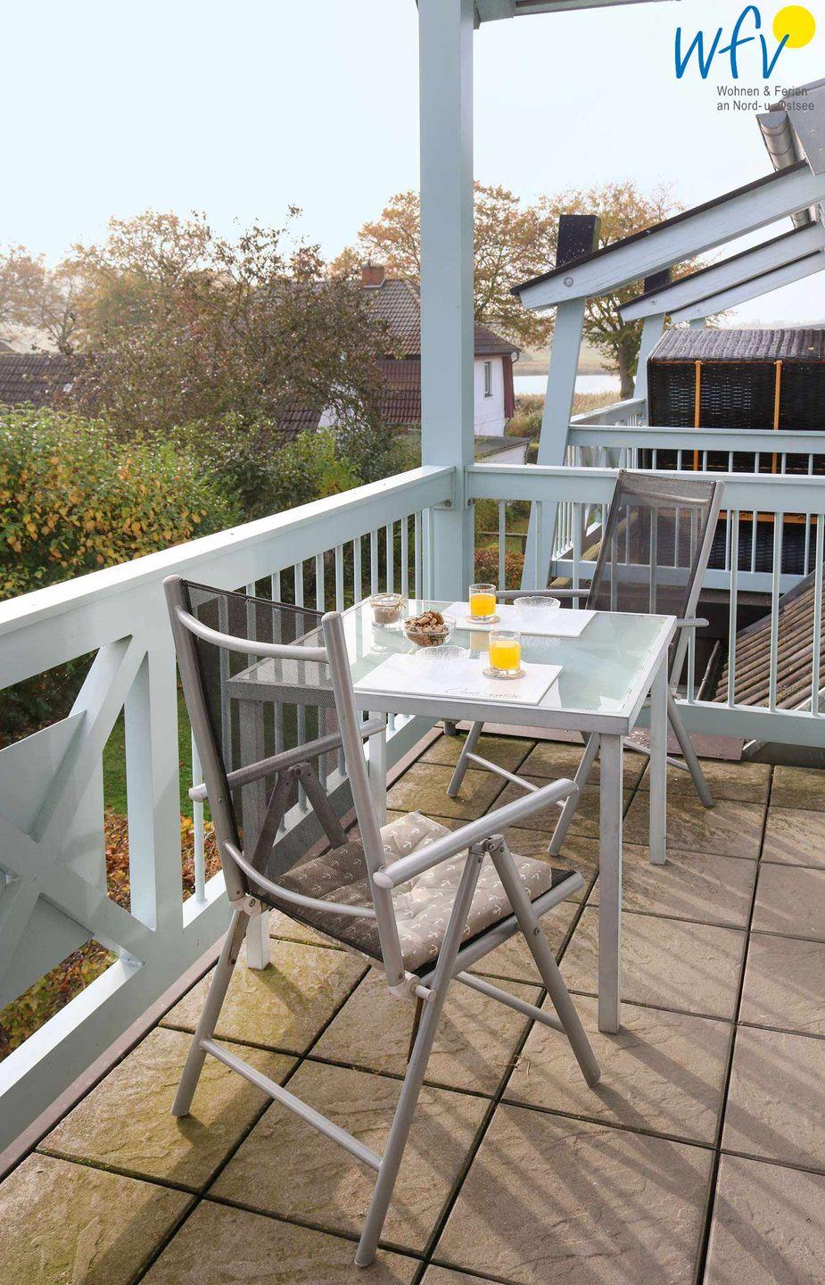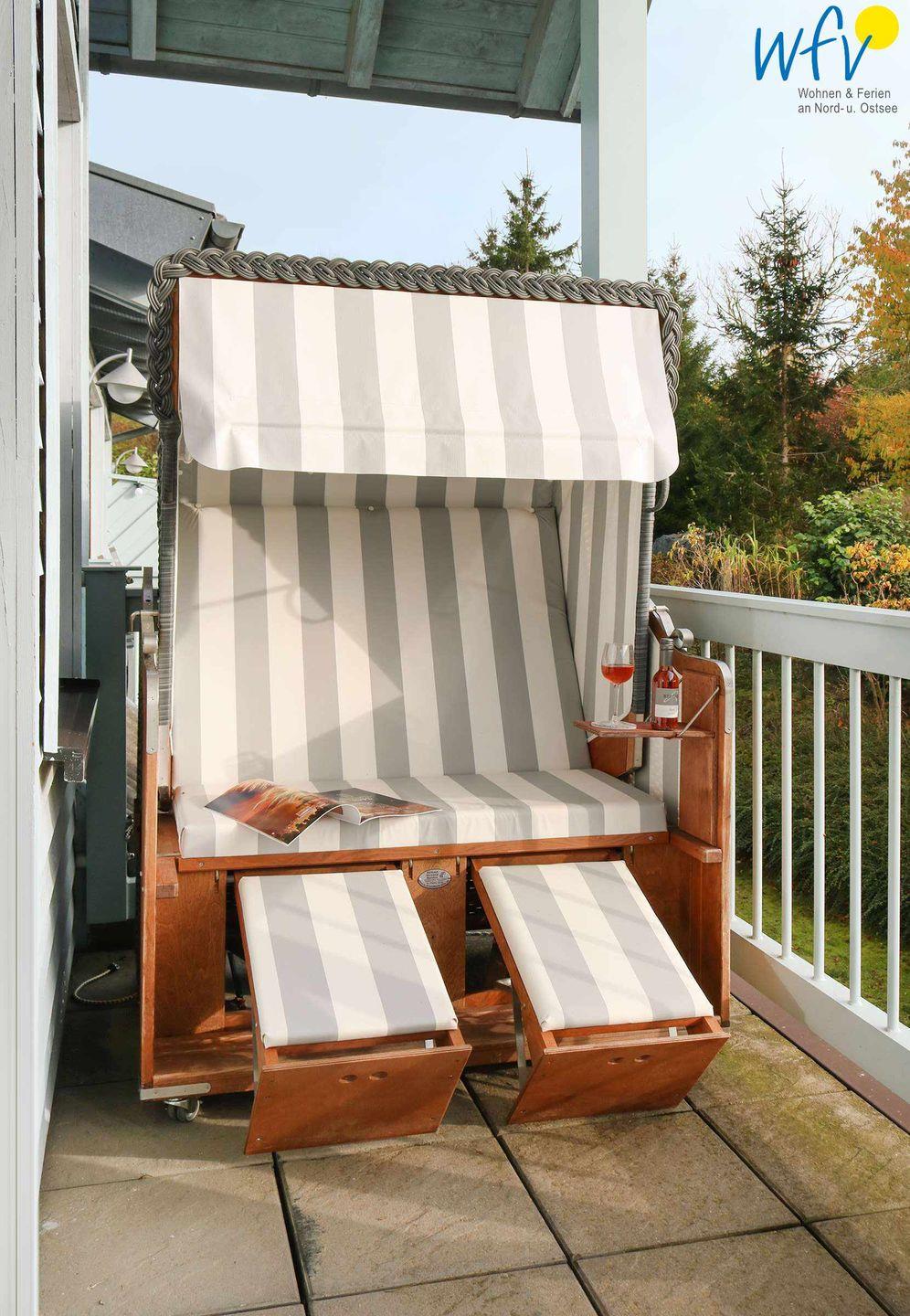 Auch auf der Terrasse ist pure Erholung möglich: Ein Strandkorb und bequeme Balkonmöbel laden zum Relax-Genuss im Freien ein. Für Grillabende gibt es im Außenbereich des Hauses einen gemeinschaftlichen Grillplatz mit Sitzbänken. Ihre Kleinen finden Spaß im Sandkasten und auf dem hauseigenen Spielplatz.