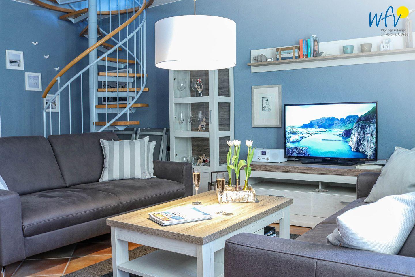 Die geschmackvolle Maisonettewohnung auf Rügen wird Sie begeistern! Harmonische Farbkombinationen, stilvolle Möbel und maritime Accessoires machen die Wohnung zu einer Wohlfühloase.