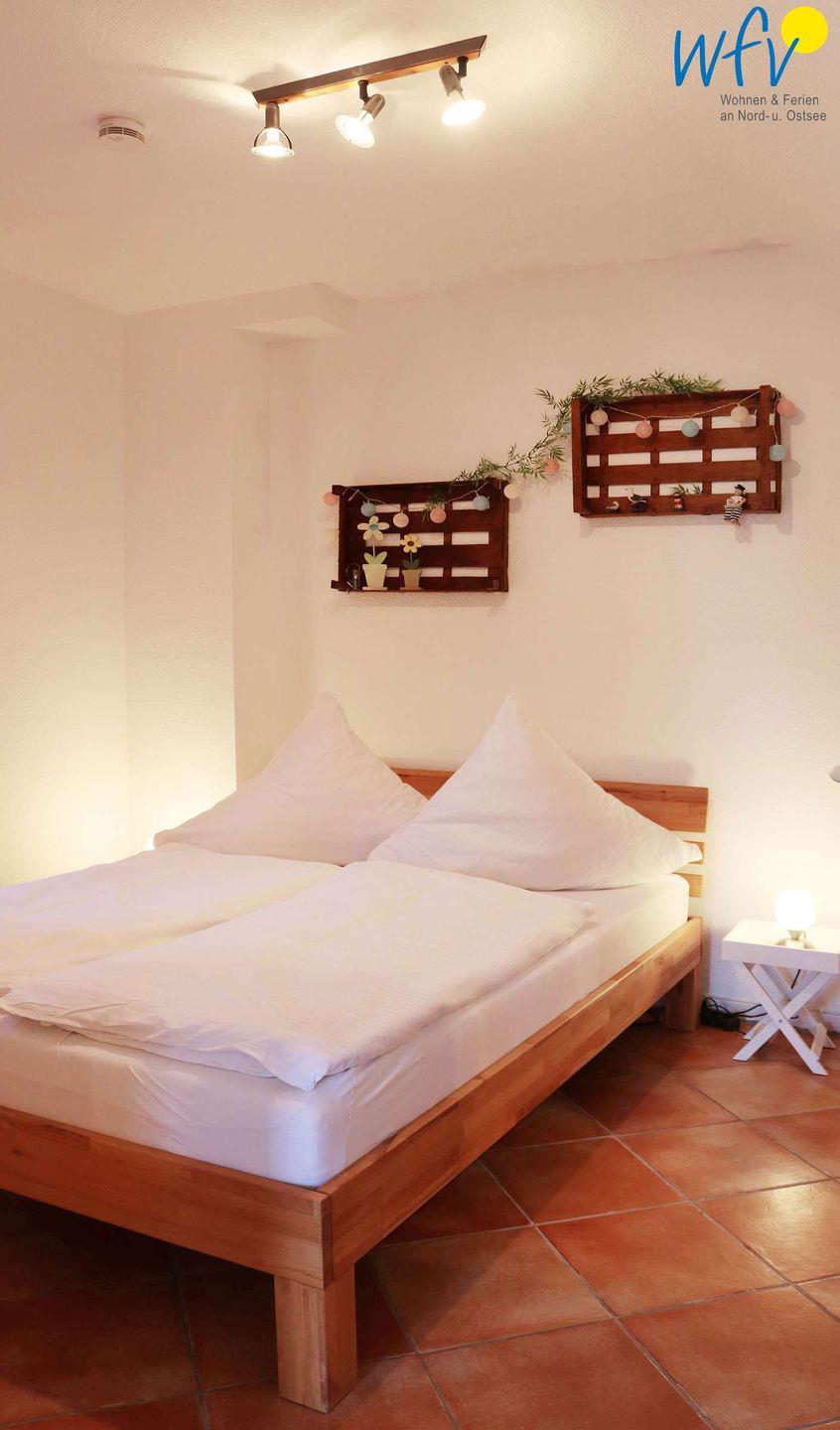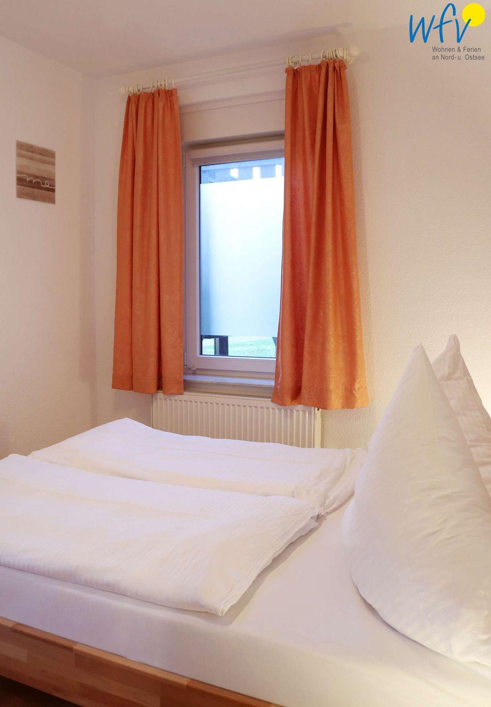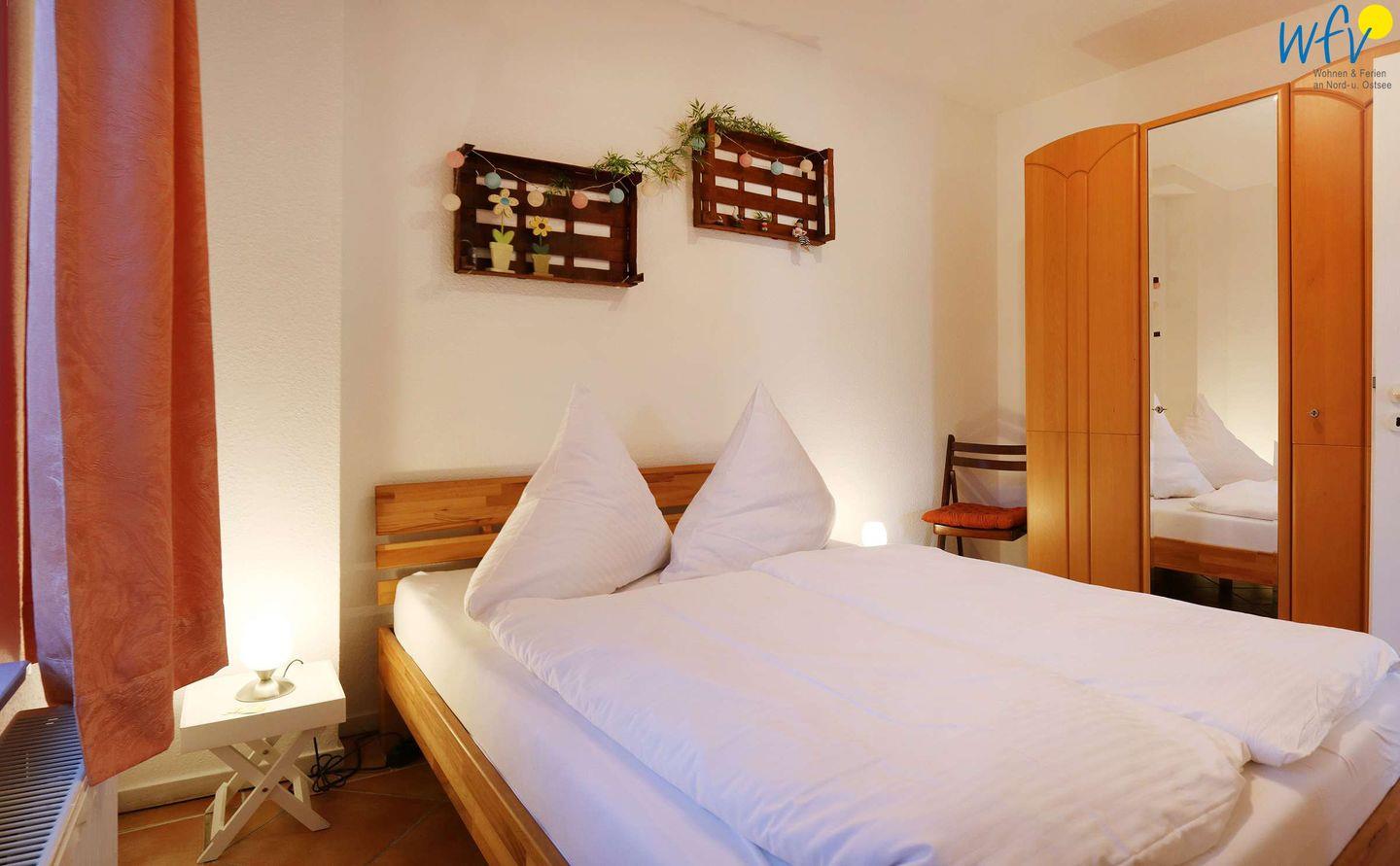 Wunderbar ausschlafen können Sie in dem separaten Schlafzimmer mit gemütlichem Doppelbett (140 x 200 cm). Ihre Urlaubsgarderobe hat Platz in dem geräumigen Kleiderschrank. Eine dritte Person findet Nachtruhe auf der komfortablen Schlafcouch im Wohnraum.