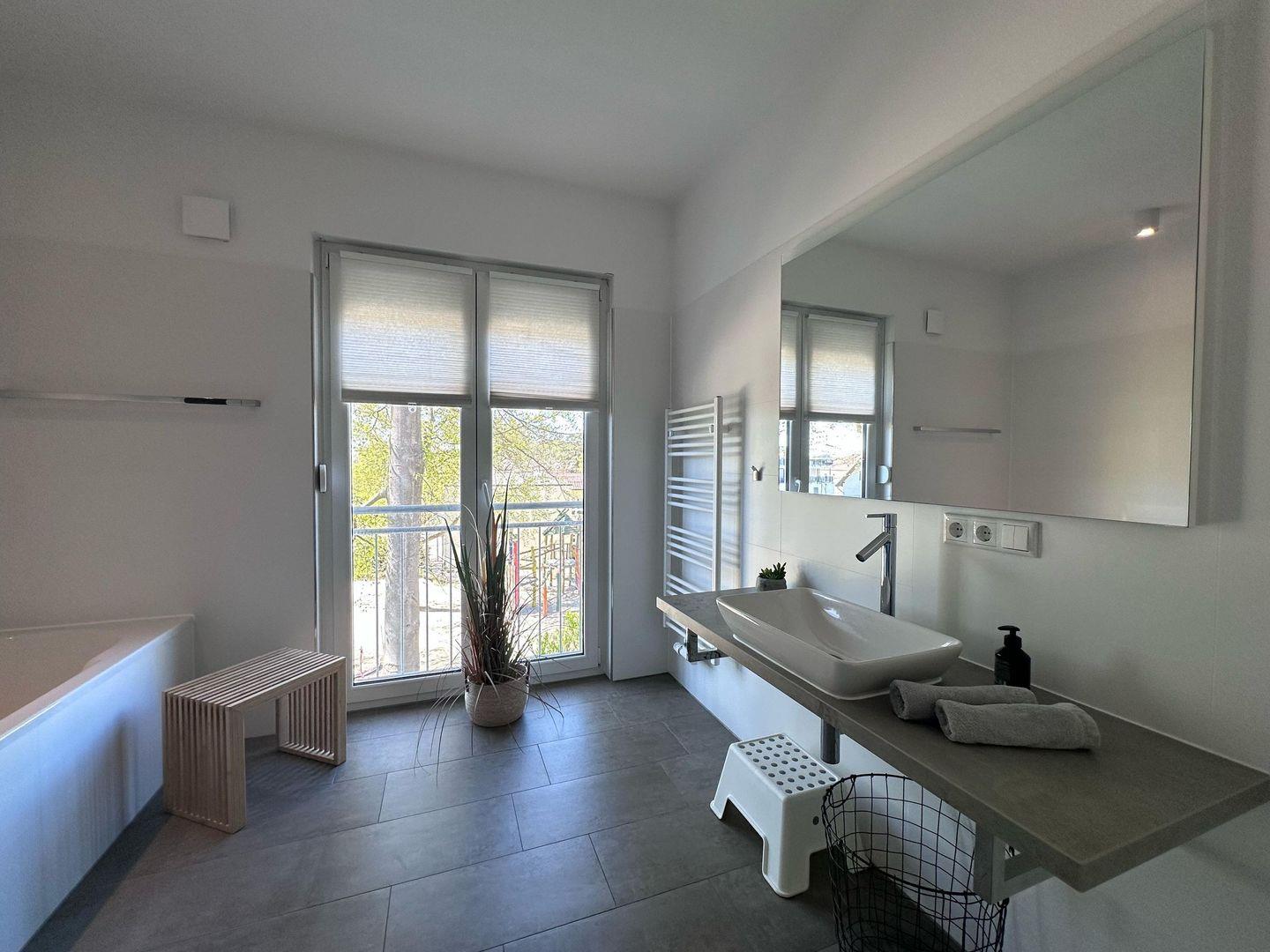 Moderne Ferienwohnung "Backbord" in Sellin mit Terrasse, Gartenmöbeln und Grill für entspannte Ostsee-Familienurlaube.