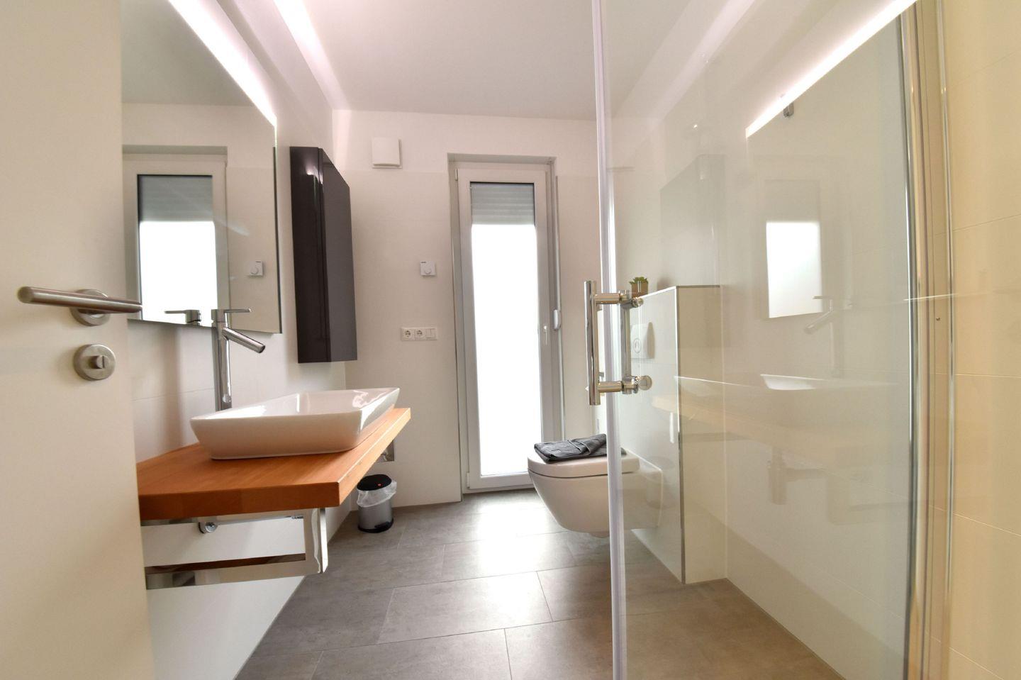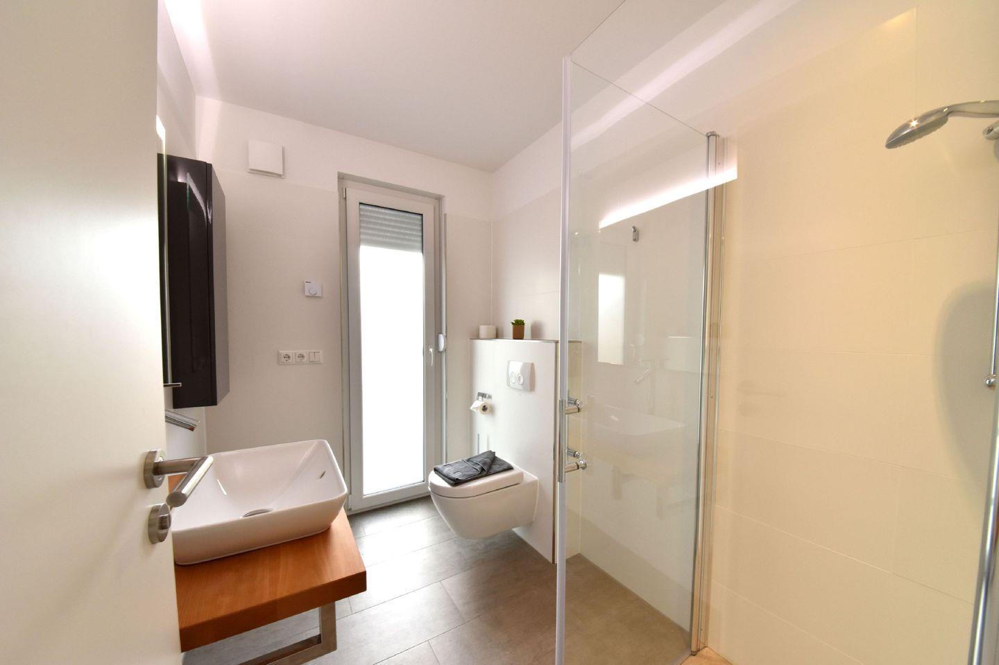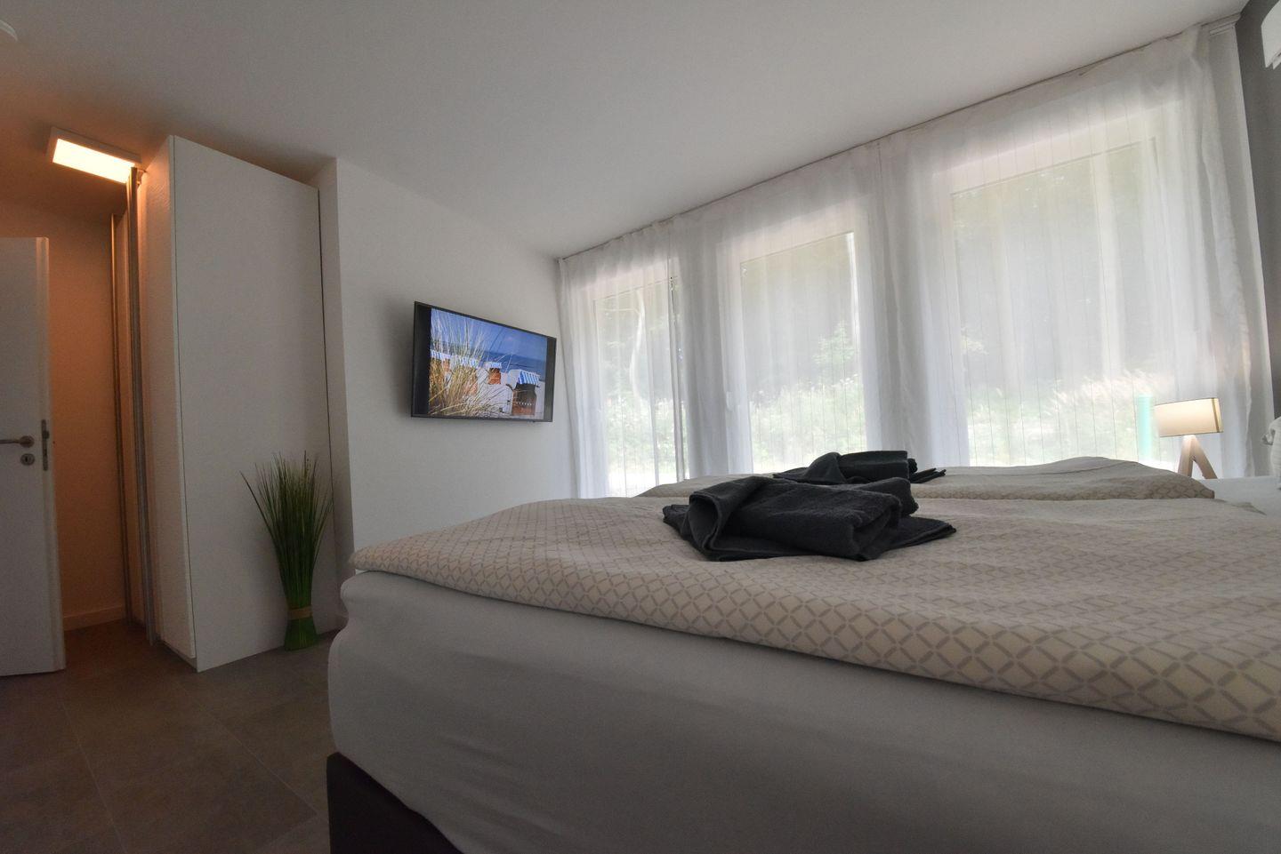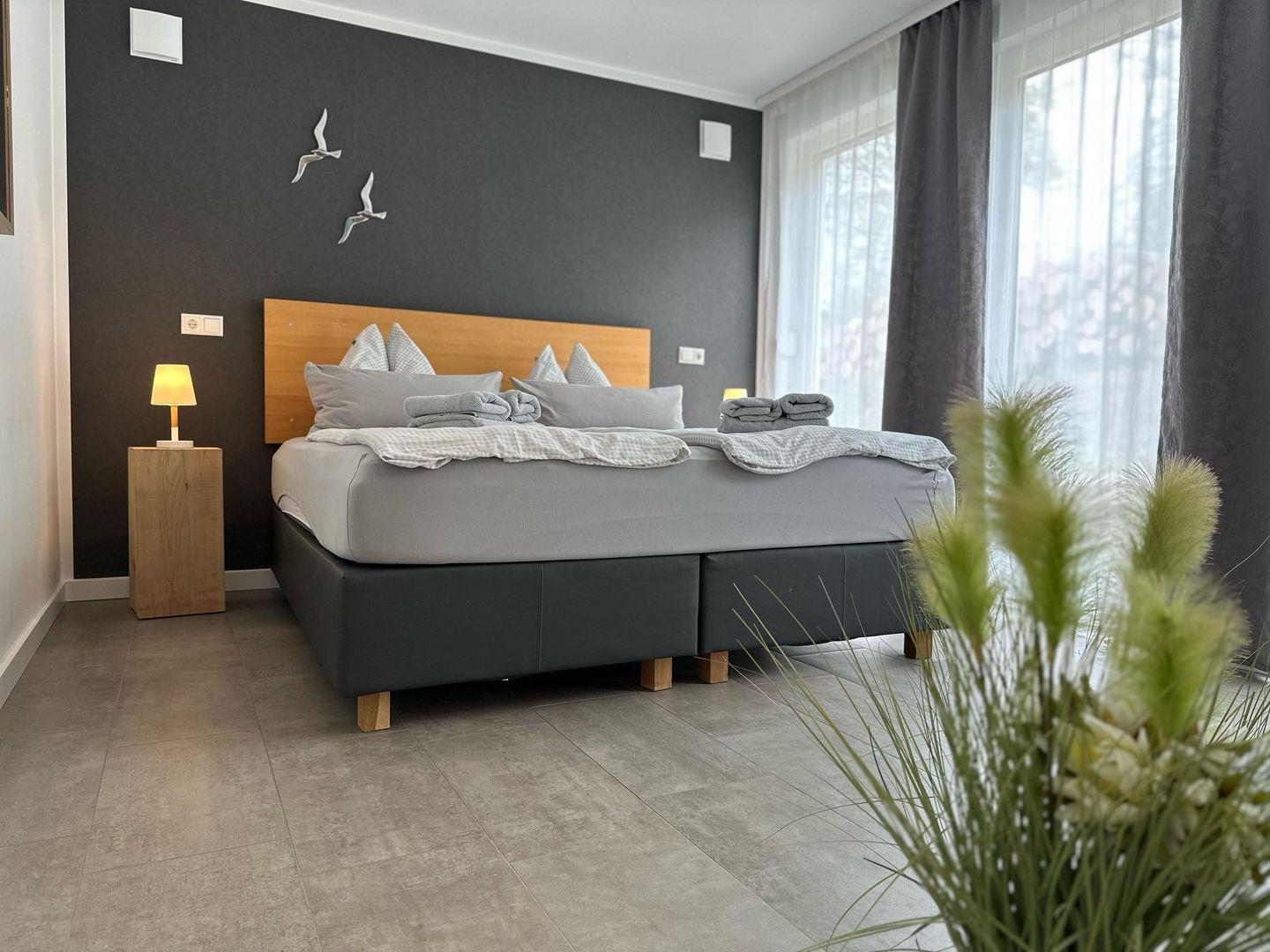 Die ebenerdige Ferienwohnung "Steuerbord 2" im 2017 fertiggestellten Ferienhaus "Quartier Sellin" ist ein gemütliches Zuhause für 3 Personen. Die Wohnung verfügt über eine gepflasterte Terrasse mit Windschutz, Grill und Gartenmöbeln, ideal für entspannte Stunden im Freien. Die vollausgestattete Küchenzeile bietet mit Ceranfeld, Geschirrspülmaschine, Backofen, Kühlschrank (mit Gefrierfach), Dunstabzugshaube, Mikrowelle, Wasserkocher, Kaffeemaschine und Toaster alle Annehmlichkeiten für die Zubereitung köstlicher Mahlzeiten. Das Badezimmer ist mit einer Dusche, einem Waschtisch, einem Handtuchtrockner, einem Fön und einem WC ausgestattet. Das Schlafzimmer ist verdunkelbar und verfügt über ein großes Boxspringbett sowie einen Kleiderschrank. Eine Aufbettung für bis zu 1 weitere Personen ist im Wohnraum möglich.